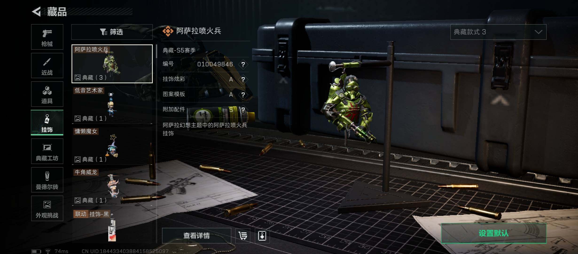 【挂饰】:挂饰-慵懒魔女,挂饰-低音艺术家,挂饰-幸运鼠鼠,挂饰-阿萨拉喷火兵,挂饰-羊角威龙,挂饰-怜悯,挂饰-蚀金玫瑰,挂饰-黑,挂饰-阿萨拉狙击兵,挂饰-诡影狙击兵,挂饰-诡影喷火兵,挂饰-特斯拉线圈,挂饰-来点薯条,挂饰-晶石幻想,挂饰-保持专注,挂饰-枪匠,挂饰-彩蛋,挂饰-小羊,挂饰-Relink,挂饰-维京,挂饰-王牌座驾,挂饰-启程