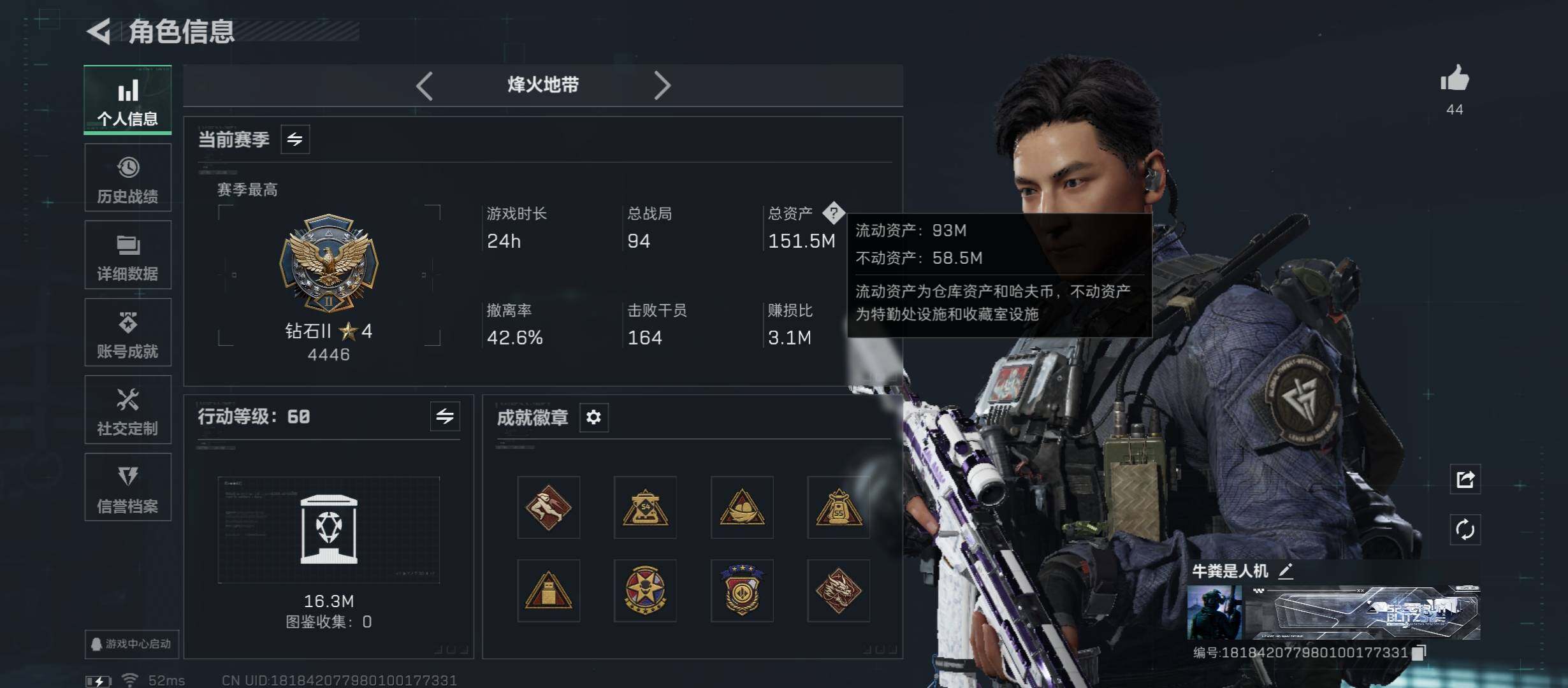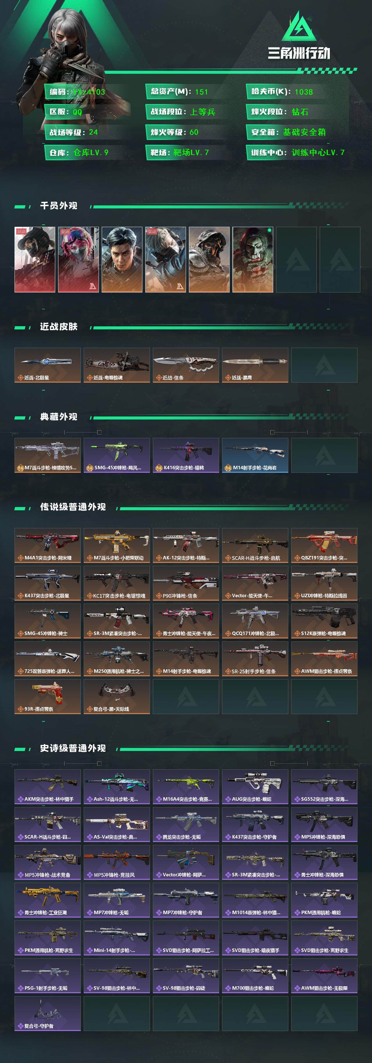 【Q区三端互通】【无二次】YXz4103-特勤处:仓库9级/靶场7级/训练中心7级-总资产151.5m-哈夫币103w-烽火等级:60级