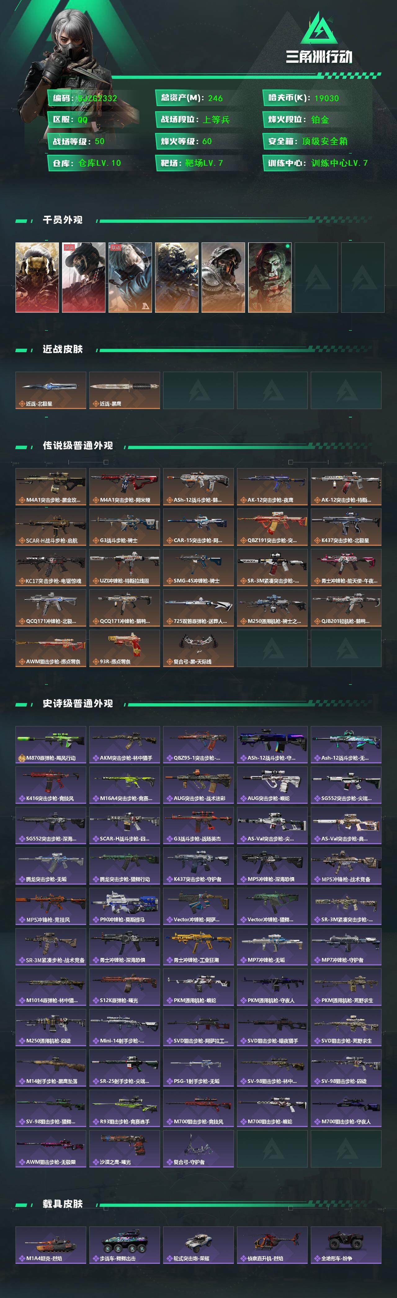 【SJZG2332】总资产(M):246M/哈夫币(K):19030K/哈夫币(K):19030K/全面战场等级:50_段位:上等兵/烽火地带等级:60_段位:铂金/红狼-蚀金玫瑰/露娜-黑·天际线/蜂医-送葬人·无题密令/无名-夜鹰/深蓝-不破誓约/红狼-电锯惊魂/近战-北极星/近战-黑鹰/M4A1突击步枪-蚀金玫瑰/M4A1突击步枪-阿米娅/ASh-12战斗步枪-鹅鸭杀/AK-12突击步枪-夜鹰/AK-12突击步枪-特斯拉线圈/SCAR-H战斗步枪-启航/G3战斗步枪-骑士/CAR-15突击步枪-阿米娅/腾龙突击步枪-捞点薯条/K437突击步枪-北极星/KC17突击步枪-电锯惊魂/UZI冲锋枪-特斯拉线圈/SMG-45冲锋枪-骑士/SR-3M紧凑突击步枪-特斯拉线圈/勇士冲锋枪-能天使-午夜邮差/QCQ171冲锋枪-北极星/QCQ171冲锋枪-鹅鸭杀/725双管霰弹枪-送葬人-无题密令/M250通用机枪-骑士之心/QJB201轻机枪-鹅鸭杀/AWM狙击步枪-捞点薯条/93R-捞点薯条/复合弓-黑·天际线/M870霰弹枪-飓风行动/AKM突击步枪-林中猎手/QBZ95-1突击步枪-曙光/ASh-12战斗步枪-守夜人/ASh-12战斗步枪-无极限/K416突击步枪-竞技风/M16A4突击步枪-竞赛选手/AUG突击步枪-战术迷彩/AUG突击步枪-蝮蛇/SG552突击步枪-尖端治疗/SG552突击步枪-深海恐惧/SCAR-H战斗步枪-囚徒/G3战斗步枪-战场英杰/AS Val突击步枪-尖端治疗/AS Val突击步枪-典狱官/腾龙突击步枪-无垢/腾龙突击步枪-猎鳄行动/K437突击步枪-守护者/MP5冲锋枪-深海恐惧/MP5冲锋枪-战术竞备/MP5冲锋枪-竞技风/P90冲锋枪-莫斯提马/Vector冲锋枪-阿萨拉文明/Vector冲锋枪-猎鳄行动/SR-3M紧凑突击步枪-荒野求生/SR-3M紧凑突击步枪-战术竞备/勇士冲锋枪-深海恐惧/勇士冲锋枪-工业狂潮/MP7冲锋枪-无垢/MP7冲锋枪-守护者/M1014霰弹枪-林中猎手/S12K霰弹枪-曙光/PKM通用机枪-蝮蛇/PKM通用机枪-守夜人/PKM通用机枪-荒野求生/M250通用机枪-囚徒/Mini-14射手步枪-守护者/SVD狙击步枪-阿萨拉工艺/SVD狙击步枪-暗夜猎手/SVD狙击步枪-荒野求生/M14射手步枪-黑鹰坠落/SR-25射手步枪-尖端治疗/PSG-1射手步枪-无垢/SV-98狙击步枪-林中猎手/SV-98狙击步枪-囚徒/SV-98狙击步枪-猎鳄行动/R93狙击步枪-竞赛选手/M700狙击步枪-竞技风/M700狙击步枪-蝮蛇/M700狙击步枪-守夜人/AWM狙击步枪-无极限/沙漠之鹰-曙光/复合弓-守护者/AK-12突击步枪-青纹/M4A1突击步枪-战术小队/M4A1突击步枪-蜂窝科技/AKM突击步枪-前沿科技/AKM突击步枪-浅鲨小队/AKM突击步枪-战术演练/AKM突击步枪-肃杀/QBZ95-1突击步枪-精准打击/QBZ95-1突击步枪-前沿科技/QBZ95-1突击步枪-公平竞技/ASh-12战斗步枪-星链科技/ASh-12战斗步枪-哈夫克航天/K416突击步枪-街头涂鸦/K416突击步枪-黑骑士/K416突击步枪-虎啸/M16A4突击步枪-远航/M16A4突击步枪-街头涂鸦/AUG突击步枪-全金属外壳/M7战斗步枪-前沿科技/M7战斗步枪-捣蛋鬼/SCAR-H战斗步枪-童趣/SCAR-H战斗步枪-远航/SCAR-H战斗步枪-荣耀列队/SCAR-H战斗步枪-黄昏/G3战斗步枪-战术演练/G3战斗步枪-主宰/PTR-32突击步枪-天网/PTR-32突击步枪-英雄/CAR-15突击步枪-前沿科技/AS Val突击步枪-哈夫克科技/腾龙突击步枪-雪崩/腾龙突击步枪-冰天雪地/K437突击步枪-天狼星/MP5冲锋枪-前沿科技/MP5冲锋枪-弄臣/MP5冲锋枪-虎啸/MP5冲锋枪-哈夫克卫队/P90冲锋枪-医疗协议/P90冲锋枪-街头涂鸦/P90冲锋枪-浅鲨小队/P90冲锋枪-新生/P90冲锋枪-黄昏/P90冲锋枪-捣蛋鬼/Vector冲锋枪-先锋/Vector冲锋枪-街头涂鸦/Vector冲锋枪-行动开启/UZI冲锋枪-前沿科技/UZI冲锋枪-亚特兰蒂斯/野牛冲锋枪-新生/野牛冲锋枪-公平竞技/SMG-45冲锋枪-前沿科技/SMG-45冲锋枪-哈夫克卫队/SMG-45-行动开启/SMG-45冲锋枪-幻影结构/SMG-45冲锋枪-天网/SR-3M紧凑突击步枪-雪崩/勇士冲锋枪-前沿科技/勇士冲锋枪-冰天雪地/MP7冲锋枪-幻影结构/M1014霰弹枪-幻影结构/M1014霰弹枪-童趣/S12K霰弹枪-战术演练/PKM轻机枪-前沿科技/PKM通用机枪-英雄/M249轻机枪-毛鲁斯之力/M249轻机枪-战损/M250通用机枪-虎啸/M250通用机枪-天网/QJB201轻机枪-远航/QJB201轻机枪-黄昏/QJB201轻机枪-哈夫克卫队/Mini-14射手步枪-荣耀列队/VSS射手步枪-童趣/M14射手步枪-出厂配置/SKS射手步枪-弄臣/SKS射手步枪-雪崩/SR-25射手步枪-开拓/SR-25射手步枪-蜂窝科技/SR-9射手步枪-街头涂鸦/SV-98狙击步枪-星链科技/SV-98狙击步枪-哈夫克航天/SV-98狙击步枪-精英联盟/R93狙击步枪-远航/G18-前沿科技/G18-星链科技/G18-哈夫克航天/M4A1突击步枪-雪地迷彩/M4A1突击步枪-纯白涂装/K416突击步枪-纯白涂装/SCAR-H战斗步枪-纯白涂装/M700狙击步枪-纯白涂装/AK-12突击步枪-淘金者/S12K霰弹枪-淘金者/SMG-45冲锋枪-蝴蝶/M4A1突击步枪-粉色涂装/M4A1突击步枪-高雅黑/M4A1突击步枪-几何碎片/M4A1突击步枪-海色/AKM突击步枪-彩墨喷涂/QBZ95-1突击步枪-高雅黑/QBZ95-1突击步枪-海浪/QBZ95-1突击步枪-海色/QBZ191突击步枪-三角洲力量/K416突击步枪-几何迷彩/K416突击步枪-三角洲力量/K416突击步枪-高雅黑/M16A4突击步枪-三角洲力量/M16A4突击步枪-山林猎人/M16A4突击步枪-高雅黑/AUG突击步枪-浅蓝涂装/AUG突击步枪-落花/M7战斗步枪-红色涂装/M7战斗步枪-三角洲力量/M7战斗步枪-落花/SG552突击步枪-三角洲力量/SG552突击步枪-浅蓝涂装/SG552突击步枪-海浪/SG552突击步枪-彩墨喷涂/AK-12突击步枪-冰川/AK-12突击步枪-坚固材料/AK-12突击步枪-落花/SCAR-H战斗步枪-三角洲力量/SCAR-H战斗步枪-红色涂装/SCAR-H战斗步枪-沙色涂装/SCAR-H战斗步枪-数码迷彩/SCAR-H战斗步枪-电路图/G3战斗步枪-高雅黑/G3战斗步枪-山林猎人/PTR-32突击步枪-坚固材料/PTR-3
