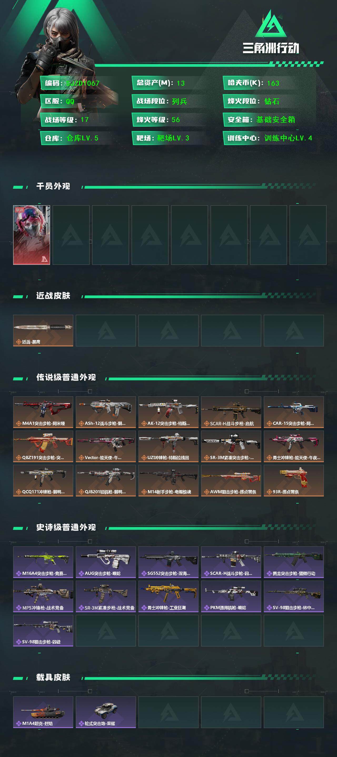【SJZD1067】总资产(M):13M/哈夫币(K):163K/哈夫币(K):163K/全面战场等级:17_段位:列兵/烽火地带等级:56_段位:钻石/蛊-能天使午夜邮差/近战-黑鹰/M4A1突击步枪-阿米娅/ASh-12战斗步枪-鹅鸭杀/AK-12突击步枪-特斯拉线圈/SCAR-H战斗步枪-启航/CAR-15突击步枪-阿米娅/腾龙突击步枪-捞点薯条/Vector冲锋枪-能天使-午夜邮差/UZI冲锋枪-特斯拉线圈/SR-3M紧凑突击步枪-特斯拉线圈/勇士冲锋枪-能天使-午夜邮差/QCQ171冲锋枪-鹅鸭杀/QJB201轻机枪-鹅鸭杀/M14射手步枪-电锯惊魂/AWM狙击步枪-捞点薯条/93R-捞点薯条/M16A4突击步枪-竞赛选手/AUG突击步枪-蝮蛇/SG552突击步枪-深海恐惧/SCAR-H战斗步枪-囚徒/腾龙突击步枪-猎鳄行动/MP5冲锋枪-战术竞备/SR-3M紧凑突击步枪-战术竞备/勇士冲锋枪-工业狂潮/PKM通用机枪-蝮蛇/SV-98狙击步枪-林中猎手/SV-98狙击步枪-囚徒/QBZ95-1突击步枪-公平竞技/M7战斗步枪-捣蛋鬼/SCAR-H战斗步枪-荣耀列队/MP5冲锋枪-虎啸/P90冲锋枪-黄昏/Vector冲锋枪-先锋/UZI冲锋枪-亚特兰蒂斯/SMG-45-行动开启/SMG-45冲锋枪-幻影结构/M1014霰弹枪-幻影结构/QJB201轻机枪-哈夫克卫队/Mini-14射手步枪-荣耀列队/SR-25射手步枪-开拓/SR-9射手步枪-街头涂鸦/M700狙击步枪-纯白涂装/M4A1突击步枪-粉色涂装/M4A1突击步枪-高雅黑/QBZ95-1突击步枪-高雅黑/QBZ95-1突击步枪-海浪/QBZ95-1突击步枪-海色/QBZ191突击步枪-三角洲力量/K416突击步枪-几何迷彩/K416突击步枪-高雅黑/M16A4突击步枪-山林猎人/M16A4突击步枪-高雅黑/AUG突击步枪-浅蓝涂装/M7战斗步枪-红色涂装/SG552突击步枪-海浪/SCAR-H战斗步枪-数码迷彩/G3战斗步枪-高雅黑/PTR-32突击步枪-黄蜂/MP5冲锋枪-海色/MP5冲锋枪-黄蜂/Vector冲锋枪-几何迷彩/UZI冲锋枪-海色/野牛冲锋枪-高雅黑/M1014霰弹枪-高雅黑/M1014霰弹枪-海浪/PKM通用机枪-彩墨喷涂/M249轻机枪-黄蜂/M250通用机枪-条纹/SR-25射手步枪-黄蜂/SV-98狙击步枪-红色涂装/QSZ92G-条纹/沙漠之鹰-海浪/沙漠之鹰-高雅黑/M1A4坦克-烈焰/轮式突击炮-荣耀/军牌-捞点薯条/军牌-特斯拉线圈/军牌-静谧时光/军牌-展示/军牌-享受音乐/军牌-永恒/军牌-肥柴集合/军牌-来点薯条/军牌-修整/军牌-神秘艺术/军牌-信誉优秀/军牌-小心鳄鱼/挂饰-幸运鼠鼠/挂饰-阿萨拉喷火兵/挂饰-能天使/挂饰-阿萨拉狙击兵/挂饰-阿萨拉霰弹兵/挂饰-诡影狙击兵/挂饰-诡影喷火兵/挂饰-特斯拉线圈/挂饰-来点薯条/挂饰-启程/挂饰-阿萨拉徽章【登录方式: QQ登录】