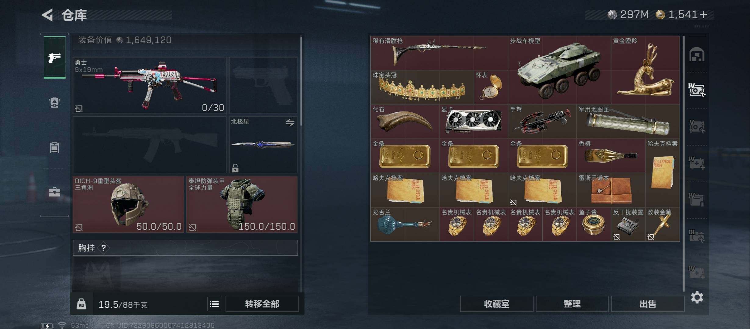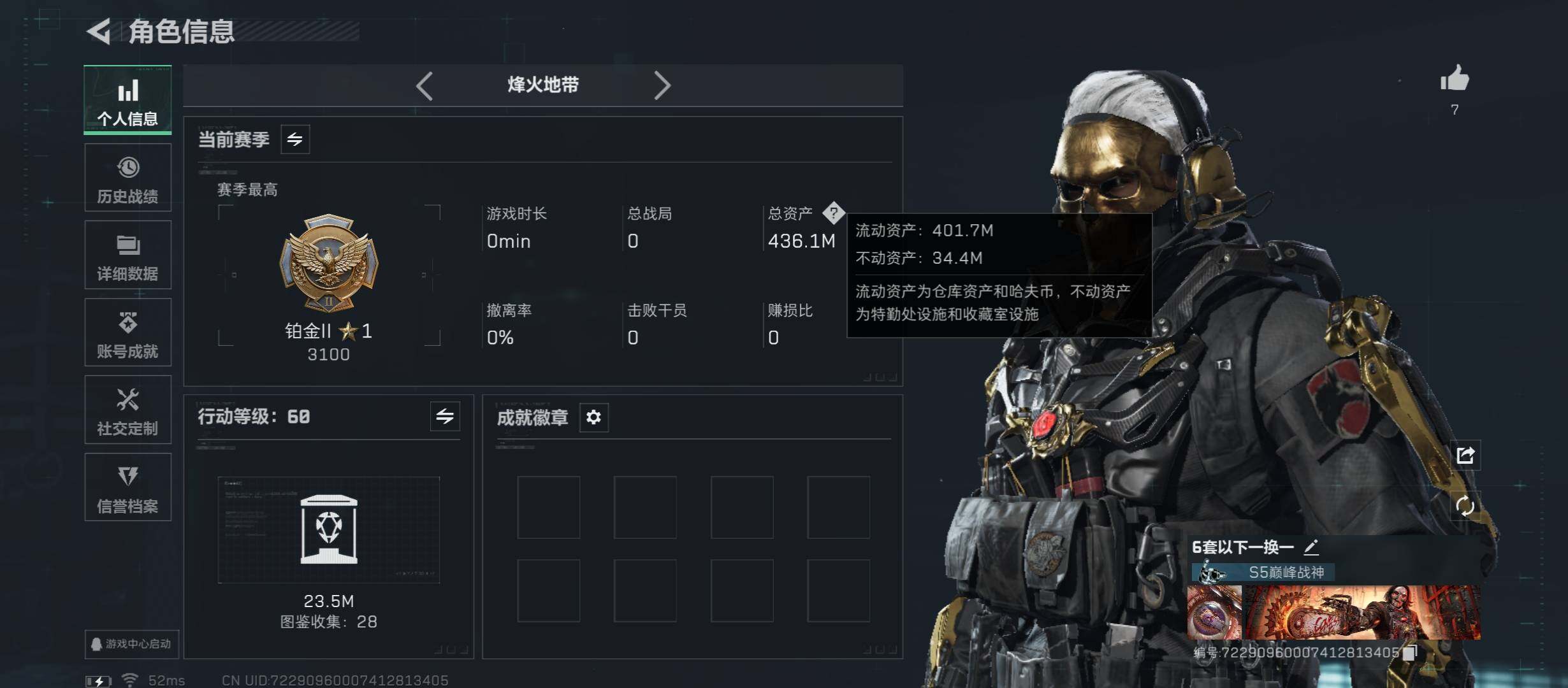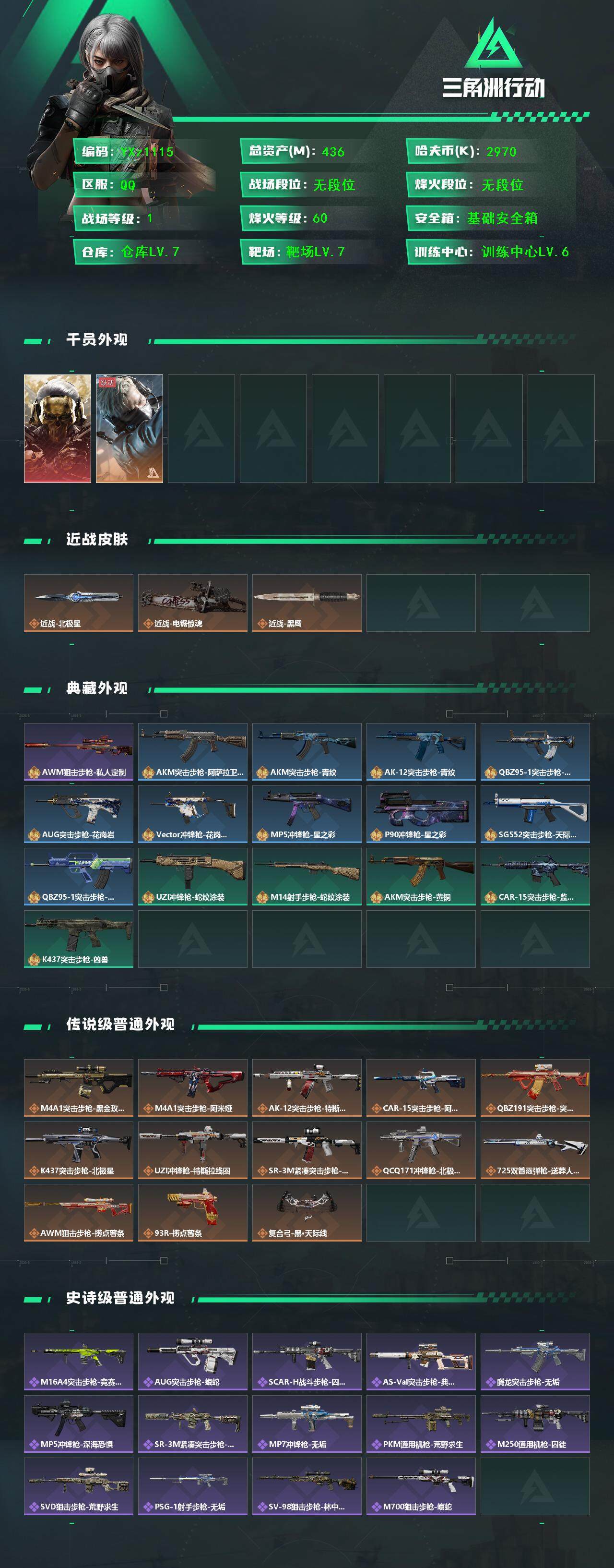 【当日上新-性价比特价号】【高额资产号434M.纯现金297M.双红+单刀-蚀金玫瑰+电锯惊魂+北极星.6741三角券.满足烽火/全面战场所有需求.强烈推荐】【Q区三端互通】【无二次】YXz1115-特勤处:仓库7级/训练中心6级/靶场7级-总资产436m-哈夫币297m-烽火等级:60级
