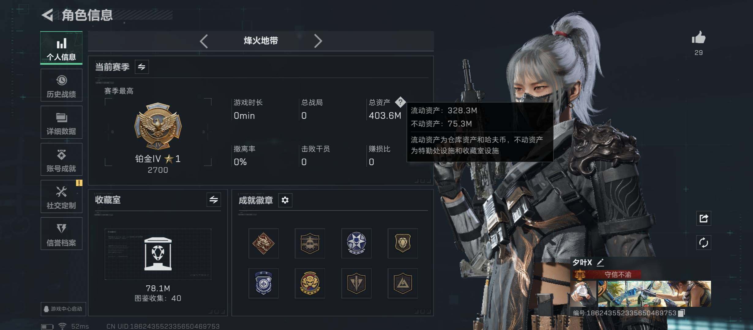 【赛季热门装备号,三红+双刀,水墨云图-蚀金玫瑰-黑天际线-北极星-影锋】【总资产403M】【Q区三端互通】【无二次】YXz3837-特勤处:仓库9级/靶场7级/训练中心7级-总资产403.6m-哈夫币7610w-烽火等级:60级