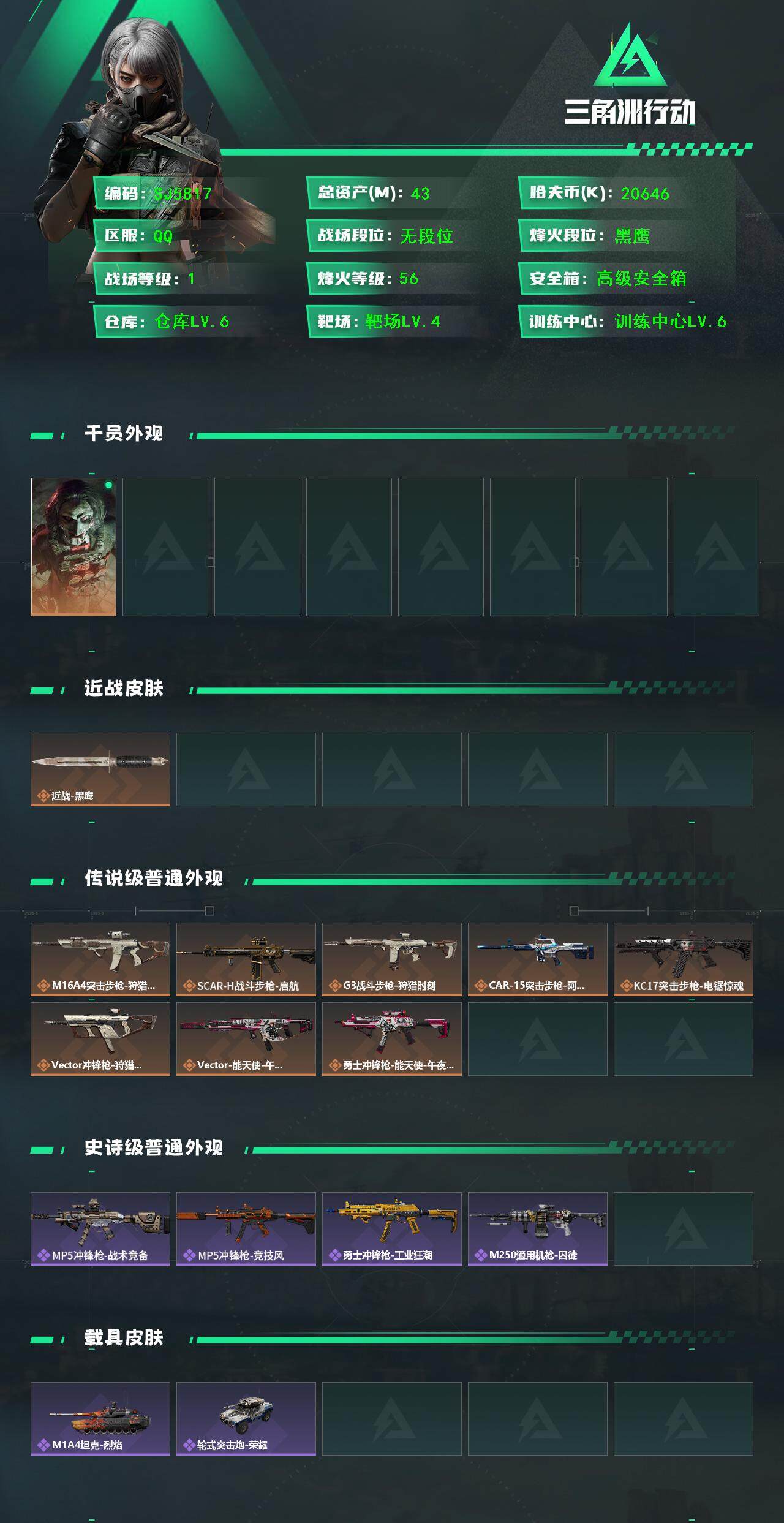 【SJ5817】总资产(M):43M/哈夫币(K):20646K/哈夫币(K):20646K/全面战场等级:1_段位:无段位/烽火地带等级:56_段位:黑鹰/红狼-电锯惊魂/近战-黑鹰/M16A4突击步枪-狩猎时刻/SCAR-H战斗步枪-启航/G3战斗步枪-狩猎时刻/CAR-15突击步枪-阿米娅/KC17突击步枪-电锯惊魂/Vector冲锋枪-狩猎时刻/Vector冲锋枪-能天使-午夜邮差/勇士冲锋枪-能天使-午夜邮差/MP5冲锋枪-战术竞备/MP5冲锋枪-竞技风/勇士冲锋枪-工业狂潮/M250通用机枪-囚徒/M4A1突击步枪-零点/AKM突击步枪-肃杀/QBZ95-1突击步枪-公平竞技/K416突击步枪-碳纤维/M7战斗步枪-捣蛋鬼/AK-12突击步枪-零点/SCAR-H战斗步枪-荣耀列队/腾龙突击步枪-冰天雪地/MP5冲锋枪-弄臣/MP5冲锋枪-哈夫克卫队/Vector冲锋枪-先锋/UZI冲锋枪-亚特兰蒂斯/SMG-45-行动开启/勇士冲锋枪-冰天雪地/M1014霰弹枪-幻影结构/QJB201轻机枪-哈夫克卫队/Mini-14射手步枪-荣耀列队/SR-25射手步枪-开拓/SV-98狙击步枪-星链科技/SV-98狙击步枪-哈夫克航天/SV-98狙击步枪-精英联盟/G18-星链科技/G18-哈夫克航天/M4A1突击步枪-粉色涂装/M4A1突击步枪-高雅黑/M4A1突击步枪-海色/QBZ95-1突击步枪-高雅黑/QBZ95-1突击步枪-海浪/QBZ95-1突击步枪-海色/M16A4突击步枪-山林猎人/M16A4突击步枪-高雅黑/AUG突击步枪-浅蓝涂装/M7战斗步枪-红色涂装/SG552突击步枪-海浪/SCAR-H战斗步枪-数码迷彩/PTR-32突击步枪-黄蜂/MP5冲锋枪-海色/MP5冲锋枪-黄蜂/Vector冲锋枪-几何迷彩/UZI冲锋枪-海色/野牛冲锋枪-高雅黑/M1014霰弹枪-海浪/M249轻机枪-黄蜂/M250通用机枪-条纹/SVD狙击步枪-高雅黑/SR-25射手步枪-黄蜂/SV-98狙击步枪-红色涂装/QSZ92G-条纹/沙漠之鹰-海浪/沙漠之鹰-高雅黑/M1A4坦克-烈焰/轮式突击炮-荣耀/军牌-猎杀本能/军牌-展示/军牌-享受音乐/军牌-来点薯条/军牌-修整/军牌-神秘艺术/军牌-信誉优秀/军牌-小心鳄鱼/挂饰-能天使/挂饰-阿萨拉狙击兵/挂饰-阿萨拉霰弹兵/挂饰-诡影狙击兵/挂饰-诡影喷火兵/挂饰-狩猎时刻/挂饰-启程/挂饰-猎杀本能/挂饰-阿萨拉徽章【登录方式: QQ登录】