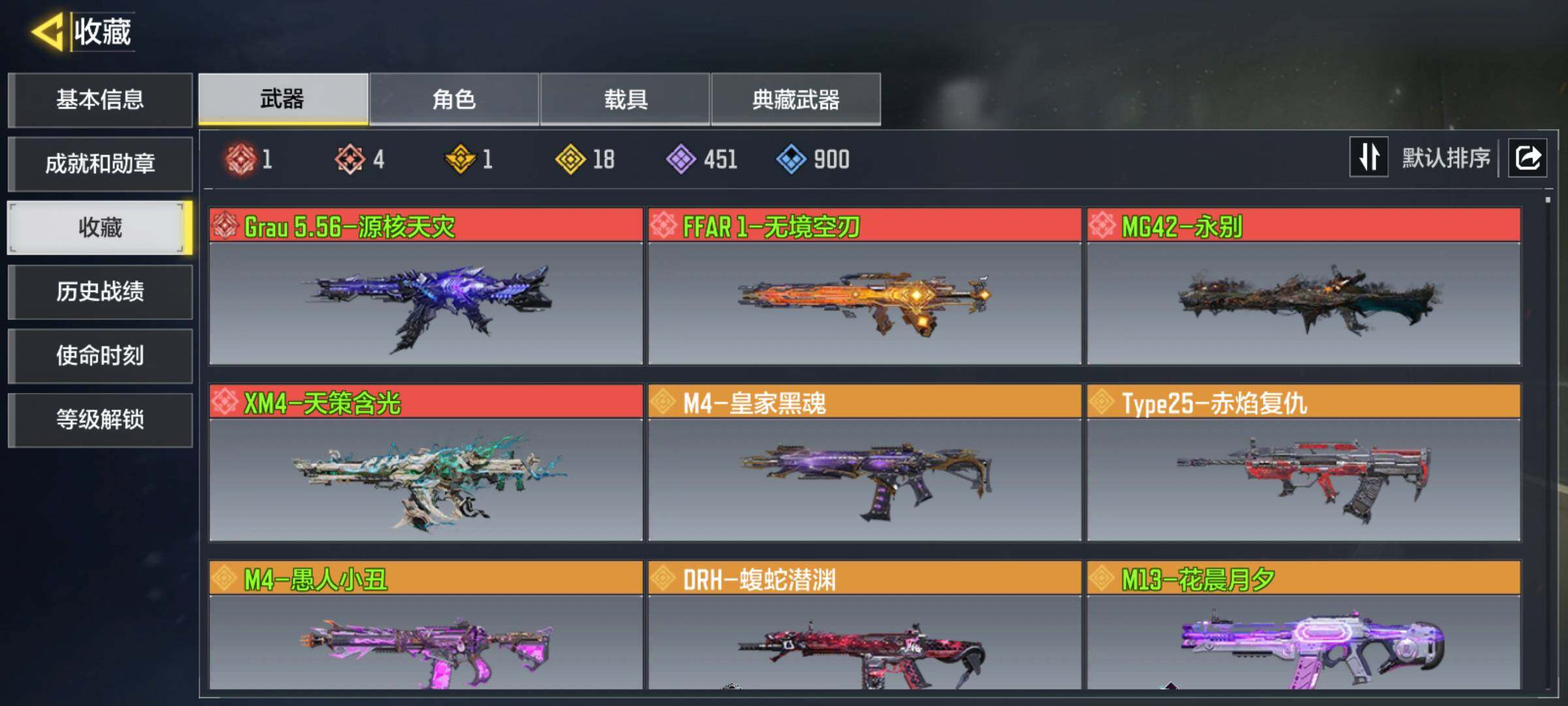 [11361567]xr41036-安卓QQ-4神话1满级-18传说-可二次-Grau 5.56-源核天灾,FFAR 1-无境空刃,MG42-永别,XM4-天策含光