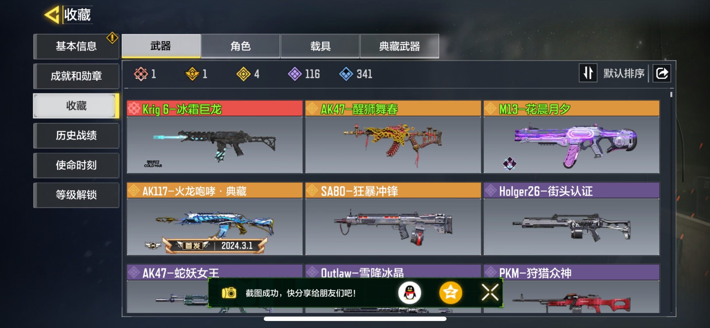 [13273584]有二次 1红4金,Krig6-冰霜巨龙,AK47-醒狮舞春,M13-花晨月夕【按实名: 可二次】