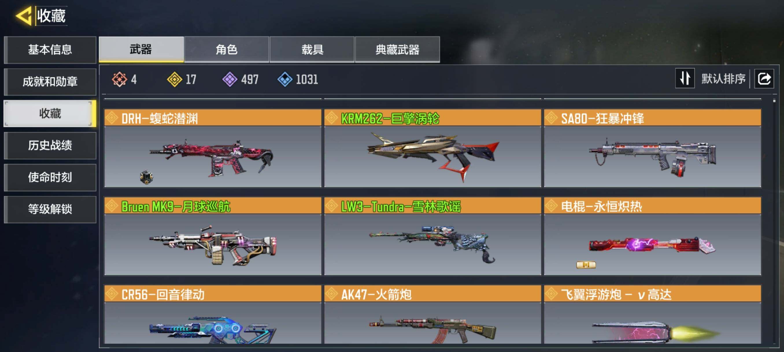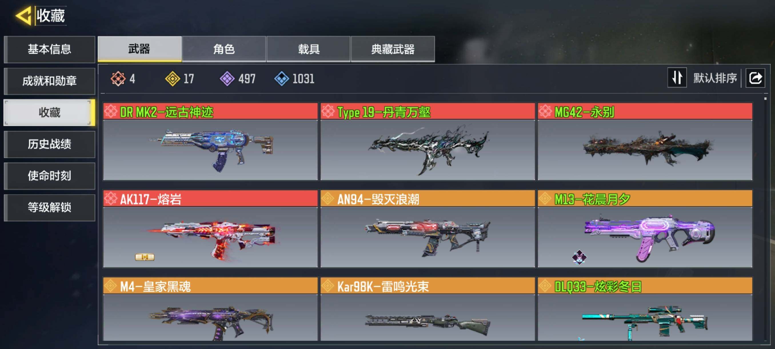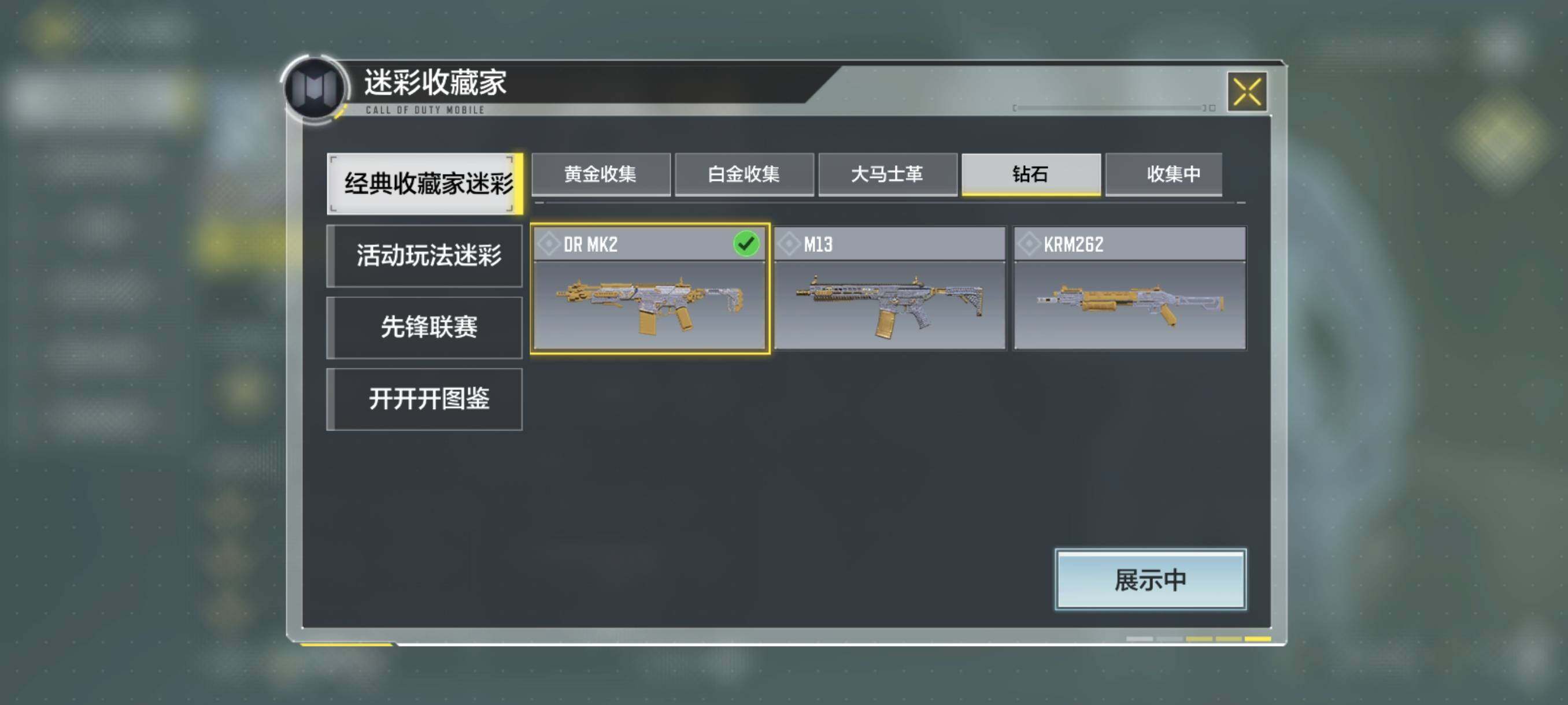 ,Type19-丹青万壑,AK117-熔岩,DR MK2-远古神迹,MG42-永别,DLQ33-炫彩冬日,KRM262-巨擎涡轮,LW3-Tundra-雪林歌谣【按实名: 可二次】