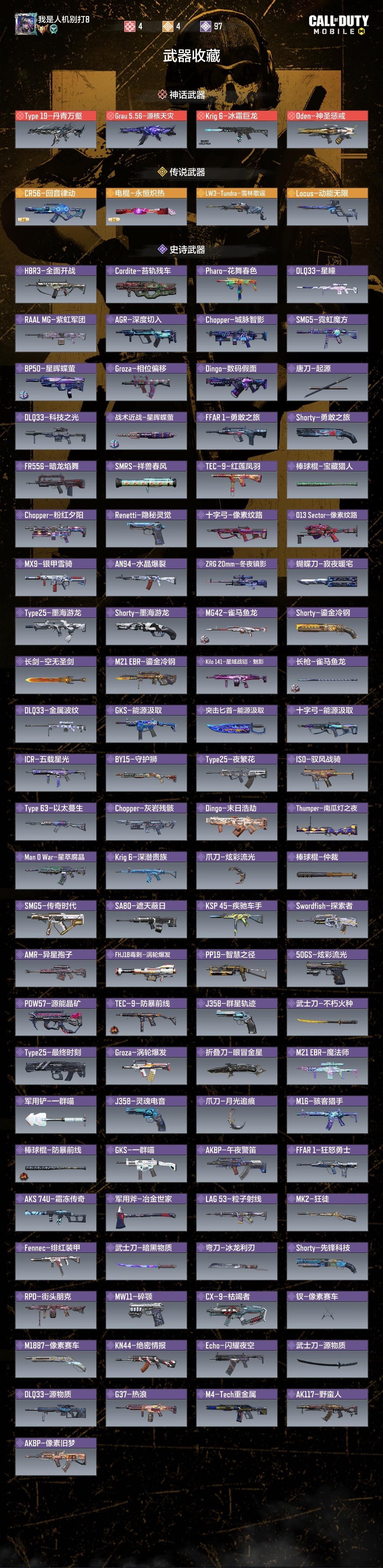 [14226126]无二次 4红4金,Grau 5.56-源核天灾,Krig6-冰霜巨龙,Type19-丹青万壑,Oden-神圣惩戒,Locus-动能无限,LW3-Tundra-雪林歌谣,电棍-永恒炽热,CR56-回音律动【按实名: 不可二次】