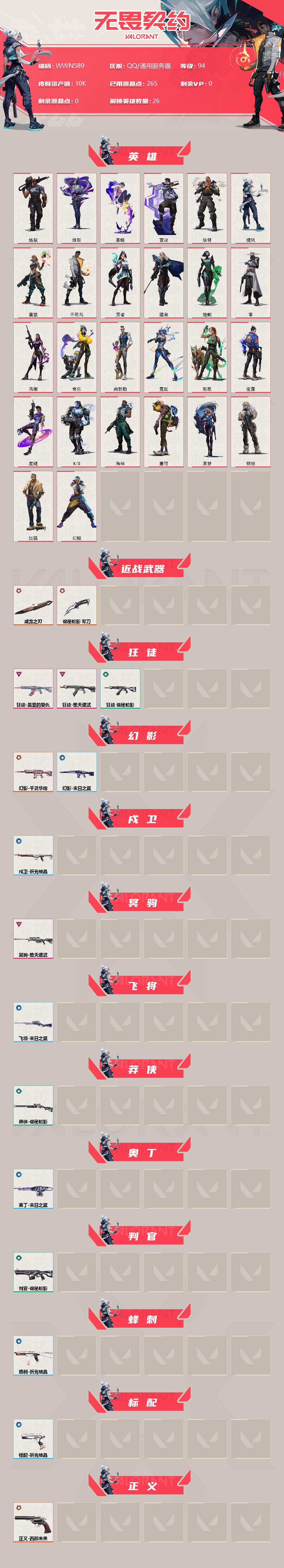 【WWN589】终极*4/卓越*3/皮肤*21/等级*94/段位:铂金/幻棱/炼狱/维斯/暮蝶/钛狐/壹决/铁臂/捷风/雷兹/不死鸟/贤者/猎枭/蝰蛇/零/芮娜/奇乐/尚勃勒/霓虹/斯凯/夜露/星礈/K/O/海神/盖可/黑梦/钢锁/近战武器-威龙之刃/近战武器-诡秘蛇影 军刀/狂徒-堕天遗武/狂徒-盖亚的复仇/狂徒-诡秘蛇影/幻影-千灵华绽/幻影-末日之翼/戍卫-折光棱晶/冥驹-堕天遗武/飞将-末日之翼/莽侠-诡秘蛇影/奥丁-末日之翼/判官-诡秘蛇影/蜂刺-折光棱晶/标配-折光棱晶/正义-西部未来/鬼魅-诡秘蛇影/鬼魅-星云暗涌/短炮-末日之翼/《双城之战》拥抱 卡面/精灵大战 卡面/欢迎来到底城 卡面/南瓜盛典 卡面/无畏契约:暮蝶 卡面/无畏契约GO!第一卷:芮娜 卡面/无畏契约GO!第一卷:零 卡面/无畏契约GO!第一卷:贤者 卡面/铁臂设计图 卡面/代号红色 卡面/新兵报到 卡面/V契约 卡面/无畏契约 卡面/嘭! 喷漆/都算到了 喷漆/控场勿近 喷漆/伤心心 喷漆/买装还是存钱 喷漆/酷熊冲浪 喷漆/无畏契约GO!第一卷:芮娜 喷漆/胜利属于无畏契约 喷漆/GLHF 喷漆/无畏契约 喷漆/《双城之战》小蛋糕 挂饰/第九季//第三幕 纪念币 挂饰/天外飞客 挂饰/《双城之战》魄罗 挂饰/无畏契约 纪念币 挂饰【账号类型: QQ】