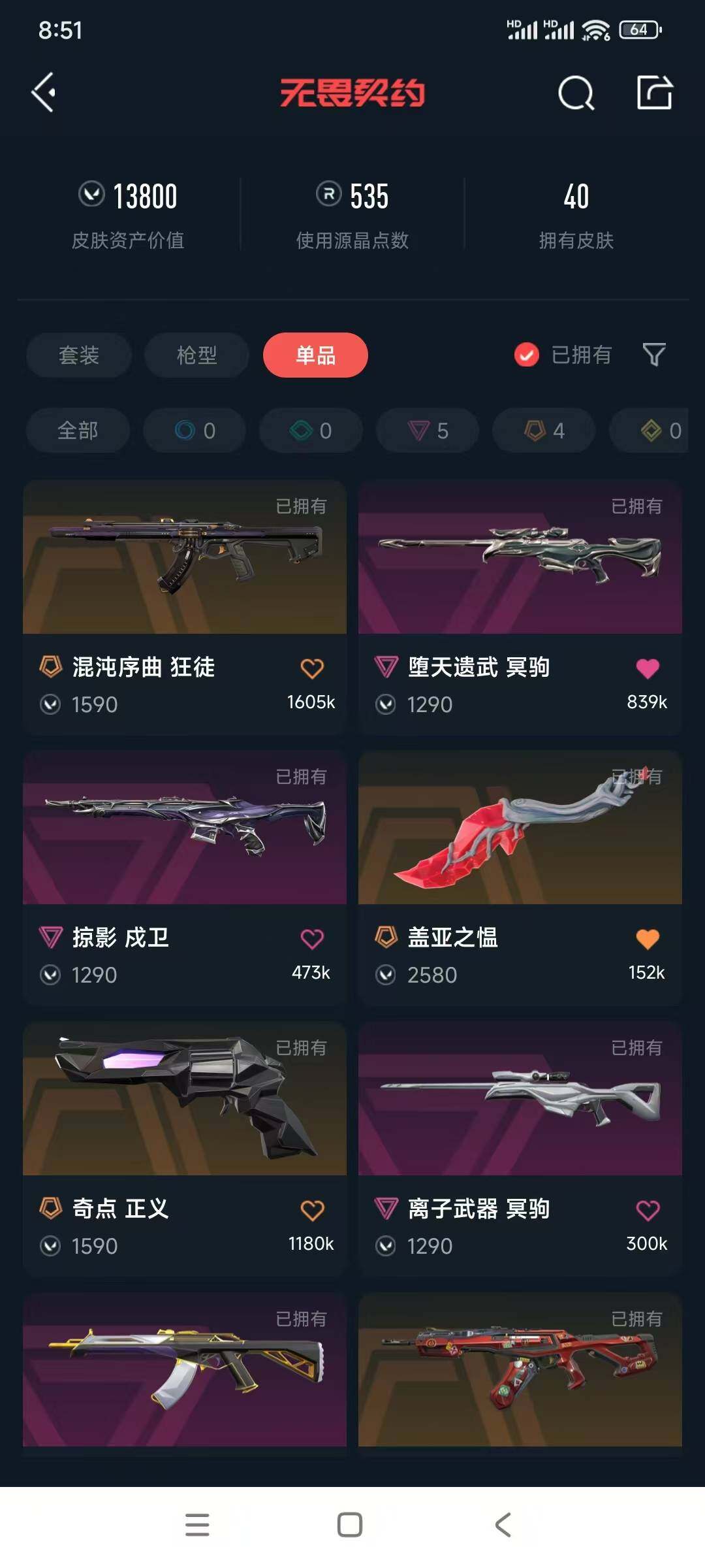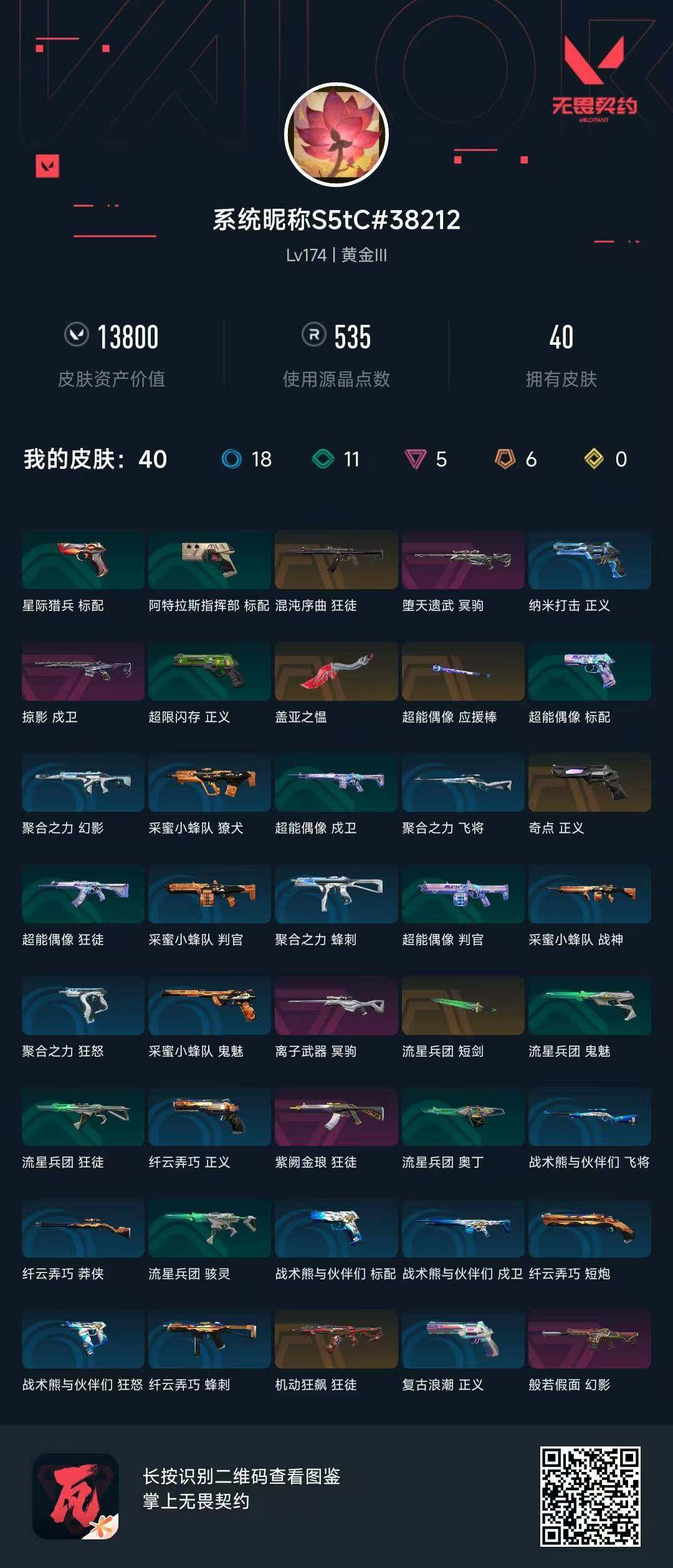 [12256783]6橙皮 5紫皮 40皮肤 13800皮肤总价值 535已用源晶 黄金 W1898【实名情况: 可二次实名】