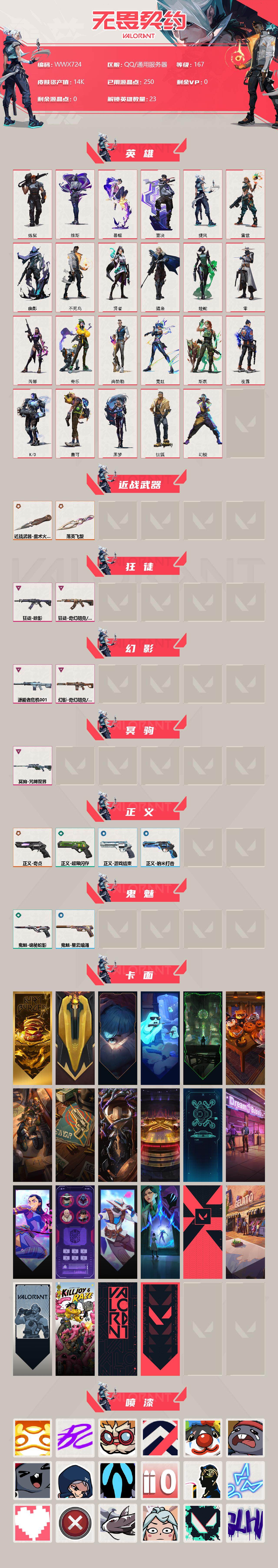 【WWX724】终极*3/卓越*5/皮肤*15/等级*167/段位:铂金/幻棱/炼狱/维斯/暮蝶/钛狐/壹决/捷风/雷兹/幽影/不死鸟/贤者/猎枭/蝰蛇/零/芮娜/奇乐/尚勃勒/霓虹/斯凯/夜露/K/O/盖可/黑梦/近战武器-魔术火花/近战武器-落英飞旋/狂徒-掠影/狂徒-奇幻朋克//3.0/幻影-源能者危机001/幻影-奇幻朋克//3.0/冥驹-咒缚双界/正义-奇点/正义-超限闪存/正义-纳米打击/正义-游戏结束/鬼魅-诡秘蛇影/鬼魅-星云暗涌/终章:激斗汉堡 卡面/进入射程 卡面/《双城之战》拥抱 卡面/精灵大战 卡面/欢迎来到底城 卡面/南瓜盛典 卡面/修车达人 卡面/正义的化身 卡面/时间到 卡面/最高舞台 卡面/声感陷阱设计图 卡面/梦幻奶茶 卡面/无畏契约GO!第一卷:芮娜 卡面/清除名单 卡面/无畏契约GO!第一卷:零 卡面/蝰蛇vs幽影 卡面/代号红色 卡面/冰淇淋店 卡面/新兵报到 卡面/友军火力 卡面/V契约 卡面/无畏契约 卡面/暗潮 卡面/嗨宝南瓜灯 喷漆/嘭! 喷漆/都算到了 喷漆/控场勿近 喷漆/小丑猫 喷漆/熊抱 喷漆/超级粉丝 喷漆/捷风差距 喷漆/惊声尖叫 喷漆/拼一枪 喷漆/致命优雅 喷漆/霓光四射 喷漆/双击点赞 喷漆/买装还是存钱 喷漆/松叶 喷漆/这招不行了 喷漆/胜利属于无畏契约 喷漆/GLHF 喷漆/无畏契约 喷漆/终章:猫猫木乃伊 挂饰/悠闲鸡块 挂饰/伞绳 挂饰/《双城之战》小蛋糕 挂饰/第九季//第三幕 纪念币 挂饰/工具腰带 挂饰/熔岩灯 挂饰/第九季//第二幕 纪念币 挂饰/糖葫芦 挂饰/袖珍捷风 挂饰/迷你浓缩 挂饰/第九季//第一幕 纪念币 挂饰/第八季//第二幕 纪念币 挂饰 /天外飞客 挂饰/第七季//第二幕 纪念币 挂饰/无畏契约 纪念币 挂饰【账号类型: QQ】