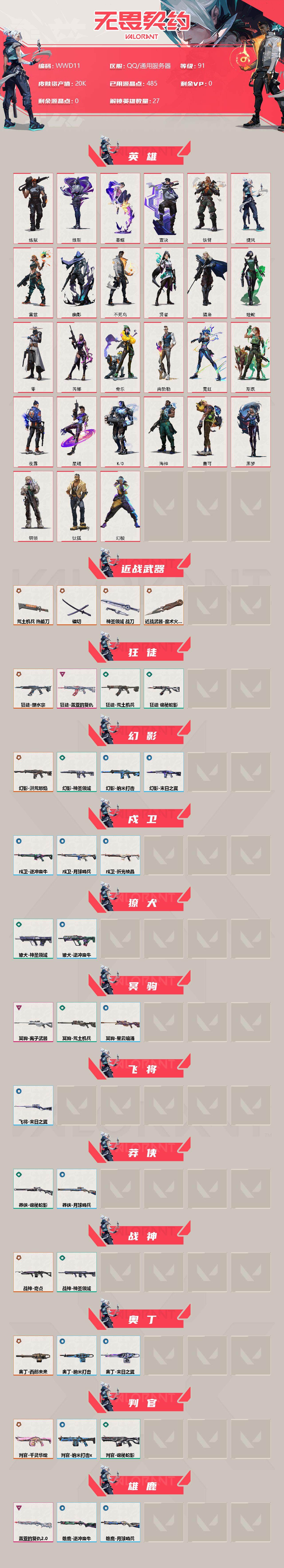 【WWD11】终极*10/卓越*3/皮肤*47/等级*91/段位:黑铁/幻棱/炼狱/维斯/暮蝶/钛狐/壹决/铁臂/捷风/雷兹/幽影/不死鸟/贤者/猎枭/蝰蛇/零/芮娜/奇乐/尚勃勒/霓虹/斯凯/夜露/星礈/K/O/海神/盖可/黑梦/钢锁/近战武器-魔术火花/近战武器-镭切/近战武器-荒土机兵 热能刀/近战武器-神圣领域 战刀/狂徒-塑水宗/狂徒-盖亚的复仇/狂徒-荒土机兵/狂徒-诡秘蛇影/幻影-洪荒怒焰/幻影-神圣领域/幻影-纳米打击/幻影-末日之翼/戍卫-逆冲蛮牛/戍卫-月球哨兵/戍卫-折光棱晶/獠犬-神圣领域/獠犬-逆冲蛮牛/冥驹-离子武器/冥驹-荒土机兵/冥驹-星云暗涌/飞将-末日之翼/莽侠-诡秘蛇影/莽侠-月球哨兵/战神-奇点/战神-神圣领域/奥丁-西部未来/奥丁-纳米打击/奥丁-末日之翼/判官-千灵华绽/判官-诡秘蛇影/判官-纳米打击x/雄鹿-盖亚的复仇//2.0/雄鹿-逆冲蛮牛/雄鹿-月球哨兵/骇灵-荒土机兵/骇灵-星云暗涌/蜂刺-星云暗涌/蜂刺-折光棱晶/标配-荒土机兵/标配-折光棱晶/正义-塑水宗/正义-纳米打击/正义-月球哨兵/鬼魅-星云暗涌/狂怒-神圣领域/狂怒-逆冲蛮牛/短炮-末日之翼/终章:激斗汉堡 卡面/进入射程 卡面/分崩离析 卡面/纳米打击 卡面/抑制技术 卡面/激斗汉堡 卡面/瓦娃脸雪糕 P2 卡面/从黄昏到黎明 卡面/荒土机兵 卡面/银弹猎手 卡面/逆冲蛮牛 卡面/《双城之战》拥抱 卡面/精灵大战 卡面/欢迎来到底城 卡面/南瓜盛典 卡面/无畏契约:暮蝶 卡面/正义的化身 卡面/梦幻奶茶 卡面/零点嗅探设计图 卡面/无畏契约GO!第一卷:芮娜 卡面/清除名单 卡面/无畏契约GO!第一卷:零 卡面/暗枪 卡面/钢锁vs盖可 卡面/代号红色 卡面/新兵报到 卡面/V契约 卡面/无畏契约 卡面/小小心意 喷漆/战“素”兔 喷漆/宇宙的指引 喷漆/请求重启 喷漆/逆冲蛮牛 喷漆/纳米打击 喷漆/鼻尖上的蝴蝶 喷漆/简笔画黯兽 喷漆/独守蝰腹 喷漆/他们将落荒而逃 喷漆/通缉:战术企鹅 喷漆/荒土机兵 喷漆/别挡我吃球! 喷漆/嗨宝南瓜灯 喷漆/嘭! 喷漆/都算到了 喷漆/控场勿近 喷漆/伤心心 喷漆/捷风差距 喷漆/买装还是存钱 喷漆/胜利属于无畏契约 喷漆/GLHF 喷漆/无畏契约 喷漆/终章:猫猫木乃伊 挂饰/荒土机兵 挂饰/悠闲鸡块 挂饰/猫猫木乃伊 挂饰/水壶 挂饰/纳米打击 挂饰/逆冲蛮牛 挂饰/可爱糖糖 挂饰/伞绳 挂饰/《双城之战》小蛋糕 挂饰/第九季//第三幕 纪念币 挂饰/无畏契约GO!第一卷 零 挂饰/Z世代特饮 挂饰/第八季//第三幕 纪念币 挂饰/第八季//第二幕 纪念币 挂饰 /天外飞客 挂饰/好运福爪 挂饰/第八季//第一幕 纪念币 挂饰/无畏契约 纪念币 挂饰【账号类型: QQ】