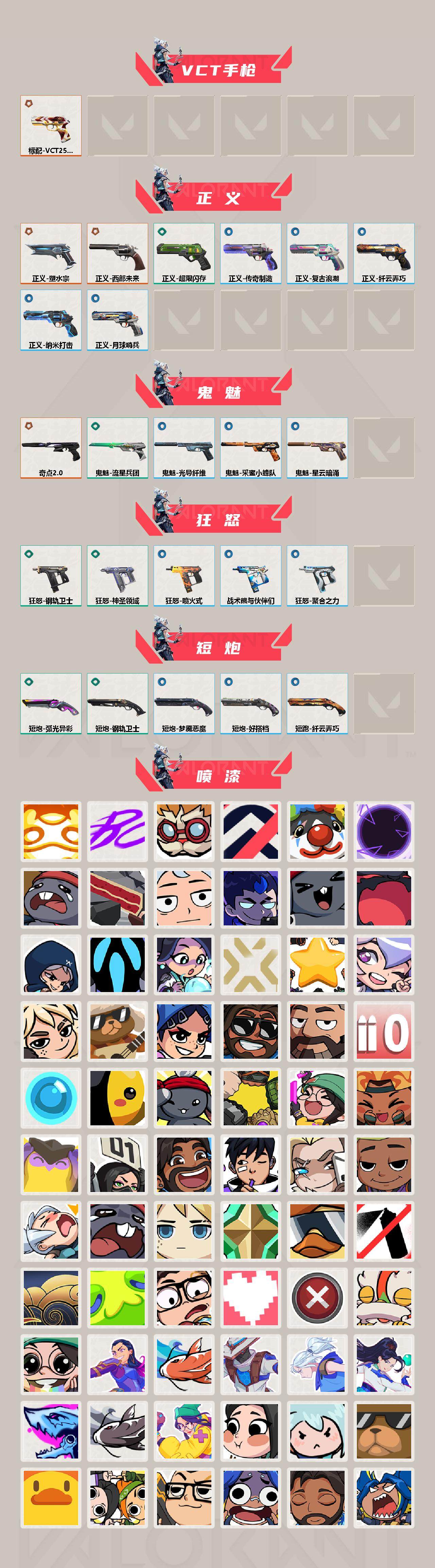 【喷漆】:嗨宝南瓜灯 喷漆,嘭! 喷漆,都算到了 喷漆,控场勿近 喷漆,小丑猫 喷漆,奇点//2.0 喷漆,熊抱 喷漆,蛋糕还是爆能器? 喷漆,又被闪了 喷漆,终极羞辱 喷漆,超级粉丝 喷漆,黯兽卖萌 喷漆,捷风差距 喷漆,惊声尖叫 喷漆,水晶球 喷漆,2021冠军巡回赛花火 喷漆,五人成星 喷漆,超能偶像 喷漆,放我出去 喷漆,战术熊的巴拉莱卡琴 喷漆,掩护我 喷漆,大佬发枪 喷漆,边缘试探 喷漆,拼一枪 喷漆,聚合之力 喷漆,采蜜小蜂队 喷漆,梦幻小队 喷漆,五个全都齐了 喷漆,加油!加油! 喷漆,开心到爆炸 喷漆,皮蛋萌舞 喷漆,我觉得不行 喷漆,头号粉丝 喷漆,吸一口快乐 喷漆,永远的答案 喷漆,再来一次? 喷漆,别挡我的路! 喷漆,我的刀呢? 喷漆,当然可以 喷漆,流星兵团 喷漆,战术熊与伙伴们 喷漆,禁止喷漆 喷漆,纤云弄巧 喷漆,UWU 喷漆,新潮流 喷漆,双击点赞 喷漆,买装还是存钱 喷漆,醒狮贺春 喷漆,萌化了 喷漆,无畏契约GO!第一卷:芮娜 喷漆,红鳞 喷漆,无畏契约GO!第一卷:零 喷漆,无畏契约GO!第一卷:捷风 喷漆,无畏契约GO!第一卷:贤者 喷漆,暴走萝莉 喷漆,松叶 喷漆,无畏契约GO!第一卷:奇乐 喷漆,辣得好下饭 喷漆,飓刃涂鸦 喷漆 ,旅行小熊 喷漆,战术小伙伴 喷漆,又一个梦幻组合 喷漆,是大风刮来的 喷漆 ,静电火花 喷漆 ,今天的潮声甚是喧嚣 喷漆 ,请你冷静点 喷漆 ,蕊形灯 喷漆,这是你掉的吗? 喷漆,省钱大师 喷漆 ,皇冠拉花 喷漆,该转点了 喷漆,老铁困了 喷漆,口袋贤者 喷漆,胜利属于无畏契约 喷漆,GLHF 喷漆,无畏契约 喷漆