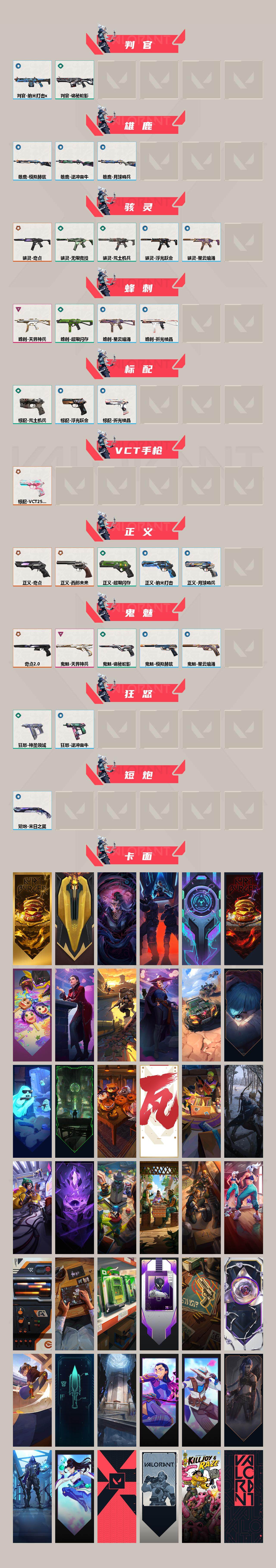 【卡面】:终章:激斗汉堡 卡面,进入射程 卡面,分崩离析 卡面,纳米打击 卡面,抑制技术 卡面,激斗汉堡 卡面,瓦娃脸雪糕 P2 卡面,从黄昏到黎明 卡面,荒土机兵 卡面,银弹猎手 卡面,逆冲蛮牛 卡面,《双城之战》拥抱 卡面,精灵大战 卡面,欢迎来到底城 卡面,南瓜盛典 卡面,VCT CN首冠 卡面,唱片的故事 卡面,钢弓与箭弦 卡面,排除故障 卡面,奇点//2.0 卡面,战术桌游 卡面,悠享食光 卡面,修车达人 卡面,热舞环节 卡面,模拟赫兹 卡面,浮光跃金 卡面,超限闪存 卡面,维斯工牌 卡面,正义的化身 卡面,铁之华 卡面,Clutch 卡面,零点嗅探设计图 卡面,表象之下 卡面,无畏契约GO!第一卷:芮娜 卡面,无畏契约GO!第一卷:零 卡面,《双城之战》金克丝 卡面,暗枪 卡面,无畏契约GO!第一卷:贤者 卡面,代号红色 卡面,新兵报到 卡面,友军火力 卡面,V契约 卡面,无畏契约 卡面