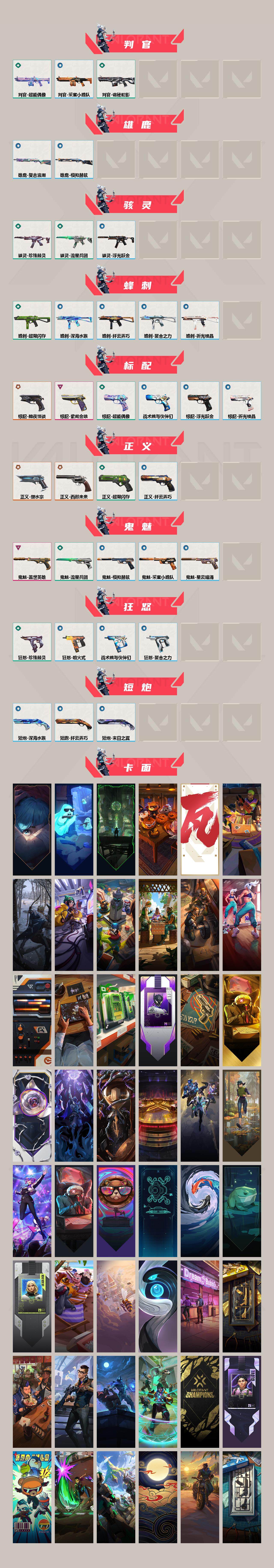 【卡面】:《双城之战》拥抱 卡面,精灵大战 卡面,欢迎来到底城 卡面,南瓜盛典 卡面,VCT CN首冠 卡面,唱片的故事 卡面,钢弓与箭弦 卡面,排除故障 卡面,战术桌游 卡面,悠享食光 卡面,修车达人 卡面,热舞环节 卡面,模拟赫兹 卡面,浮光跃金 卡面,超限闪存 卡面,维斯工牌 卡面,正义的化身 卡面,终章:生意人麦宝 卡面,铁之华 卡面,失而复得 卡面,时间到 卡面,最高舞台 卡面,复活专家 卡面,归乡 // 蝰蛇 卡面,超能偶像 卡面,生意人麦宝 卡面,音熊登场 卡面,声感陷阱设计图 卡面,红鳞松叶 卡面,霓帧牛蛙 卡面,钢锁工牌 卡面,战术小伙伴的夏日 卡面,采蜜小蜂队 卡面,聚合之力 卡面,梦幻奶茶 卡面,终章:打造专属狂徒 卡面,趁热吃 卡面,西装暴徒 卡面,失控边缘 卡面,哨卫者之领域 卡面,艺无止境//全球冠军赛 卡面,暮蝶工牌 卡面,战术熊与伙伴们 卡面,源能反应 卡面,流星兵团 卡面,纤云弄巧 卡面,暂别喧嚣 卡面,打造专属狂徒 卡面,零点嗅探设计图 卡面,脚踝终结者 卡面 ,夜班 卡面,瓦娃脸雪糕 卡面 ,沙雕爆能器 卡面,无畏契约GO!第一卷:芮娜 卡面,深海水族 卡面,珍珠棘贝 卡面,复古浪潮 卡面,盖可工牌 卡面,清除名单 卡面,无畏契约GO!第一卷:零 卡面,《双城之战》金克丝 卡面,没有什么能逃过我的眼睛 卡面,无畏契约GO!第一卷:贤者 卡面,代号红色 卡面,新兵报到 卡面,V契约 卡面,无畏契约 卡面
