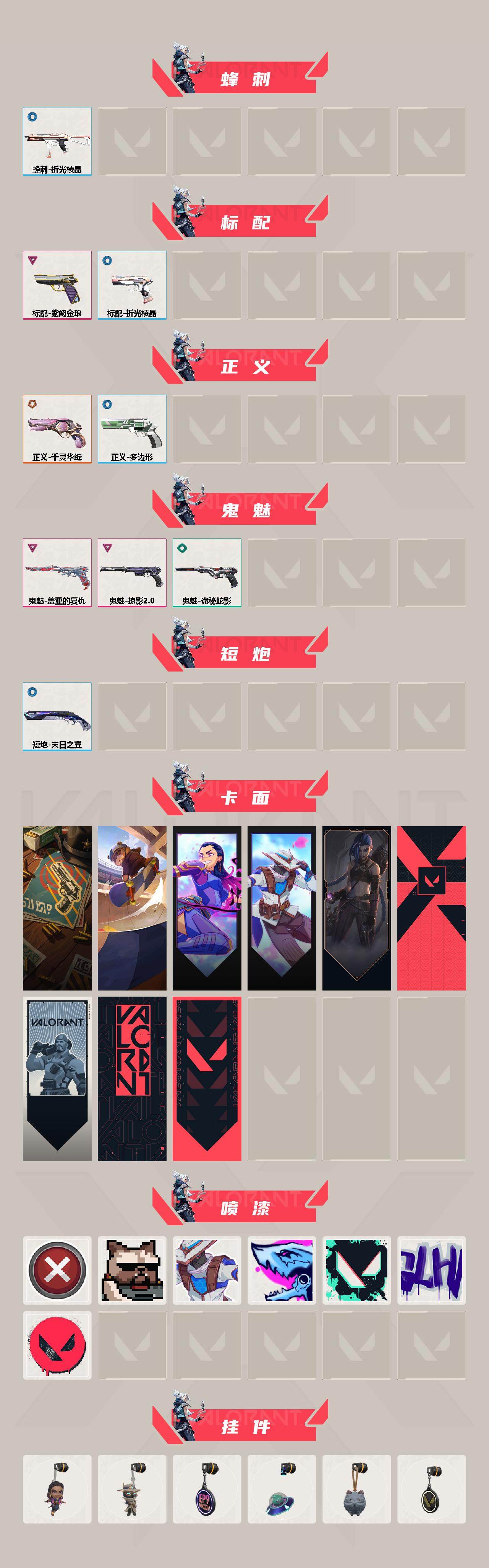 【卡面】:正义的化身 卡面,Clutch 卡面,无畏契约GO!第一卷:芮娜 卡面,无畏契约GO!第一卷:零 卡面,《双城之战》金克丝 卡面,代号红色 卡面,新兵报到 卡面,V契约 卡面,无畏契约 卡面
