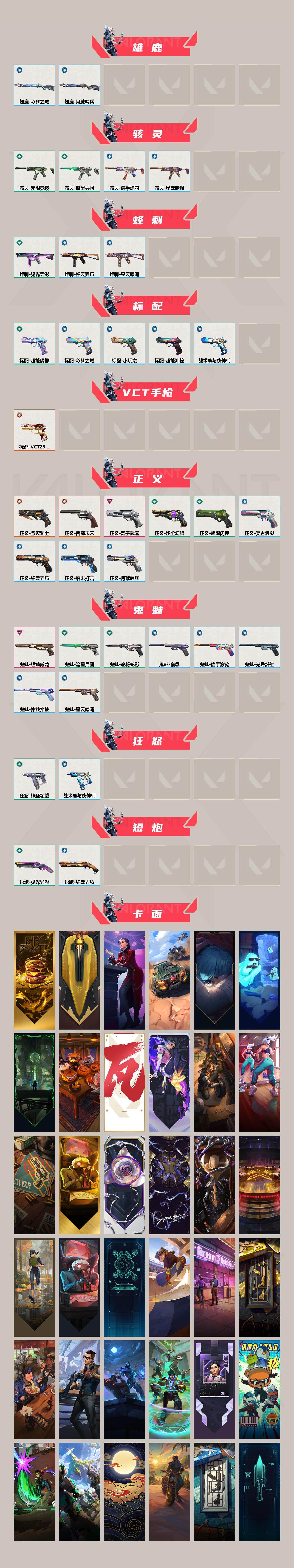【卡面】:终章:激斗汉堡 卡面,进入射程 卡面,从黄昏到黎明 卡面,逆冲蛮牛 卡面,《双城之战》拥抱 卡面,精灵大战 卡面,欢迎来到底城 卡面,南瓜盛典 卡面,VCT CN首冠 卡面,无畏契约:暮蝶 卡面,修车达人 卡面,热舞环节 卡面,正义的化身 卡面,终章:生意人麦宝 卡面,铁之华 卡面,2024全球冠军赛 卡面,时间到 卡面,最高舞台 卡面,归乡 // 蝰蛇 卡面,生意人麦宝 卡面,声感陷阱设计图 卡面,Clutch 卡面,梦幻奶茶 卡面,终章:打造专属狂徒 卡面,趁热吃 卡面,西装暴徒 卡面,失控边缘 卡面,哨卫者之领域 卡面,暮蝶工牌 卡面,战术熊与伙伴们 卡面,源能反应 卡面,流星兵团 卡面,纤云弄巧 卡面,暂别喧嚣 卡面,打造专属狂徒 卡面,零点嗅探设计图 卡面,终章:瓦娃脸雪糕 卡面,表象之下 卡面,沙雕爆能器 卡面,无畏契约GO!第一卷:芮娜 卡面,清除名单 卡面,无畏契约GO!第一卷:零 卡面,终章:同步耍酷 卡面,龍记 卡面,化茧成蝶 卡面,无垠星环 卡面,先瓦为敬 - 绿色 卡面,《双城之战》金克丝 卡面,完美调谐 卡面 ,暗枪 卡面,无畏契约GO!第一卷:贤者 卡面,终章:黑影先生的咖啡! 卡面,铁臂vs雷兹 卡面,钢锁vs盖可 卡面,别冒尖 卡面,黑影先生的咖啡! 卡面,壹决工牌 卡面,萌彩剪影 卡面,夯实根基 卡面,"Luie" 卡面,热烈欢迎 卡面,铁臂设计图 卡面,代号红色 卡面,冰淇淋店 卡面,新兵报到 卡面,友军火力 卡面,V契约 卡面,无畏契约 卡面