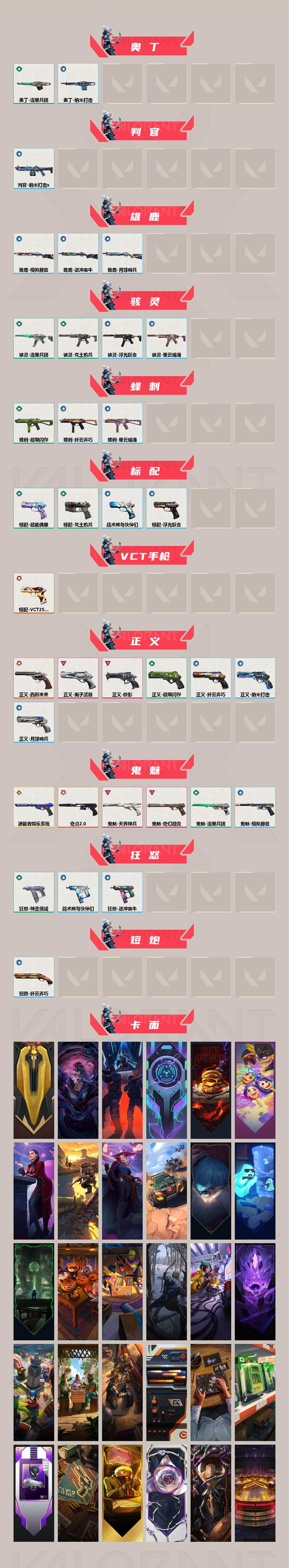 【卡面】:进入射程 卡面,分崩离析 卡面,纳米打击 卡面,抑制技术 卡面,激斗汉堡 卡面,瓦娃脸雪糕 P2 卡面,从黄昏到黎明 卡面,荒土机兵 卡面,银弹猎手 卡面,逆冲蛮牛 卡面,《双城之战》拥抱 卡面,精灵大战 卡面,欢迎来到底城 卡面,南瓜盛典 卡面,唱片的故事 卡面,钢弓与箭弦 卡面,排除故障 卡面,奇点//2.0 卡面,战术桌游 卡面,悠享食光 卡面,修车达人 卡面,模拟赫兹 卡面,浮光跃金 卡面,超限闪存 卡面,维斯工牌 卡面,正义的化身 卡面,终章:生意人麦宝 卡面,铁之华 卡面,时间到 卡面,最高舞台 卡面,树懒大作战 卡面,声感陷阱设计图 卡面,梦幻奶茶 卡面,终章:打造专属狂徒 卡面,趁热吃 卡面,西装暴徒 卡面,失控边缘 卡面,哨卫者之领域 卡面,暮蝶工牌 卡面,战术熊与伙伴们 卡面,源能反应 卡面,流星兵团 卡面,纤云弄巧 卡面,暂别喧嚣 卡面,打造专属狂徒 卡面,零点嗅探设计图 卡面,无畏契约GO!第一卷:芮娜 卡面,无畏契约GO!第一卷:零 卡面,代号红色 卡面,新兵报到 卡面,V契约 卡面,无畏契约 卡面