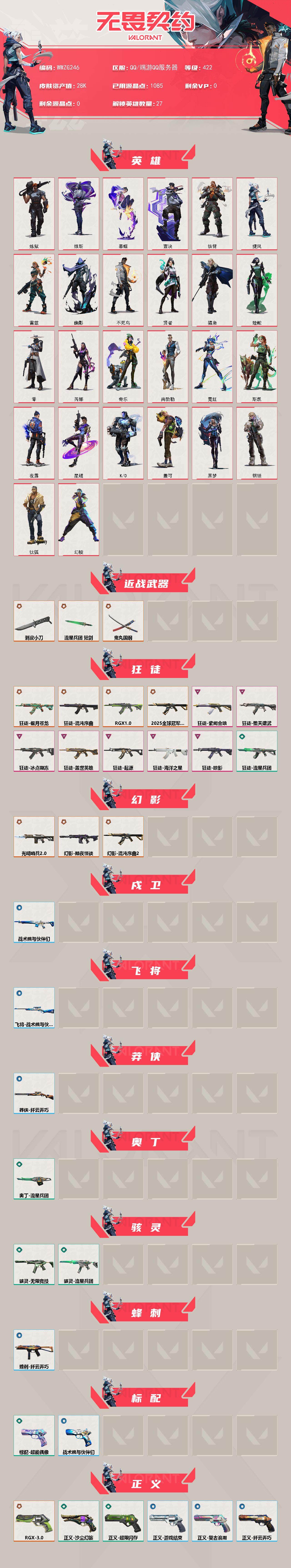 【WWZG246】终极*11/卓越*7/皮肤*47/等级*422/段位:钻石/幻棱/炼狱/维斯/暮蝶/钛狐/壹决/铁臂/捷风/雷兹/幽影/不死鸟/贤者/猎枭/蝰蛇/零/芮娜/奇乐/尚勃勒/霓虹/斯凯/夜露/星礈/K/O/盖可/黑梦/钢锁/近战武器-剥皮小刀/近战武器-鬼丸国纲/近战武器-流星兵团 短剑/狂徒-2025全球冠军赛/狂徒-混沌序曲/狂徒-偃月苍龙/狂徒-RGX 11z Pro/狂徒-冰点凝冻/狂徒-堕天遗武/狂徒-掠影/狂徒-盖世英雄/狂徒-海洋之星/狂徒-起源/狂徒-紫阙金琅/狂徒-流星兵团/幻影-黯夜怪谈/幻影-光明哨兵//2.0/幻影-混沌序曲//2.0/戍卫-战术熊与伙伴们/飞将-战术熊与伙伴们/莽侠-纤云弄巧/奥丁-流星兵团/骇灵-流星兵团/骇灵-无限竞技/蜂刺-纤云弄巧/标配-超能偶像/标配-战术熊与伙伴们/正义-RGX 11z Pro//3.0/正义-超限闪存/正义-沙尘幻旅/正义-复古浪潮/正义-纳米打击/正义-纤云弄巧/正义-游戏结束/鬼魅-流星兵团/鬼魅-诡秘蛇影/鬼魅-光导纤维/鬼魅-灵魂消声者/鬼魅-数码咒术/鬼魅-星云暗涌/狂怒-战术熊与伙伴们/短炮-弧光异彩/短炮-纤云弄巧/终章:激斗汉堡 卡面/进入射程 卡面/《双城之战》拥抱 卡面/精灵大战 卡面/欢迎来到底城 卡面/南瓜盛典 卡面/修车达人 卡面/热舞环节 卡面/正义的化身 卡面/终章:生意人麦宝 卡面/铁之华 卡面/时间到 卡面/最高舞台 卡面/音熊登场 卡面/树懒大作战 卡面/声感陷阱设计图 卡面/红鳞松叶 卡面/Clutch 卡面/霓帧牛蛙 卡面/梦幻奶茶 卡面/终章:打造专属狂徒 卡面/趁热吃 卡面/西装暴徒 卡面/失控边缘 卡面/哨卫者之领域 卡面/暮蝶工牌 卡面/战术熊与伙伴们 卡面/源能反应 卡面/流星兵团 卡面/纤云弄巧 卡面/暂别喧嚣 卡面/打造专属狂徒 卡面/零点嗅探设计图 卡面/终章:瓦娃脸雪糕 卡面/表象之下 卡面/虹吸式咖啡壶 卡面/沙雕爆能器 卡面/无畏契约GO!第一卷:芮娜 卡面/清除名单 卡面/无畏契约GO!第一卷:零 卡面/终章:同步耍酷 卡面/龍记 卡面/化茧成蝶 卡面/无垠星环 卡面/《双城之战》金克丝 卡面/完美调谐 卡面 /暗枪 卡面/无畏契约GO!第一卷:贤者 卡面/终章:黑影先生的咖啡! 卡面/铁臂vs雷兹 卡面/钢锁vs盖可 卡面/别冒尖 卡面/势不可挡//K/O 卡面/夯实根基 卡面/"Luie" 卡面/热烈欢迎 卡面/铁臂设计图 卡面/代号红色 卡面/冰淇淋店 卡面/新兵报到 卡面/友军火力 卡面/V契约 卡面/无畏契约 卡面/#拯救宽体奇乐 卡面/嗨宝南瓜灯 喷漆/嘭! 喷漆/都算到了 喷漆/控场勿近 喷漆/像素星礈 喷漆/小丑猫 喷漆/熊抱 喷漆/超级粉丝 喷漆/捷风差距 喷漆/惊声尖叫 喷漆/2021冠军巡回赛花火 喷漆/战术熊的巴拉莱卡琴 喷漆/审判之爪 喷漆/拼一枪 喷漆/加油!加油! 喷漆/开心到爆炸 喷漆/皮蛋萌舞 喷漆/我觉得不行 喷漆/头号粉丝 喷漆/吸一口快乐 喷漆/永远的答案 喷漆/再来一次? 喷漆/别挡我的路! 喷漆/我的刀呢? 喷漆/当然可以 喷漆/流星兵团 喷漆/战术熊与伙伴们 喷漆/禁止喷漆 喷漆/纤云弄巧 喷漆/霓光四射 喷漆/UWU 喷漆/新潮流 喷漆/双击点赞 喷漆/买装还是存钱 喷漆/醒狮贺春 喷漆/酷熊冲浪 喷漆/无畏契约GO!第一卷:芮娜 喷漆/红鳞 喷漆/无畏契约GO!第一卷:零 喷漆/无畏契约GO!第一卷:捷风 喷漆/无畏契约GO!第一卷:贤者 喷漆/暴走萝莉 喷漆/松叶 喷漆/无畏契约GO!第一卷:奇乐 喷漆/旅行小熊 喷漆/蕊形灯 喷漆/这招不行了 喷漆/放下武器 喷漆/凌空惊吓 喷漆/老铁困了 喷漆/口袋贤者 喷漆/胜利属于无畏契约 喷漆/GLHF 喷漆/无畏契约 喷漆/第八季:超凡 挂饰/终章:猫猫木乃伊 挂饰/悠闲鸡块 挂饰/伞绳 挂饰/《双城之战》小蛋糕 挂饰/第九季//第三幕 纪念币 挂饰/工具腰带 挂饰/无畏契约GO!第一卷 芮娜 挂饰/无畏契约GO!第一卷 零 挂饰/鱼骨头 挂饰/熔岩灯 挂饰/第九季//第二幕 纪念币 挂饰/薰衣草之心 挂饰/终章:这瓜保熟 挂饰/糖葫芦 挂饰/袖珍捷风 挂饰/丢麦 挂饰/迷你浓缩 挂饰/尤克里里 挂饰/Z世代特饮 挂饰/动力机箱 挂饰/第九季//第一幕 纪念币 挂饰/终章:迷你机甲 挂饰/犯困的布鲁诺 挂饰/战术河童 挂饰/改变者全球冠军赛奖杯 挂饰/招财猫熊 挂饰/迷你机甲 挂饰/荧光棒 挂饰/章鱼烧先生 挂饰/流星兵团 挂饰/云开见日 挂饰/第八季//第三幕 纪念币 挂饰/终章:扭结饼干 挂饰 /瓶中信 挂饰/传世莲华 挂饰/第八季//第二幕 纪念币 挂饰 /天外飞客 挂饰/好运福爪 挂饰/终章:晒出笑脸 挂饰/红鳞松叶 挂饰/《双城之战》魄罗 挂饰/酷闪轮滑 挂饰/瞄这里 挂饰/第八季//第一幕 纪念币 挂饰/终章:高音谱号 挂饰/彩糖面包 挂饰/冬日絮语 挂饰/海豹的认可 挂饰/第七季//第三幕 纪念币 挂饰/幸运中国结 挂饰/第七季//第二幕 纪念币 挂饰/无畏契约 纪念币 挂饰【账号类型: QQ】