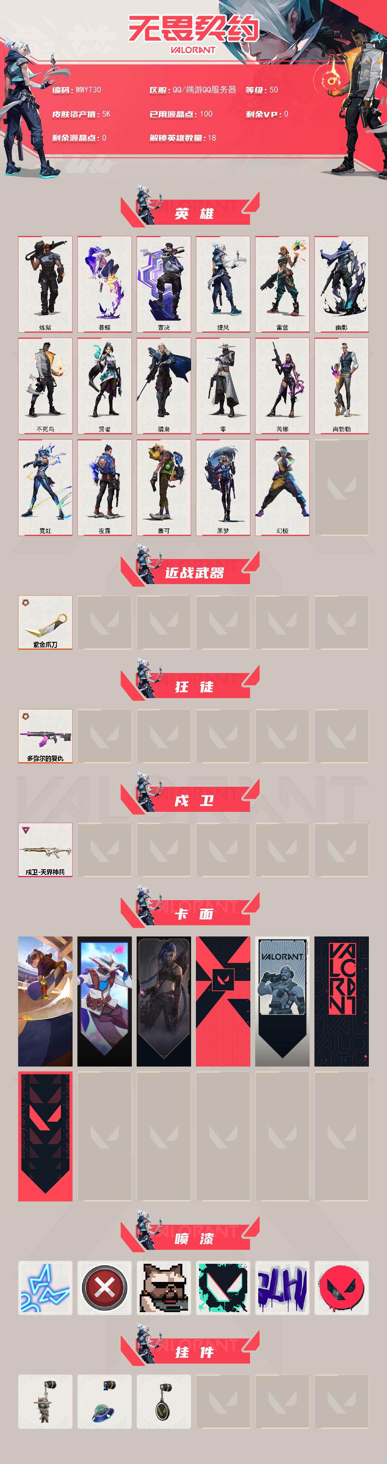【WWYT30】终极*3/卓越*1/皮肤*16/等级*50/段位:青铜/幻棱/炼狱/暮蝶/壹决/捷风/雷兹/幽影/不死鸟/贤者/猎枭/零/芮娜/尚勃勒/霓虹/夜露/盖可/黑梦/近战武器-紫金爪刀/狂徒-多弥尔的复仇/戍卫-天界神兵/Clutch 卡面/无畏契约GO!第一卷:零 卡面/《双城之战》金克丝 卡面/代号红色 卡面/新兵报到 卡面/V契约 卡面/无畏契约 卡面/霓光四射 喷漆/买装还是存钱 喷漆/关门放狗 喷漆/胜利属于无畏契约 喷漆/GLHF 喷漆/无畏契约 喷漆/无畏契约GO!第一卷 零 挂饰/天外飞客 挂饰/无畏契约 纪念币 挂饰【账号类型: QQ】