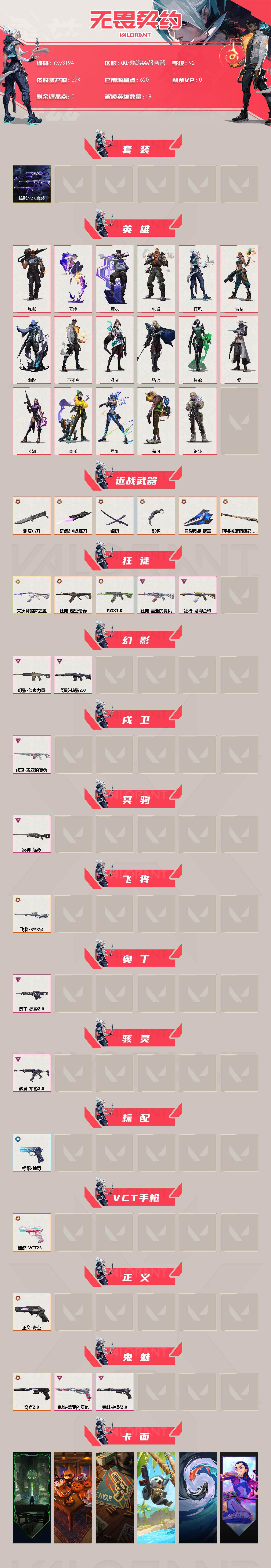 【卡面】:欢迎来到底城 卡面,南瓜盛典 卡面,正义的化身 卡面,树懒大作战 卡面,红鳞松叶 卡面,无畏契约GO!第一卷:芮娜 卡面,无畏契约GO!第一卷:零 卡面,无垠星环 卡面,《双城之战》金克丝 卡面,势不可挡//K/O 卡面,代号红色 卡面,新兵报到 卡面,V契约 卡面,无畏契约 卡面