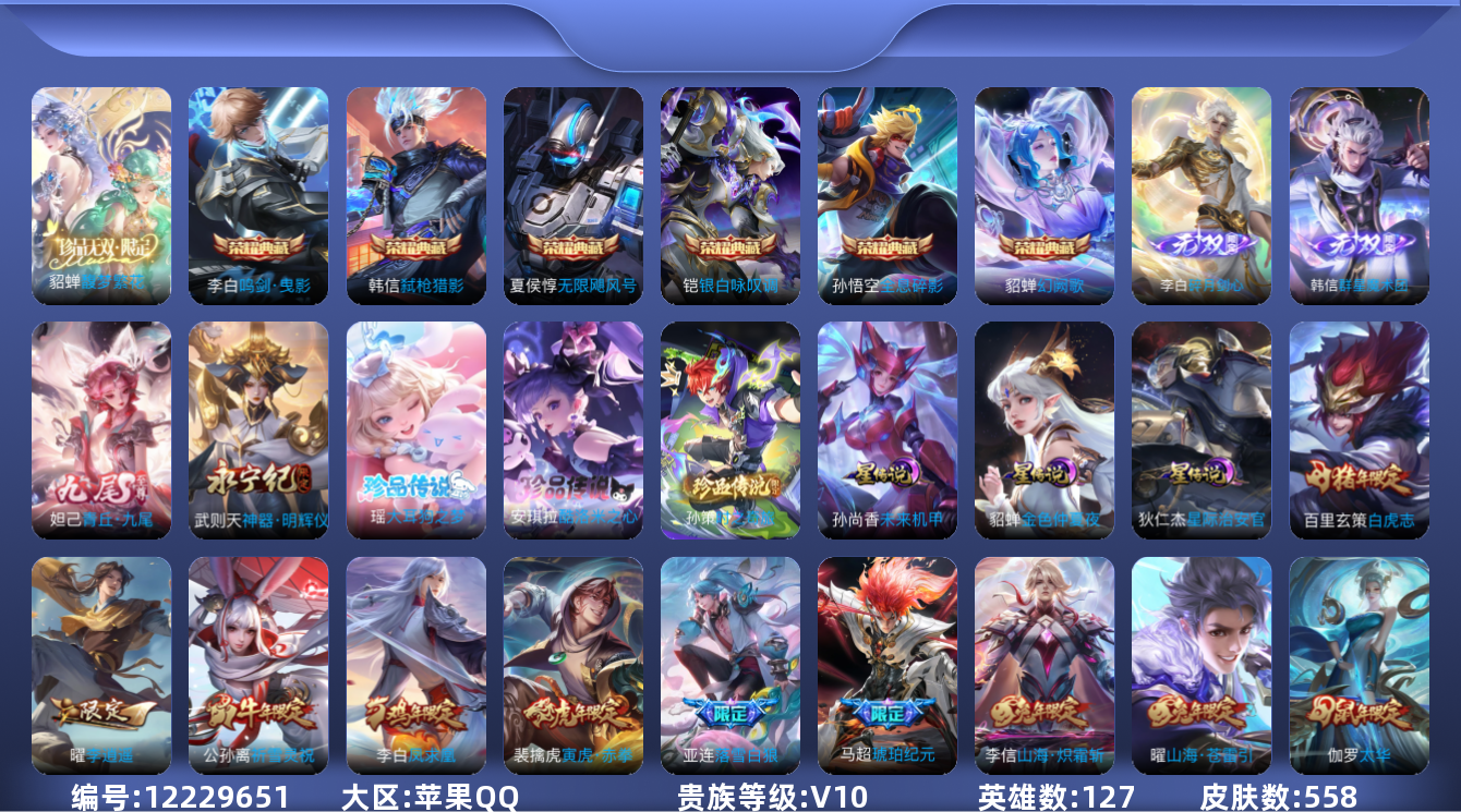 [12229651]846406可二次550皮肤v10珍品无双1无双4水晶7珍品传说3传说80优质限定114