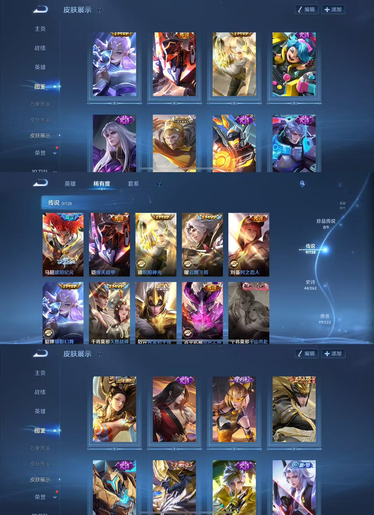 【传说皮肤】 后羿黄金射手座 干将莫邪久胜战神 铠绛天战甲 貂蝉猫影幻舞 曜云鹰飞将 镜炽阳神光 刘备时之恋人 宫本武藏地狱之眼 马超琥珀纪元