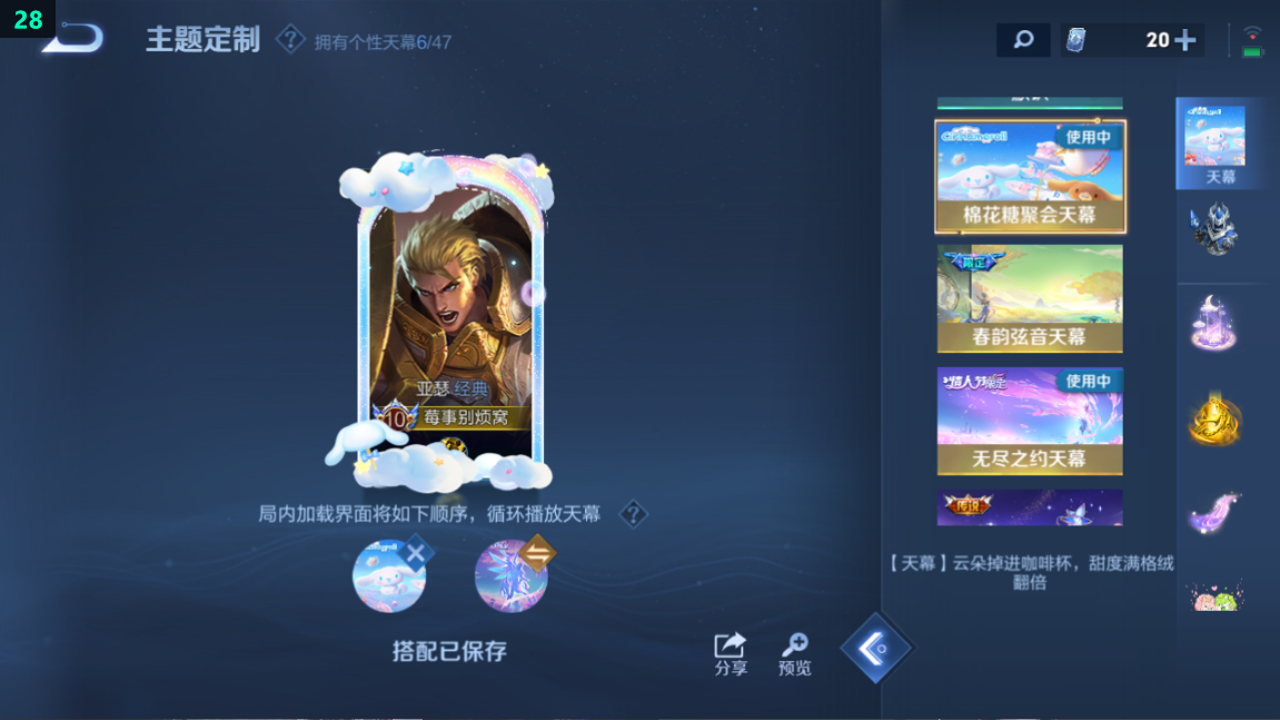 新史诗限定:浮光幕影,决胜骁骑,东方月初,谪仙醉月,赞萌露比,埋骨钱,器灵·浮梦炉,星之鸣奏,守夜人,至美·乘鲤谣,海诺心动手记,陌上桑,千劫归真,幻珠鲛人,乘龙·忆丹青,涂山红红,