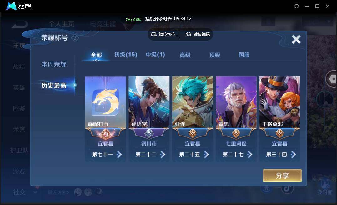 PX_2288566-【W3973】【亮点:对抗31段-发育28段-打野27段-5.9k场次-九霄神辉-怪盗基德】营地ID:2146440328【热门:愿照九州拓,炽阳神光,时之恋人】安卓q-有二次-贵7-127英雄-296皮肤-1典藏-1珍品-2星元-9传说-96限定-9按键-贵族积分3.3w