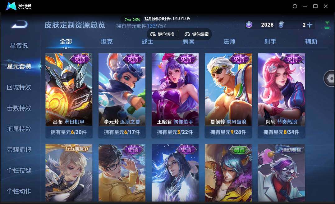 【史诗皮肤】 刘禅绅士熊喵 铠曙光守护者 兰陵王暗隐猎兽者 诸葛亮黄金分割率 刘邦德古拉伯爵 白起星夜王子 墨子金属风暴 曹操幽灵船长 王昭君偶像歌手 阿轲节奏热浪 项羽苍穹之光 百里守约特工魅影 花木兰水晶猎龙者 伽罗箭羽风息 吕布末日机甲 貂蝉圣诞恋歌 宫本武藏鬼剑武藏 夏侯惇乘风破浪 李白千年之狐 韩信白龙吟 李元芳逐浪之夏