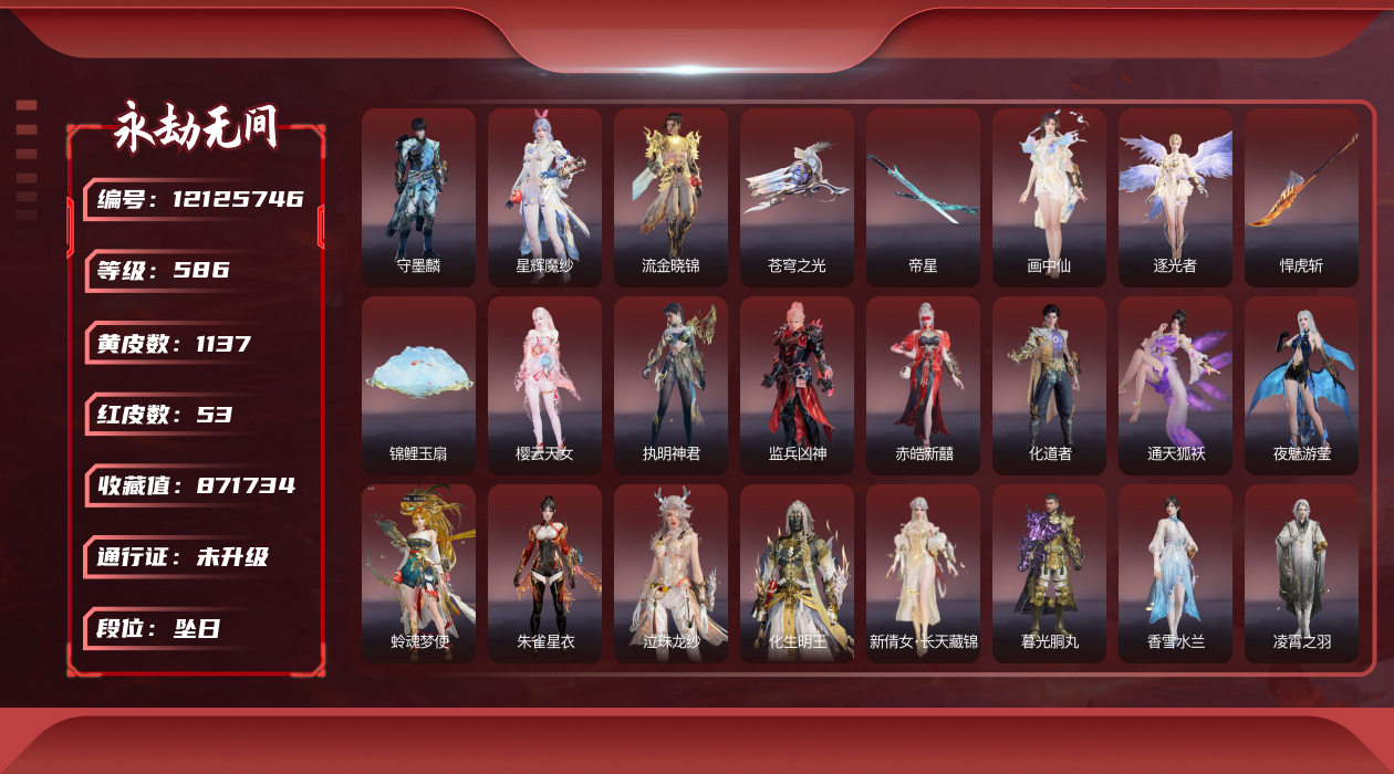 [12125746]BBE098网易手机53个红皮,泳装9个【高校水着(胡桃),椰风夕照(季沧海),热海白珊(妖刀姬),午后瑰夏(宁红夜),昭夏流金(迦南),仲夏霜华(顾清寒),弄潮逐浪(崔三娘),盛夏白阳(季莹莹),赤夏悠漾(玉玲珑),精武魂(季沧海),】,可以直接换绑网易支付未实名,道具货币都是默认已使用.奥义特效14个【神君印(岳山),赤徽(岳山),炎烈珠(季沧海),初代机(沈妙),绿野守护·竹韵悠(沈妙),神乌造像(天海),石龛造像(天海),珥冰(天海),百战·枷锁(魏轻),楚韵九歌·四海(哈迪),噬骨(哈迪),镇冥司(刘炼),雪霜姿(顾清寒),宝葫芦(玉玲珑),】小技能特效6个【剪纸·彩刀(妖刀姬),三娃葫芦(天海),千秋匠心·凶虎(胡为),观山海·春木(殷紫萍),霜翎(哈迪),拳皇·勾玉(胡为),】胡为吕布全套,岳山杨戬+变身器+三尖两刃刀全套,岳山2674衣服+变身器高达套装,武器红皮26个【2674·终极型,悍虎斩,帝星,惊百里,麒麟魄,烈阳,西行劫·如意金箍棒,冰魄,2674·九阴,飞将戟,锦鲤玉扇,比羿,灵狐幻刃,天琼,涯角,逆晦朔,凤求凰,狂龙,少阳剑,灵犀,狼主,苍穹之光,天罚,毕方,2674·终极型·紫,2674·终极型·红,】其他红皮27个【流金晓锦,画中仙,星辉魔纱,樱云天女,守墨麟,逐光者,夜魅游莹,监兵凶神,执明神君,化道者,通天狐袄,暮光胴丸,赤皓新囍,化生明王,泣珠龙纱,长天藏锦,蛉魂梦使,海之奇,香雪水兰,朱雀星衣,沙漠香风,蝶梦,凌霄之羽,初代玄女,戎金狼,绝代风华,熛怒炼火,】飞鼠,劫涛·潮,春桃笑,昊天,小舞,海神三叉戟,杨戬,自动人形·2B,自动人形·A2,悟空,2674·街头烈火,玄豹姿,春日序曲·赤羽,唐三,霍雨浩,庖丁·食神,龙心炽焰,信手斩龙,霜天红叶,龙之影·龙虎斗,花无痕,枫行者,西行劫·悟净,千秋匠心·青枝瓷,逆水寒·江海羲炎,孽炎祸斗,百战·破荆者,观山海·夏神祝融,护世四法·增长天王,巨阙,丹青墨意,紫金玉女,西行劫·蜘蛛精,夜华朝,护世四法·多闻天王,金羽圣鹰,龙之道·求真,浣烟纱,惊云羽,龙门·飞天,神鹰之女,观山海·青鸟,千秋匠心·玉叶景,天钿女命,春桃笑,承云兰寿,日道神子,【按系统: 网易国服】