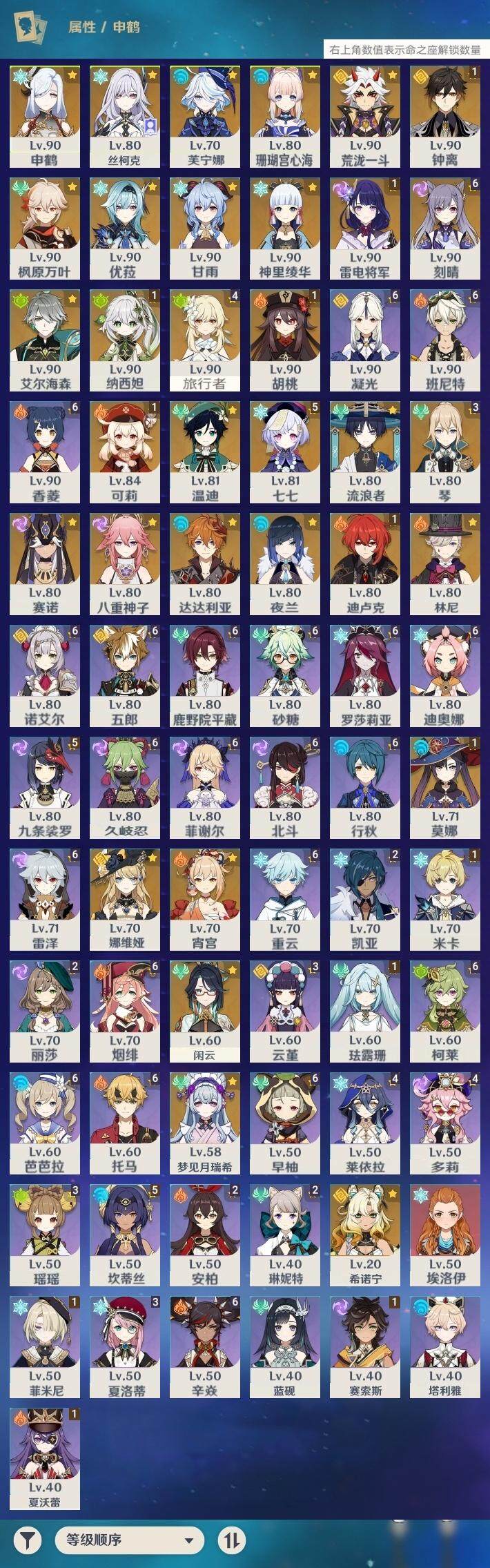 [12229420]60级/77黄/女主/32个五星角色/19个五星武器