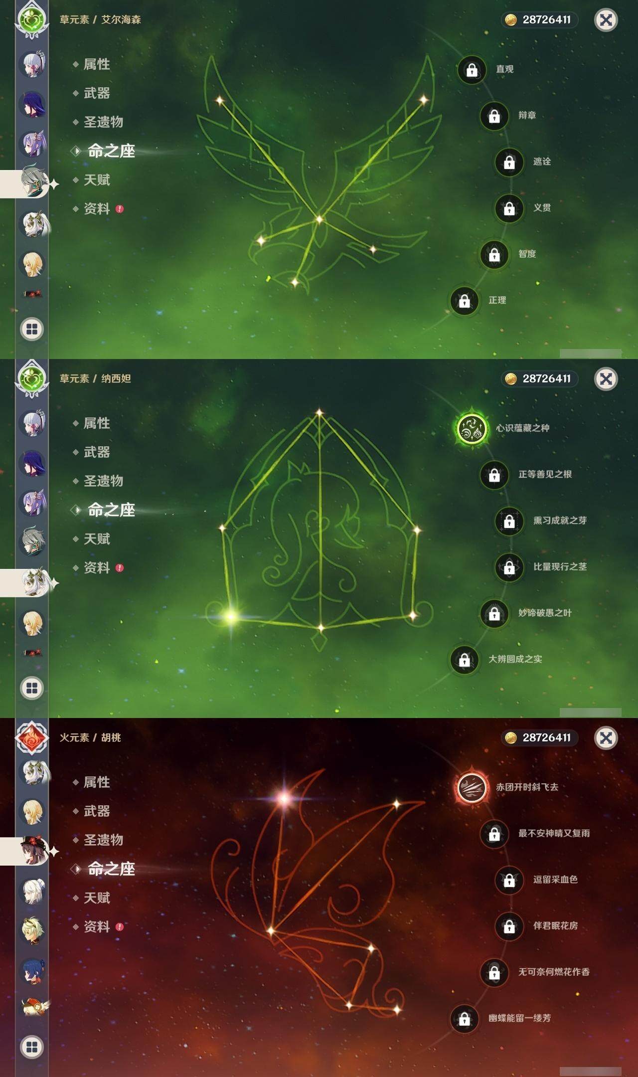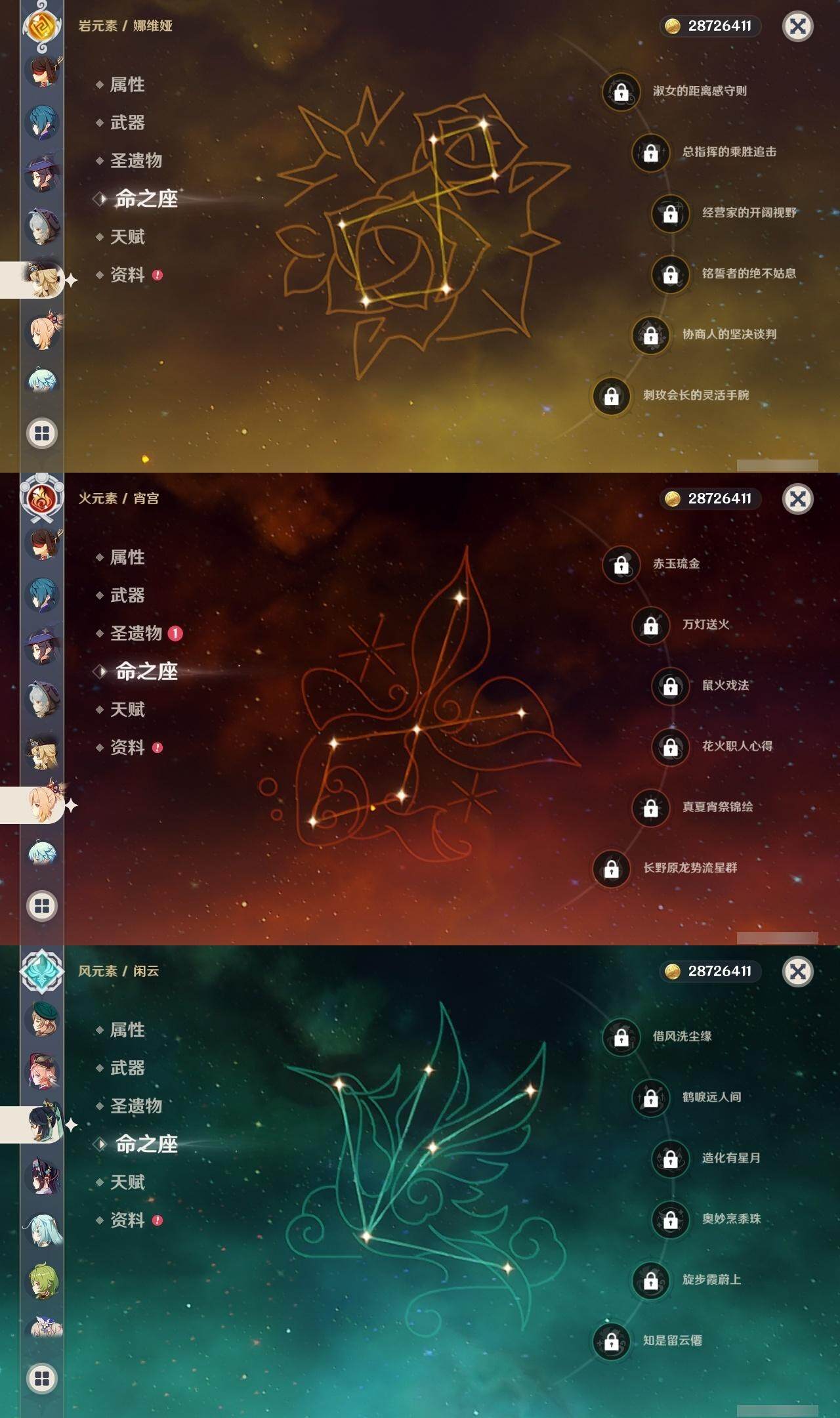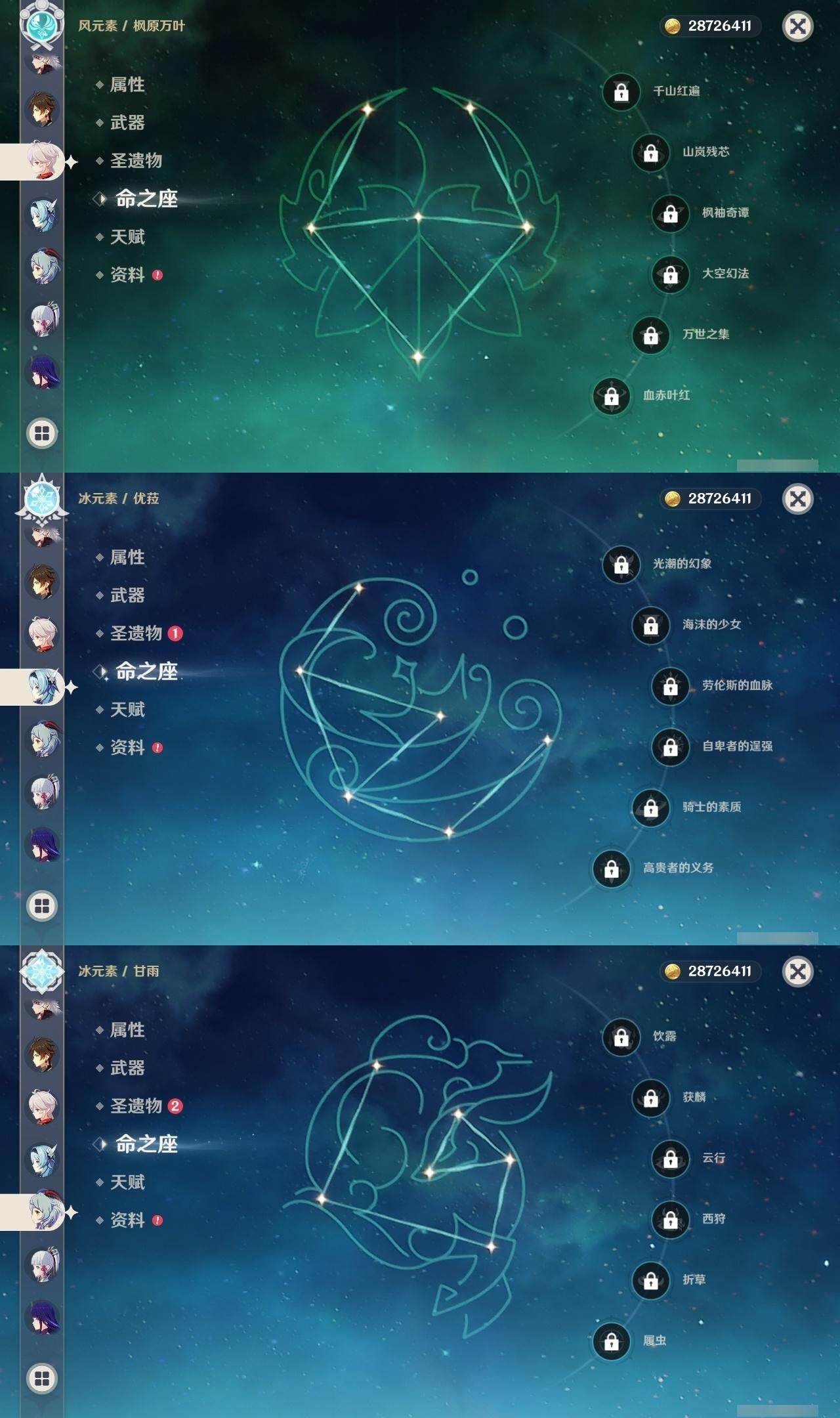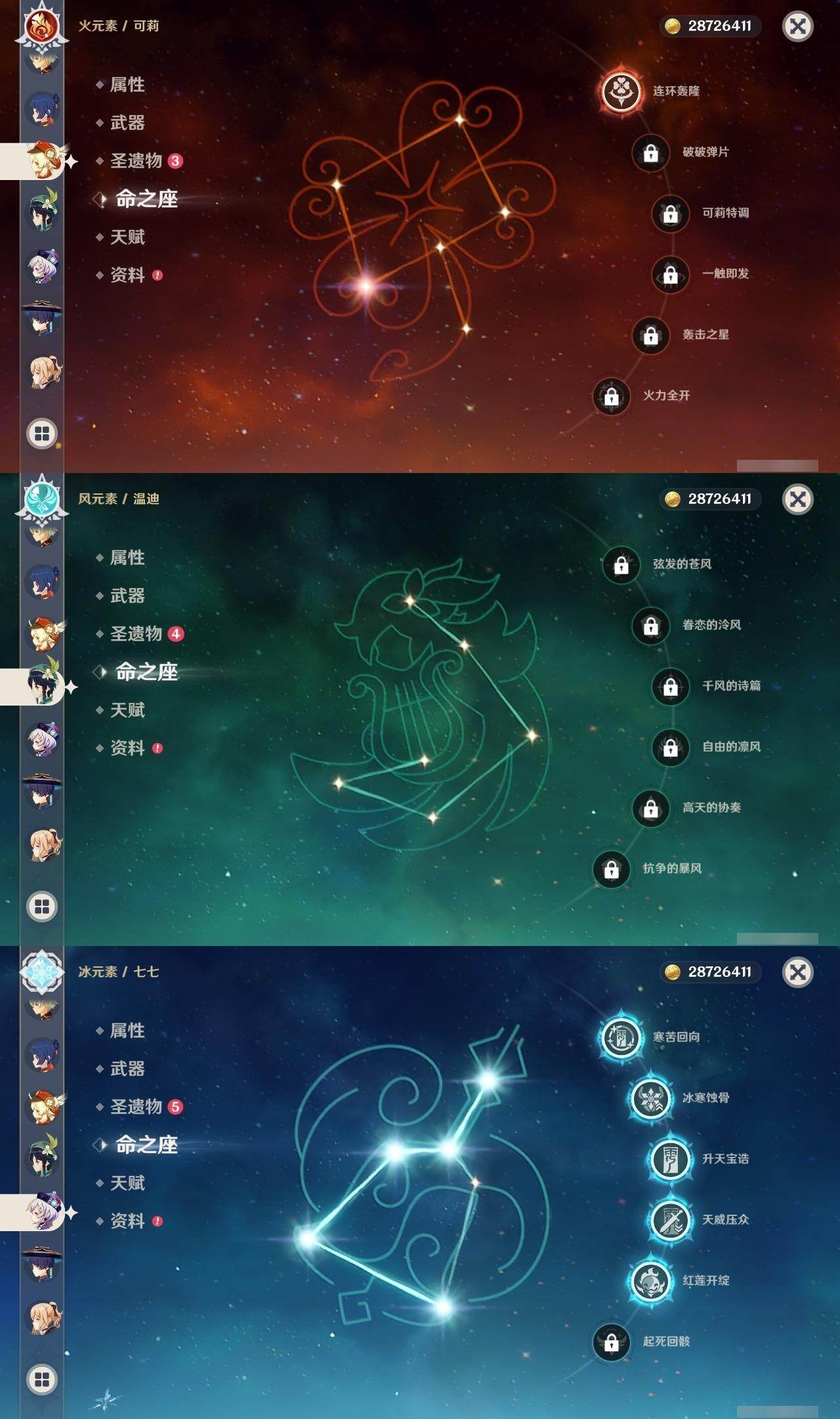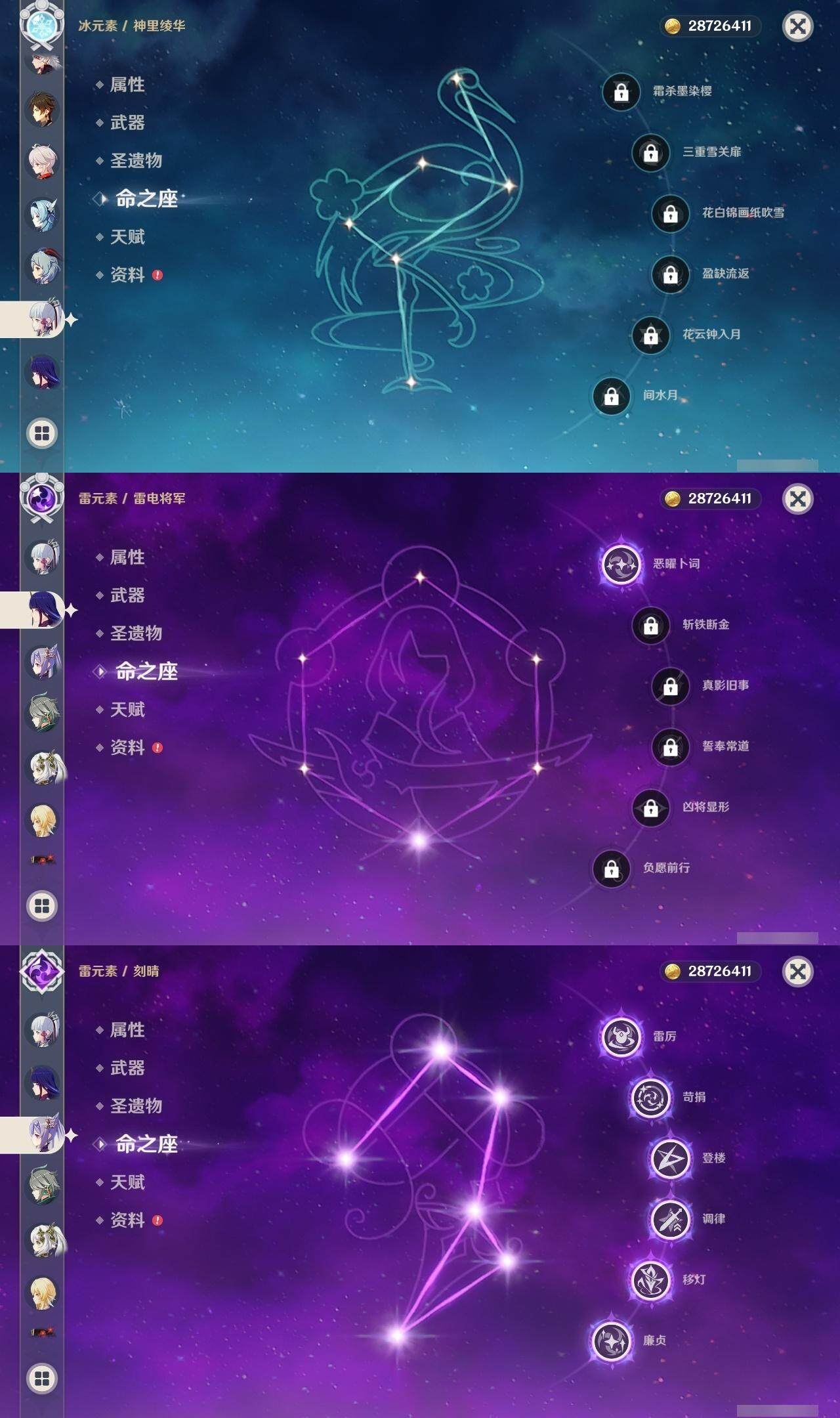 【一命角色】 1命钟离 1命雷电将军 1命纳西妲 1命胡桃 1命可莉 1命迪卢克 1命莫娜