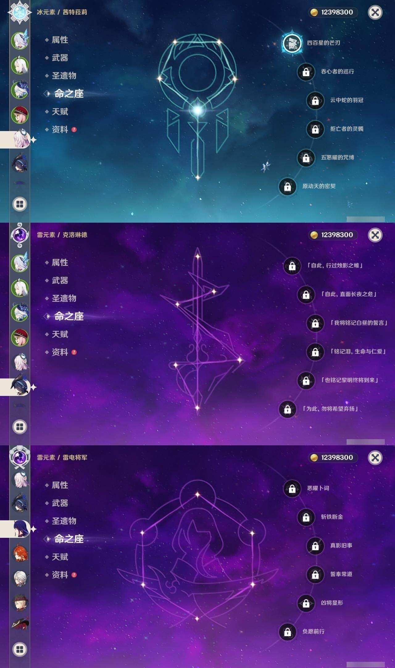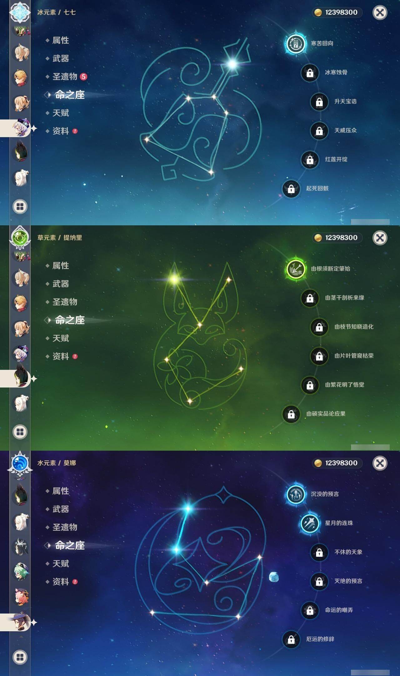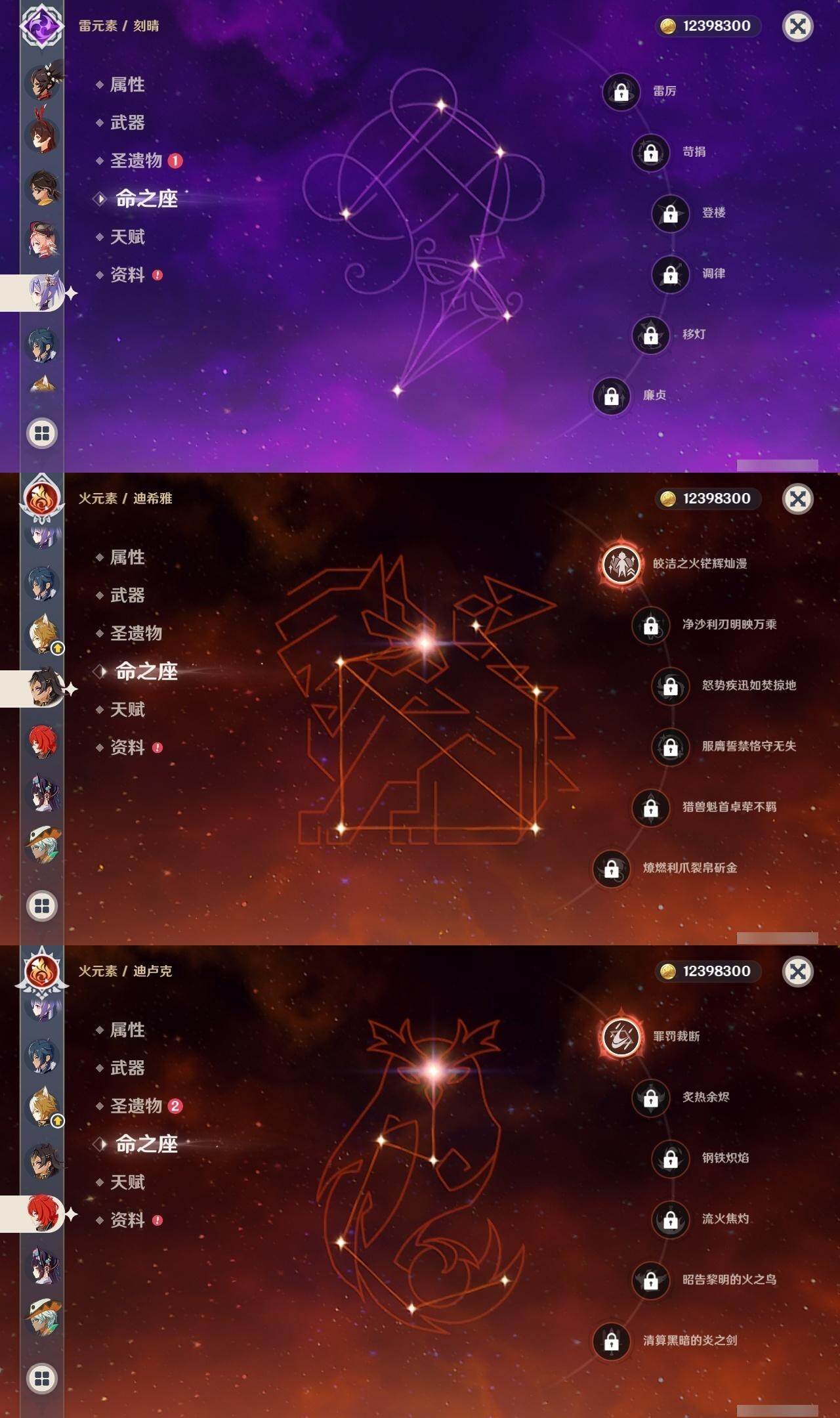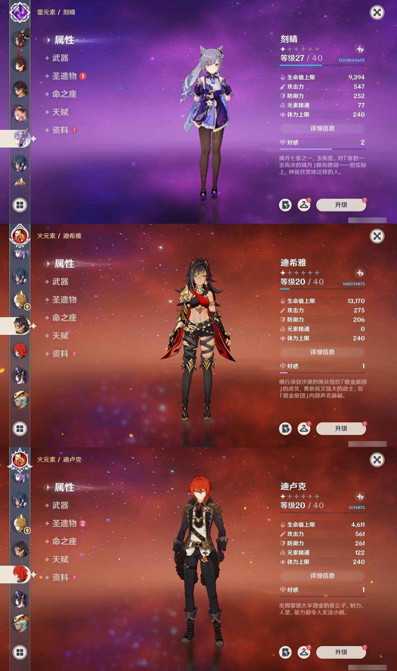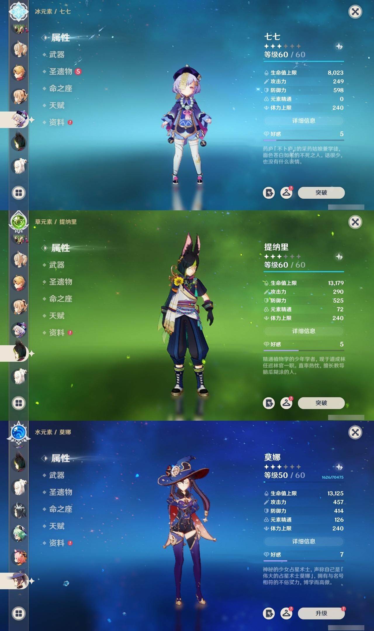 【一命角色】 1命七七 1命提纳里 1命迪希雅 1命迪卢克