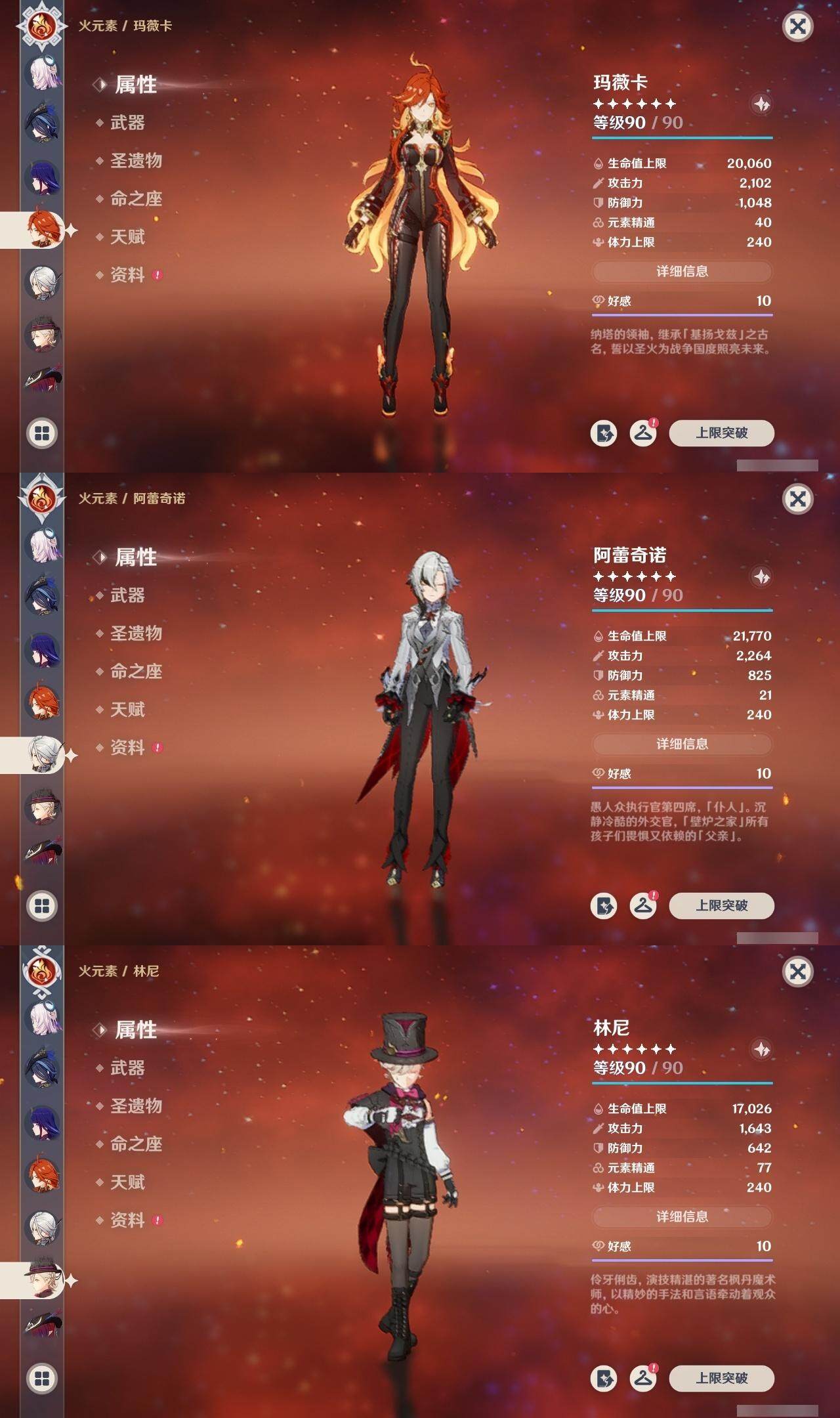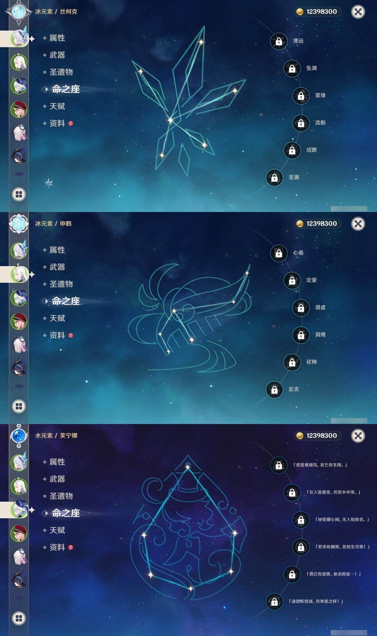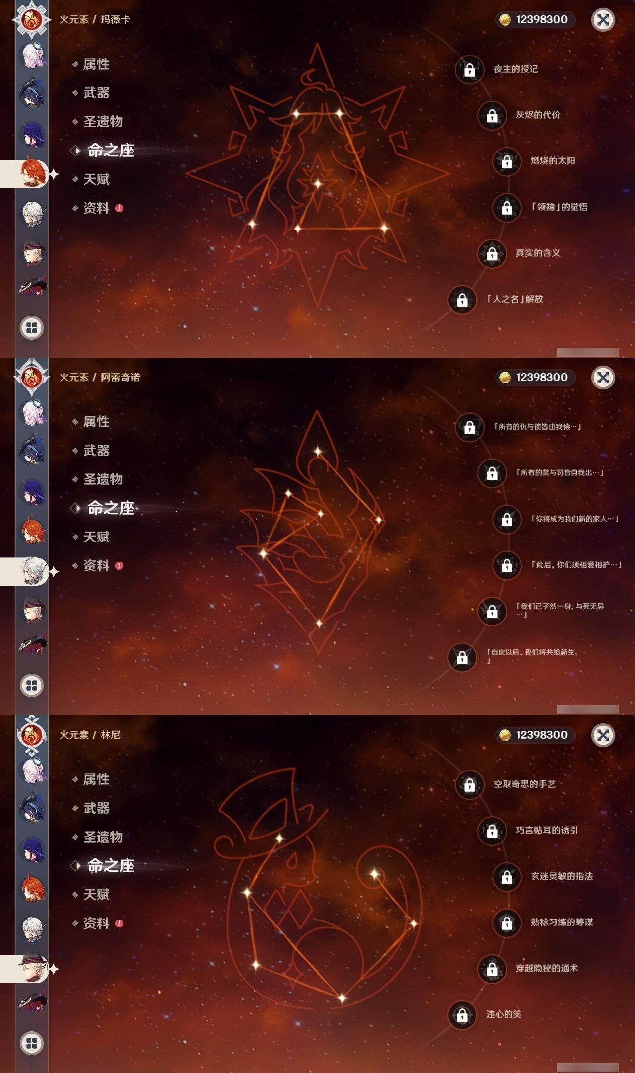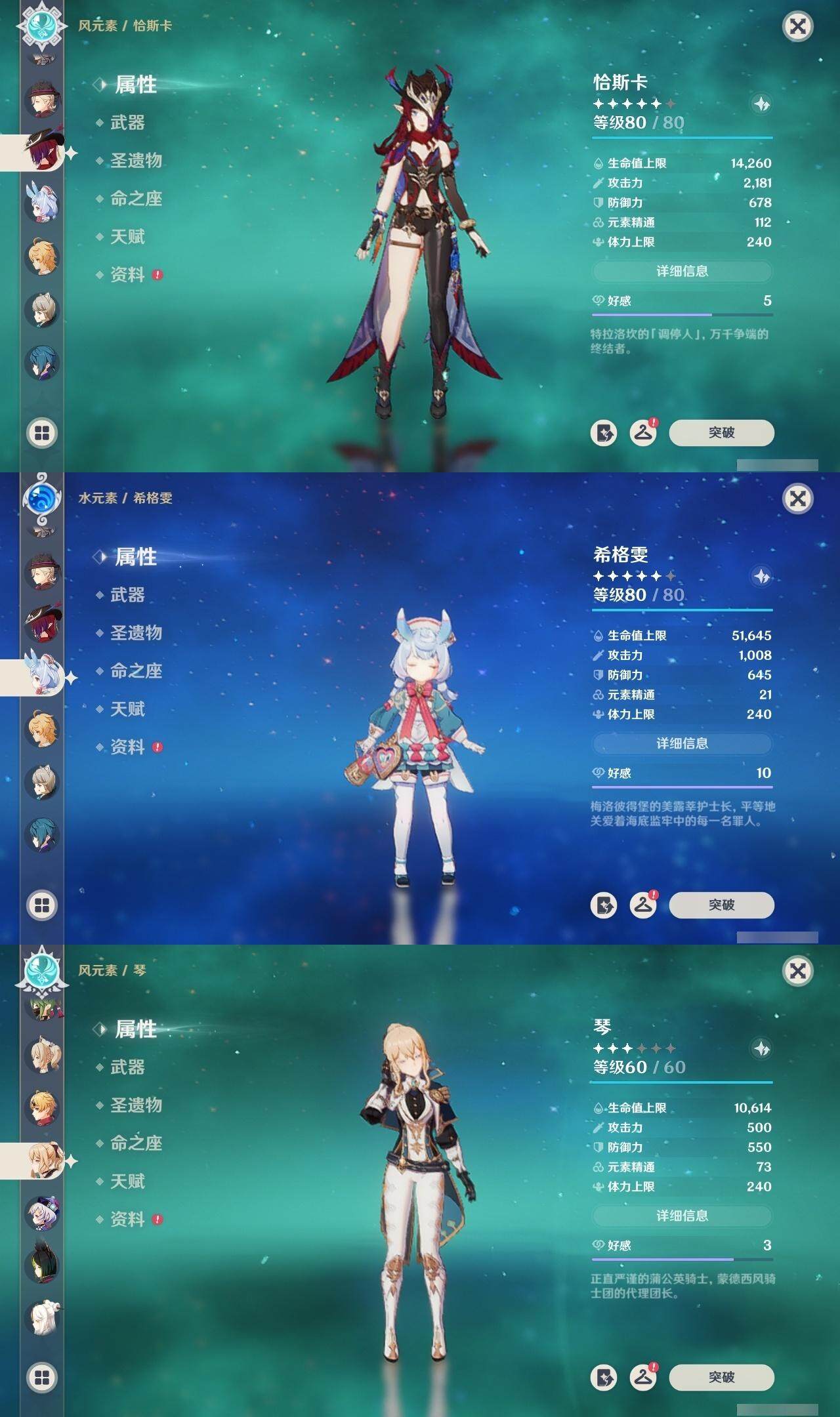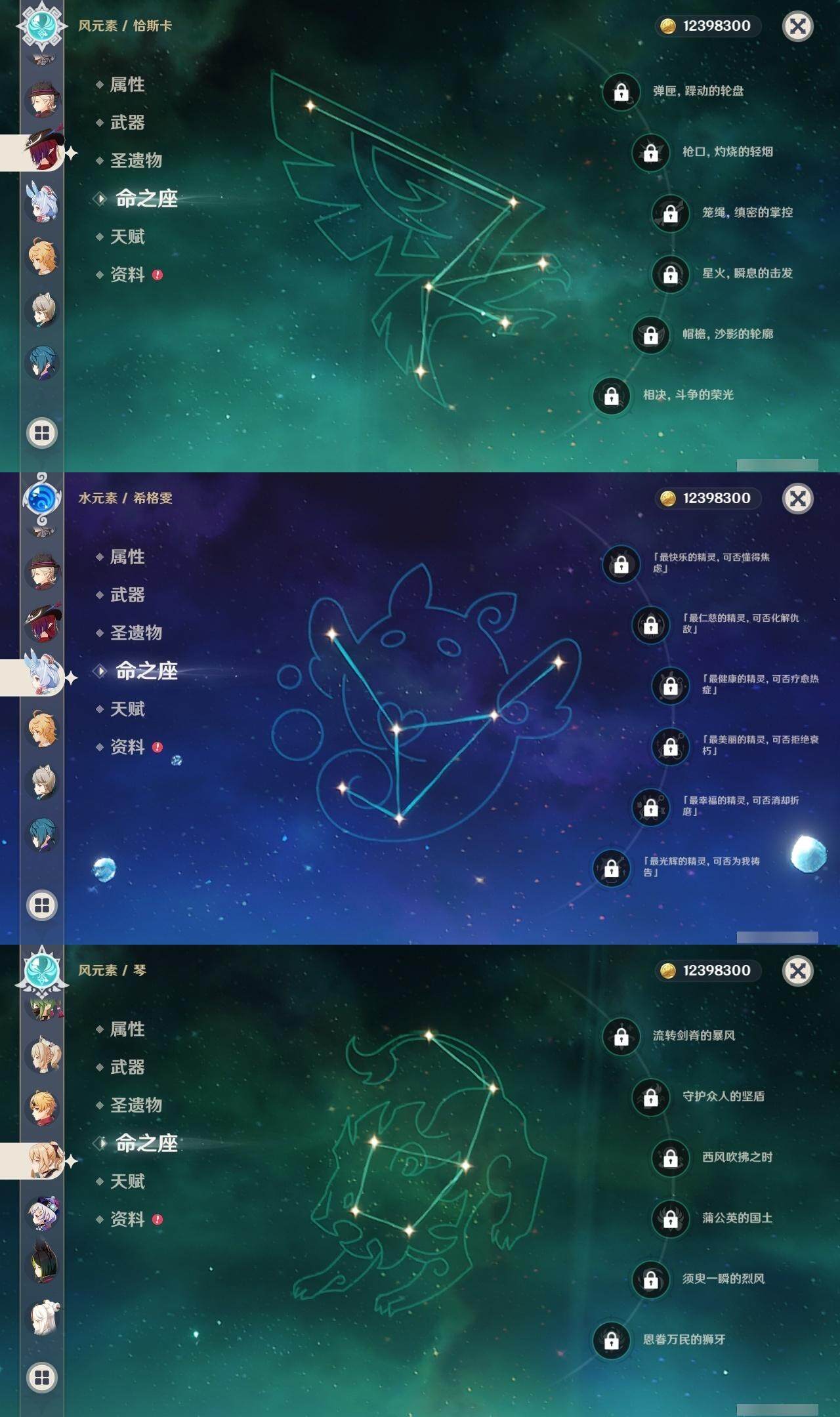【一命角色】 1命七七 1命提纳里 1命迪希雅 1命迪卢克