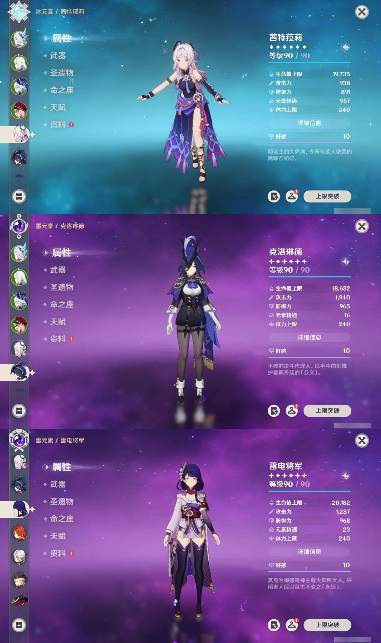 【角色】 申鹤 雷电将军 琴 七七 提纳里 莫娜 刻晴 迪希雅 迪卢克