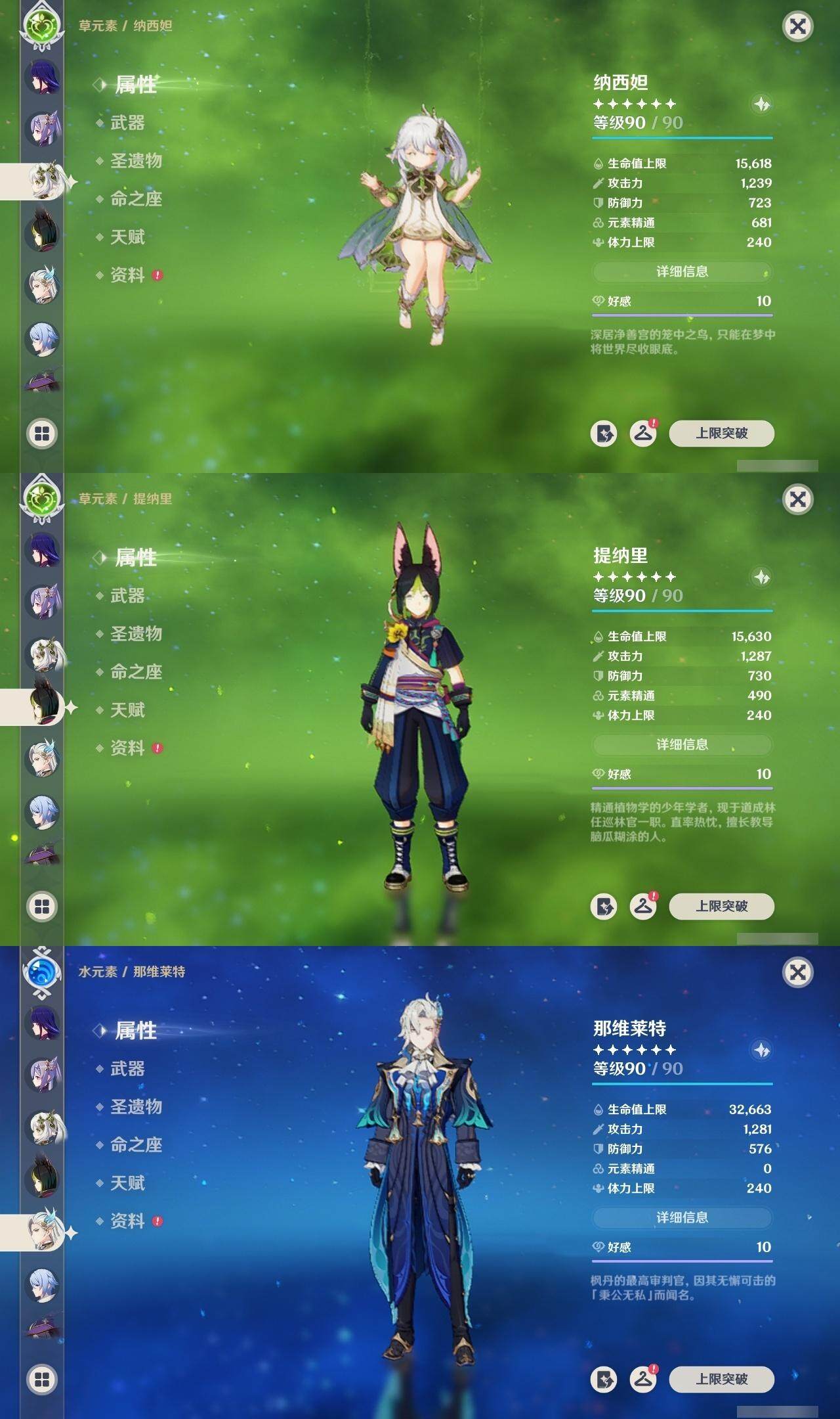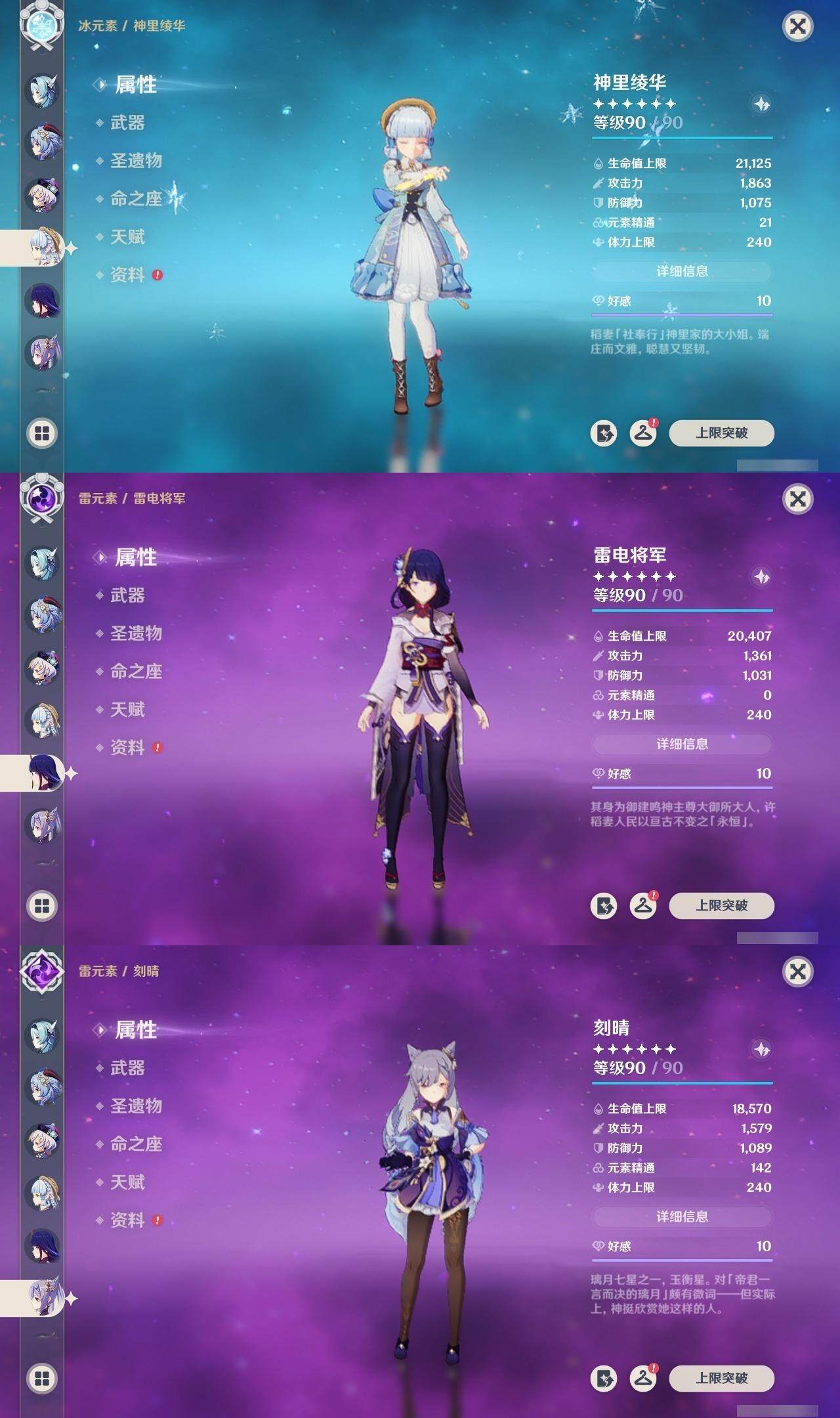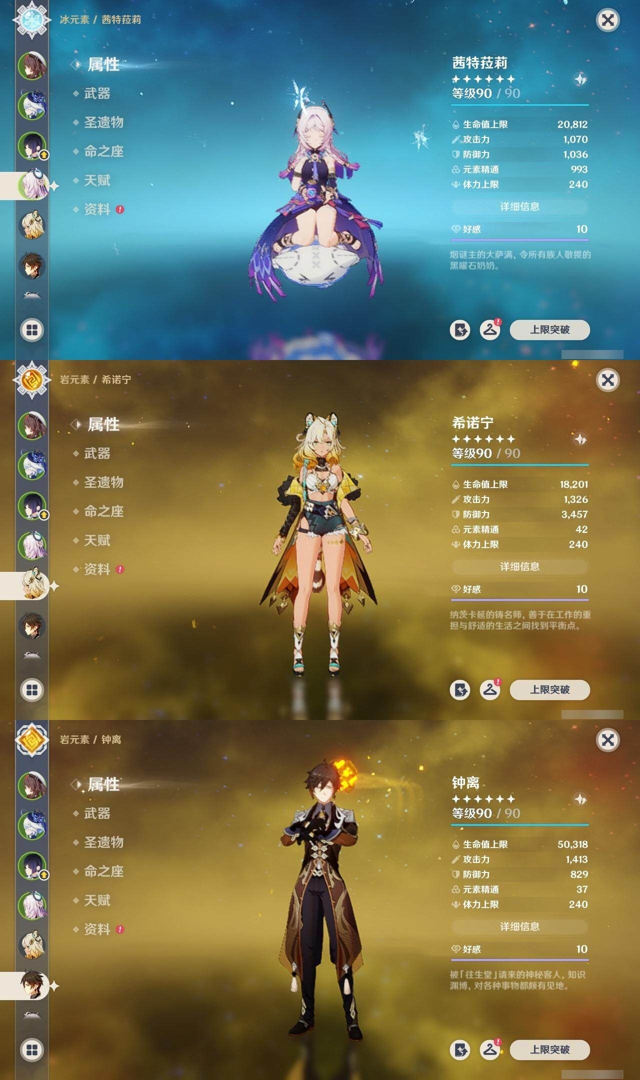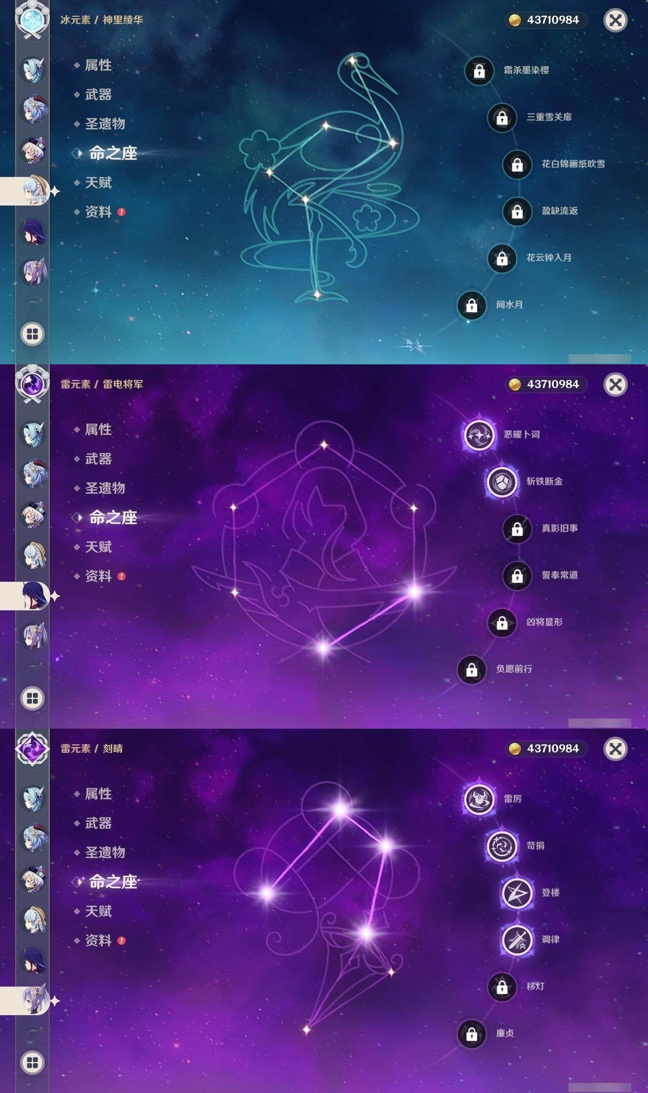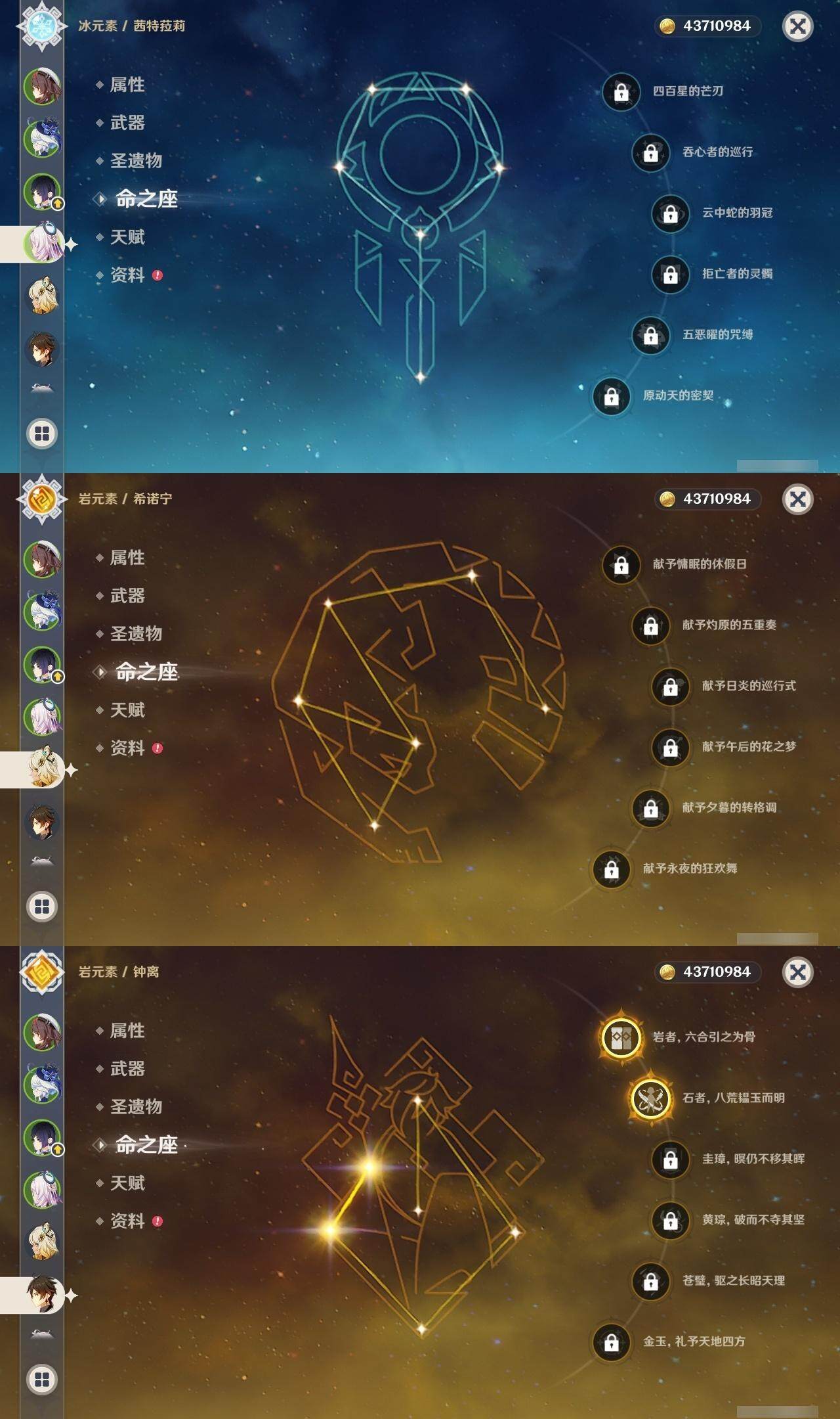 【二命角色】 2命钟离 2命雷电将军 2命纳西妲