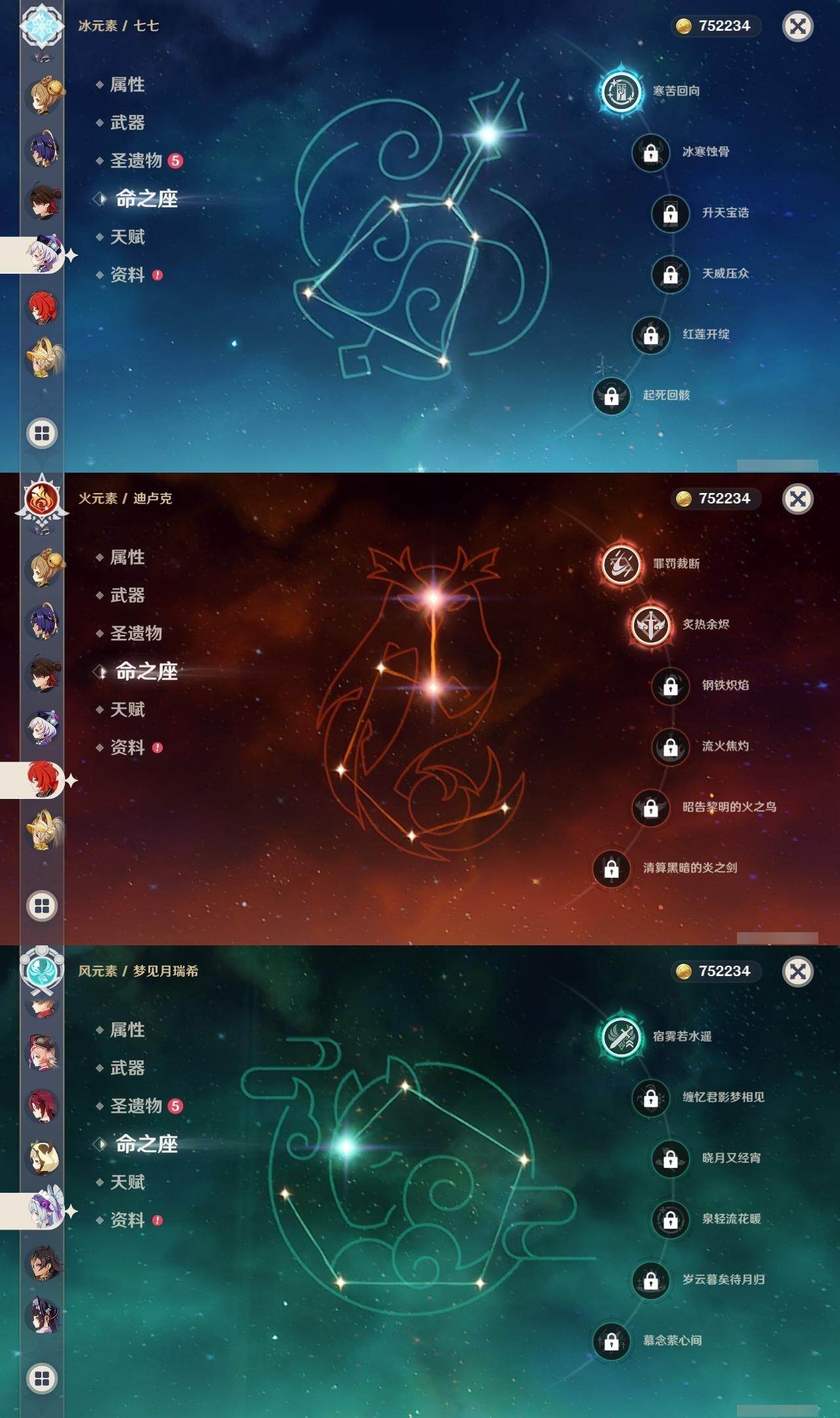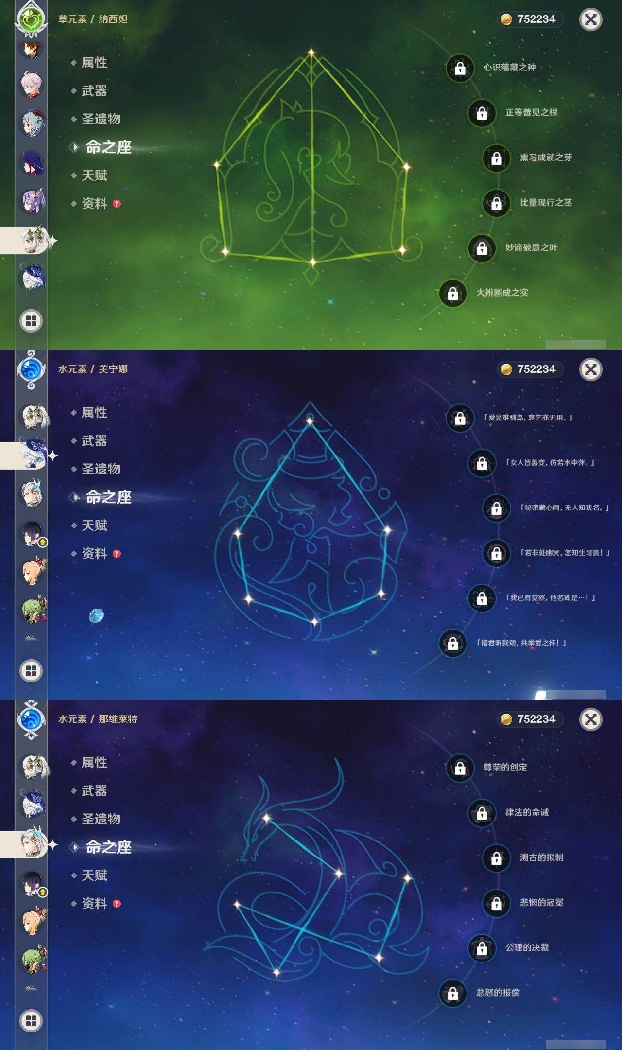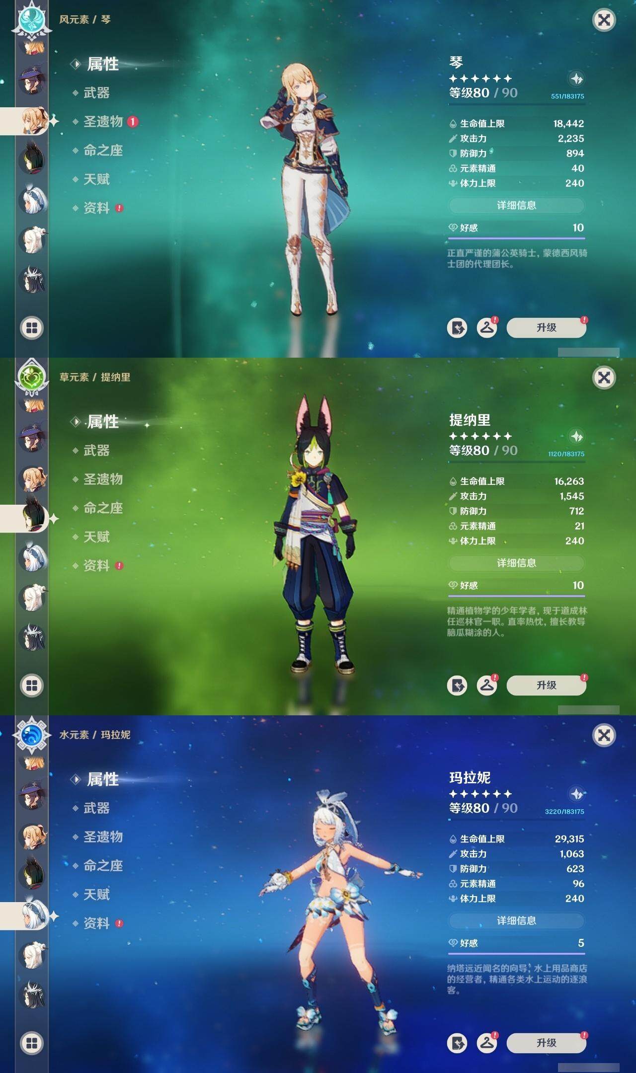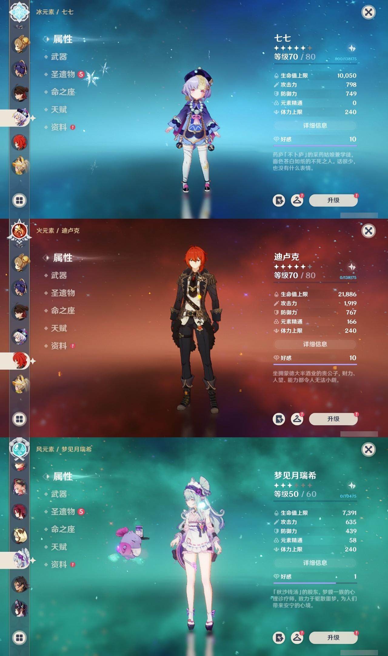 【一命角色】 1命刻晴 1命流浪者 1命莫娜 1命琴 1命提纳里 1命七七