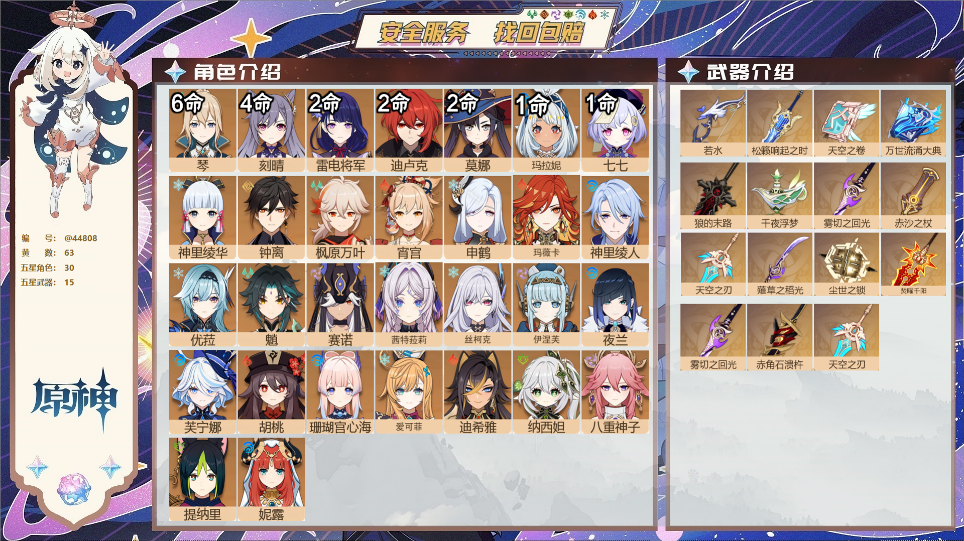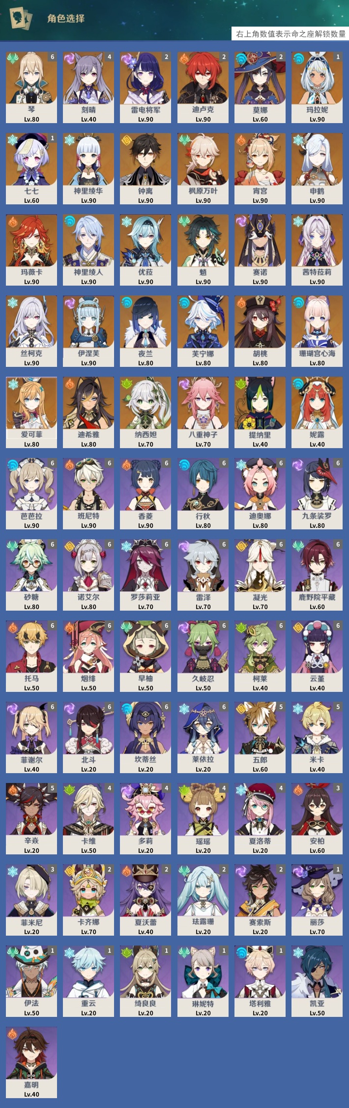 【30个五星角色】,满命琴,4命刻晴,2命雷电将军,2命迪卢克,2命莫娜,1命玛拉妮,1命七七,0命神里绫华,0命钟离,0命枫原万叶,0命宵宫,0命申鹤,0命玛薇卡,0命神里绫人,0命优菈,0命魈,0命赛诺,0命茜特菈莉,0命丝柯克,0命伊涅芙,0命夜兰,0命芙宁娜,0命胡桃,0命珊瑚宫心海,0命爱可菲,0命迪希雅,0命纳西妲,0命八重神子,0命提纳里,0命妮露,