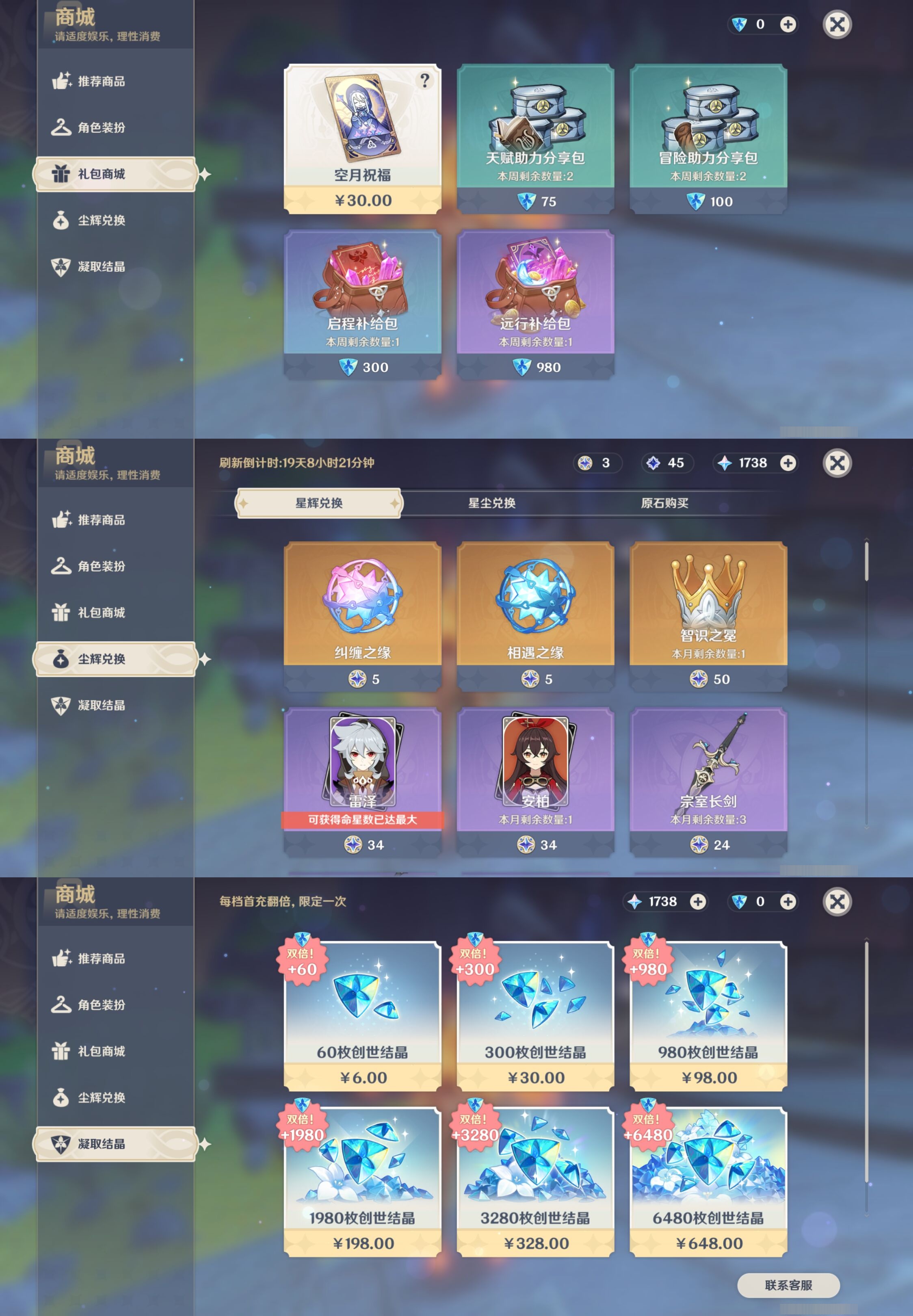 PX_2208825- 未绑定邮箱 送TAP 冒险等级60级 女主 63黄 30个五星角色 15个五星武器 纠缠之源0--原石1738--圣遗物360--【时装】,叶隐芳名,极夜真梦,炽绘奇旅,