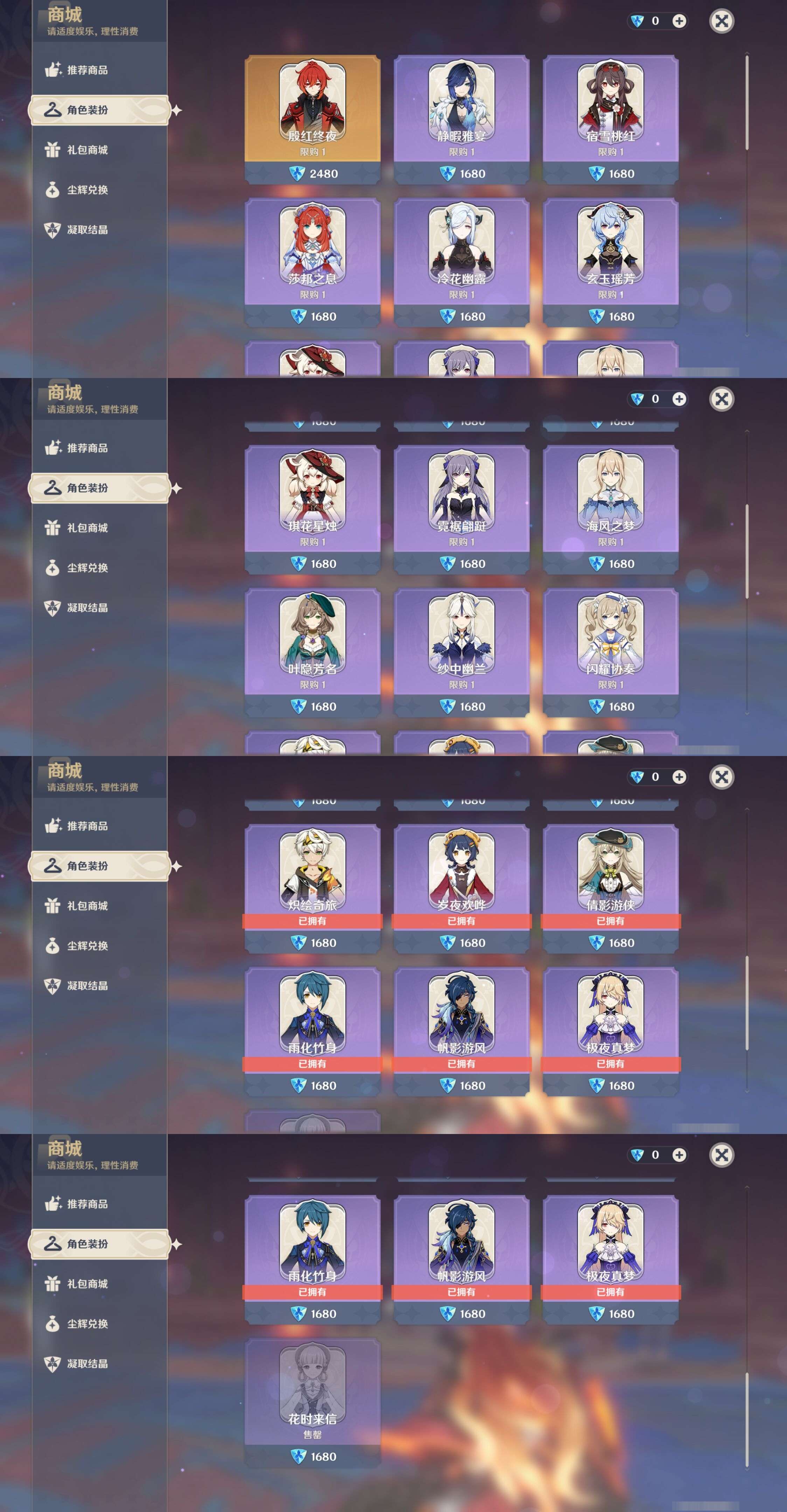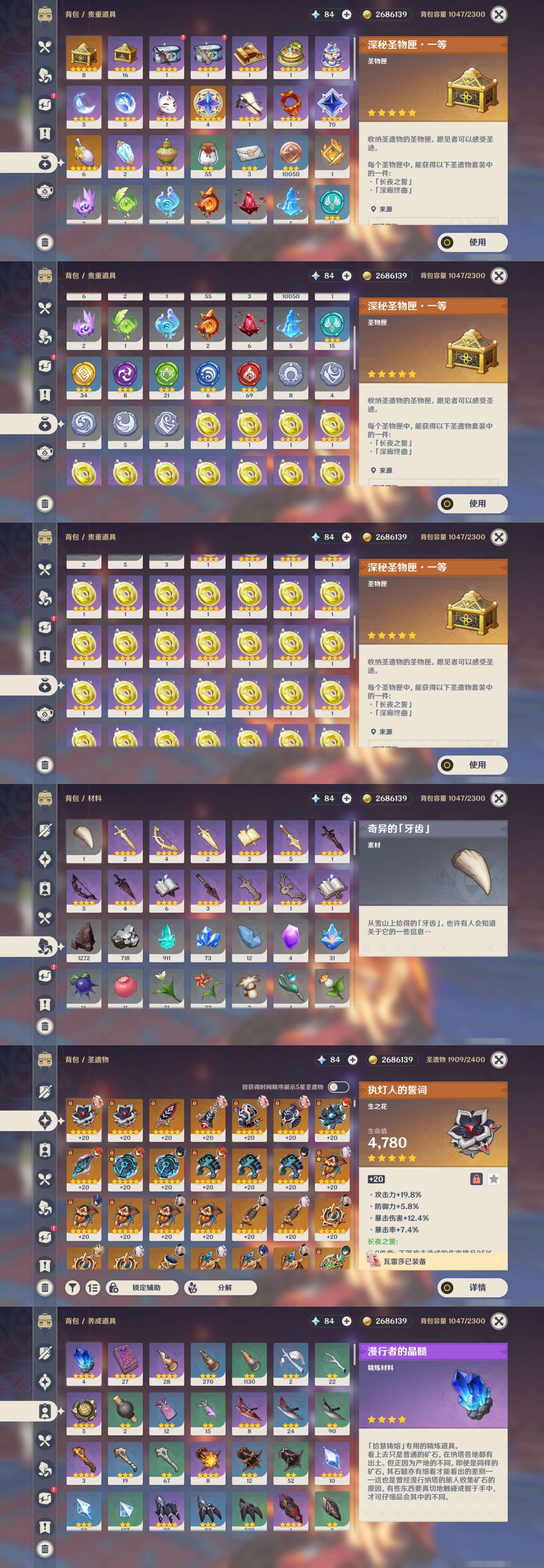 PX_2210268- 未绑定邮箱 冒险等级60级 女主 60黄 29个五星角色 11个五星武器 纠缠之源0--原石84--圣遗物1909--【时装】,帆影游风,极夜真梦,雨化竹身,花时来信,岁夜欢哗,倩影游侠,炽绘奇旅,