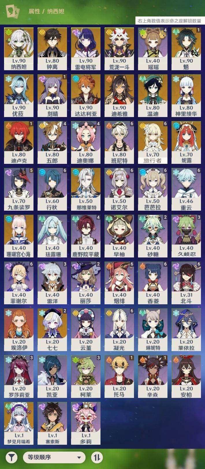 [12851811]57级/31黄/女主/17个五星角色/8个五星武器