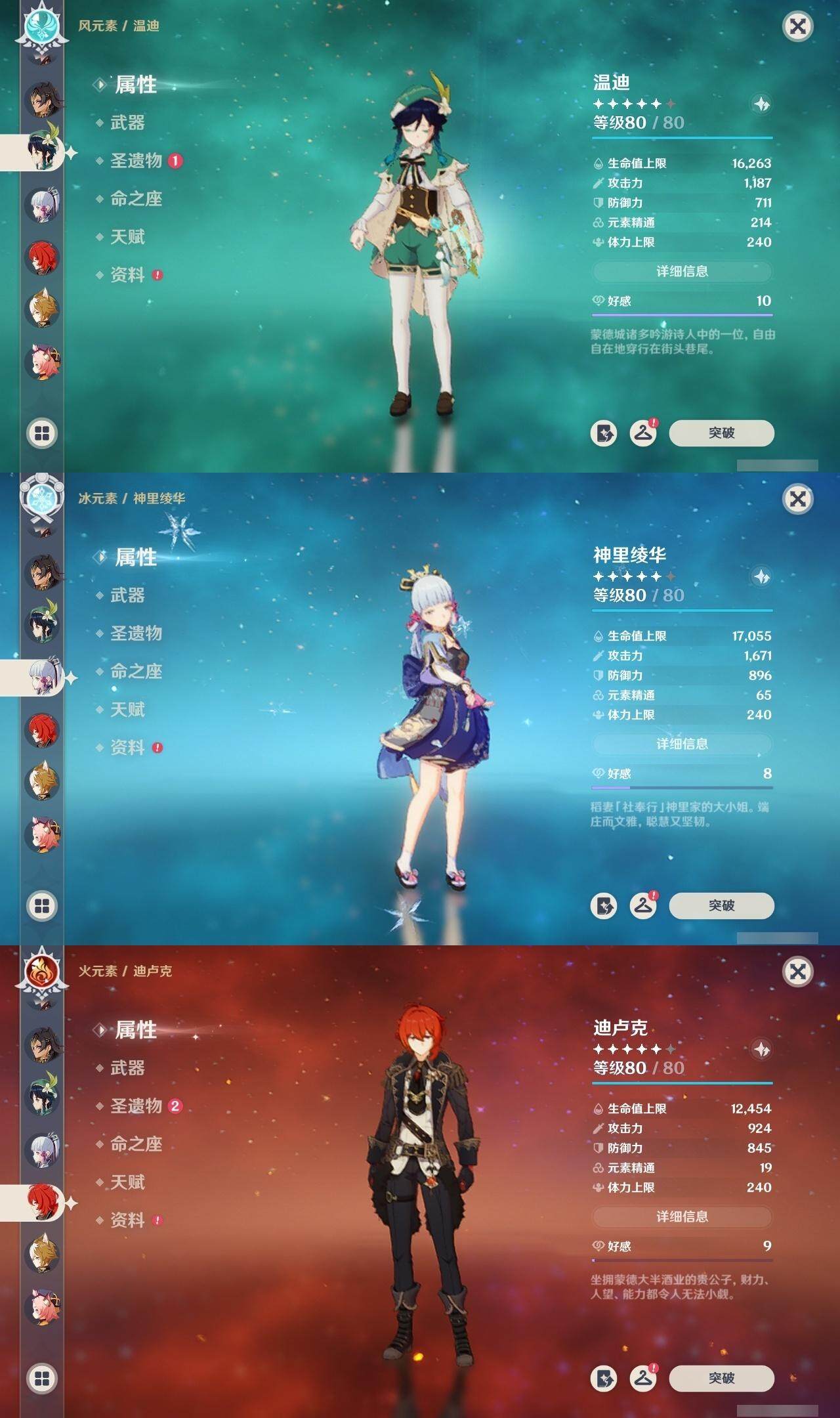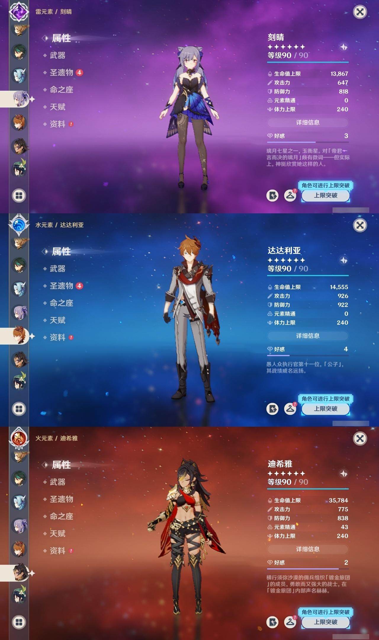 【一命角色】 1命魈 1命刻晴 1命迪卢克