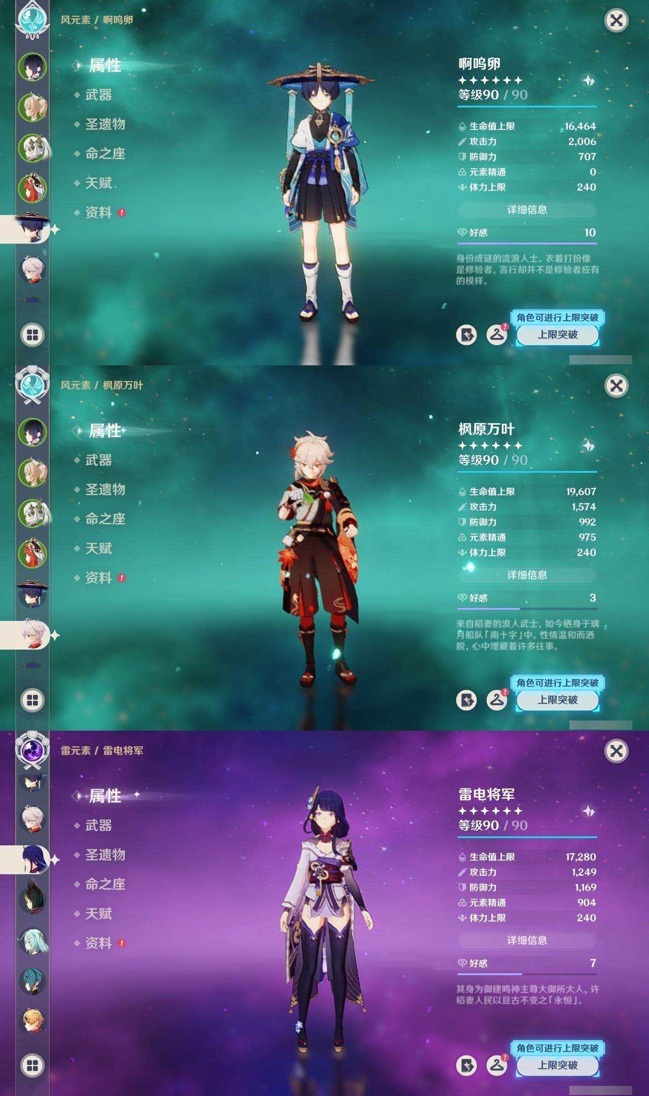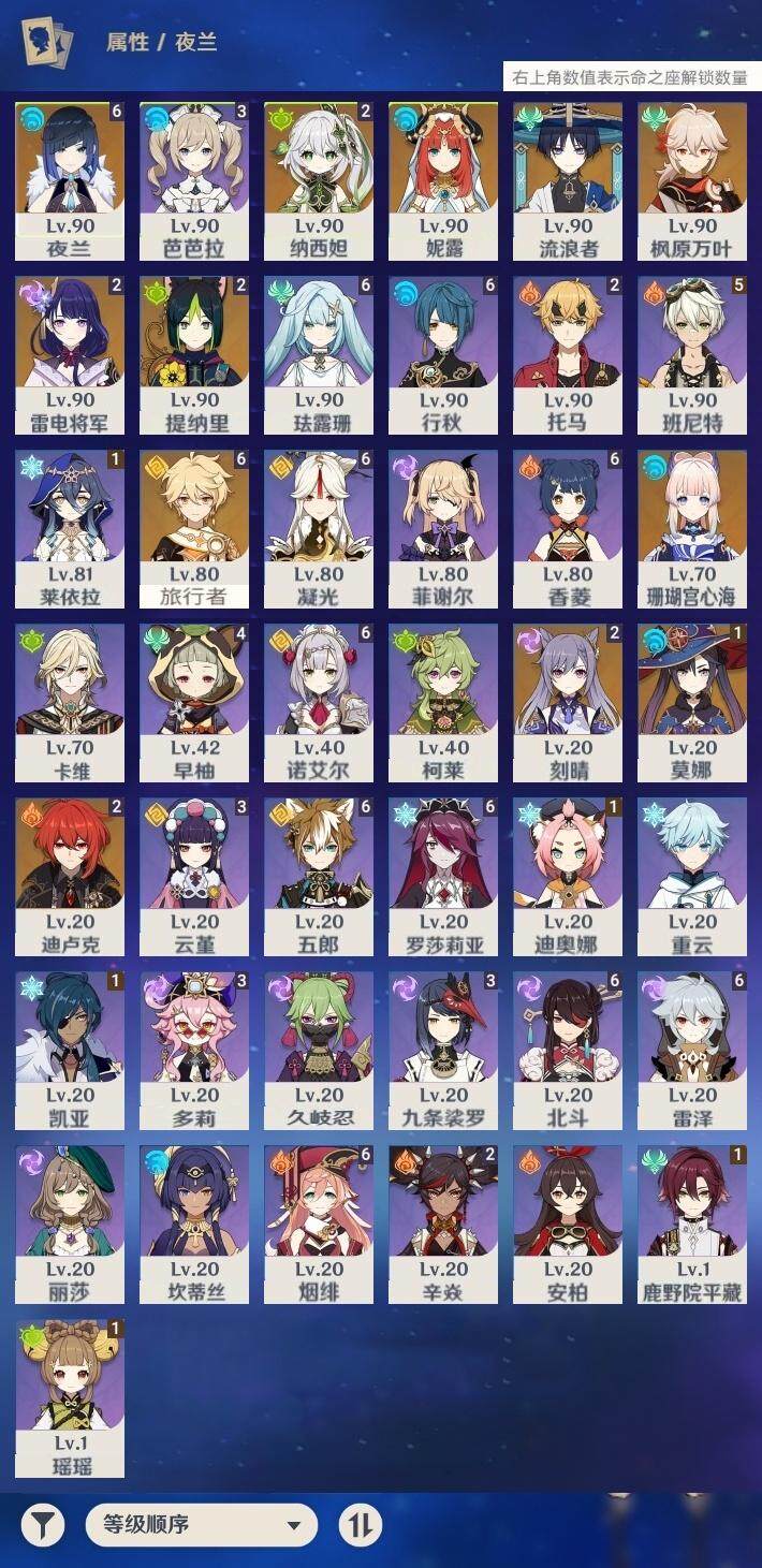 [12852593]57级/37黄/男主/11个五星角色/9个五星武器