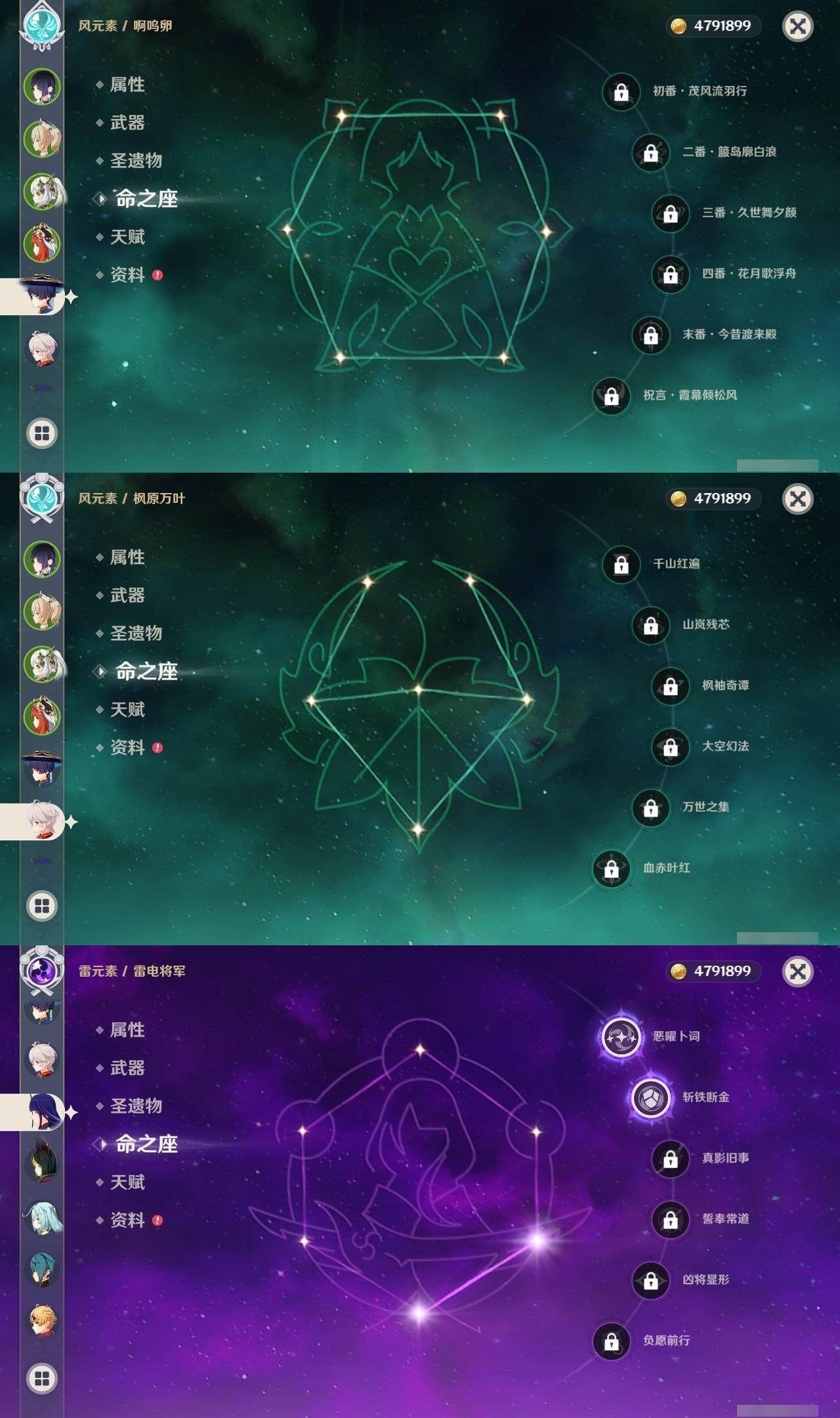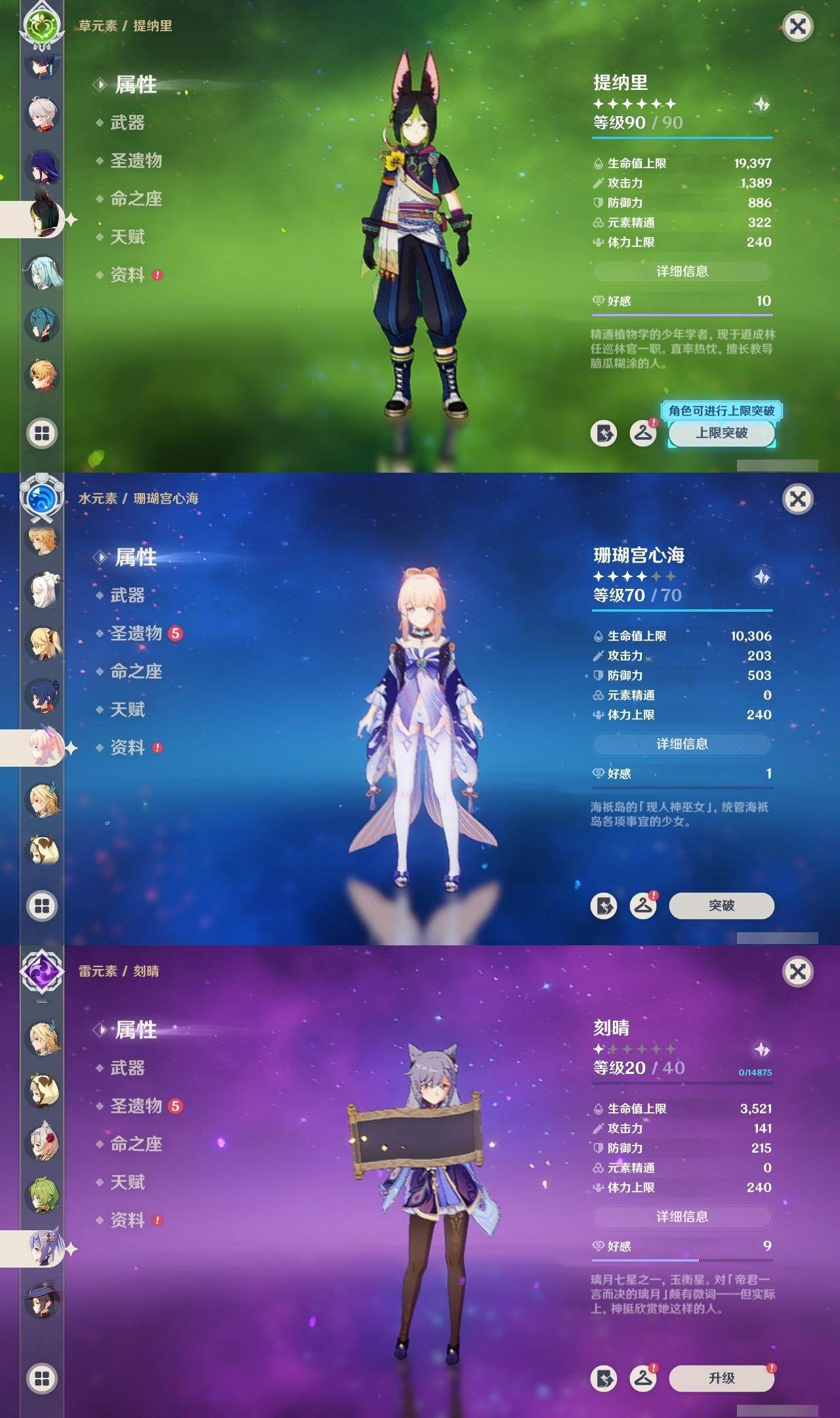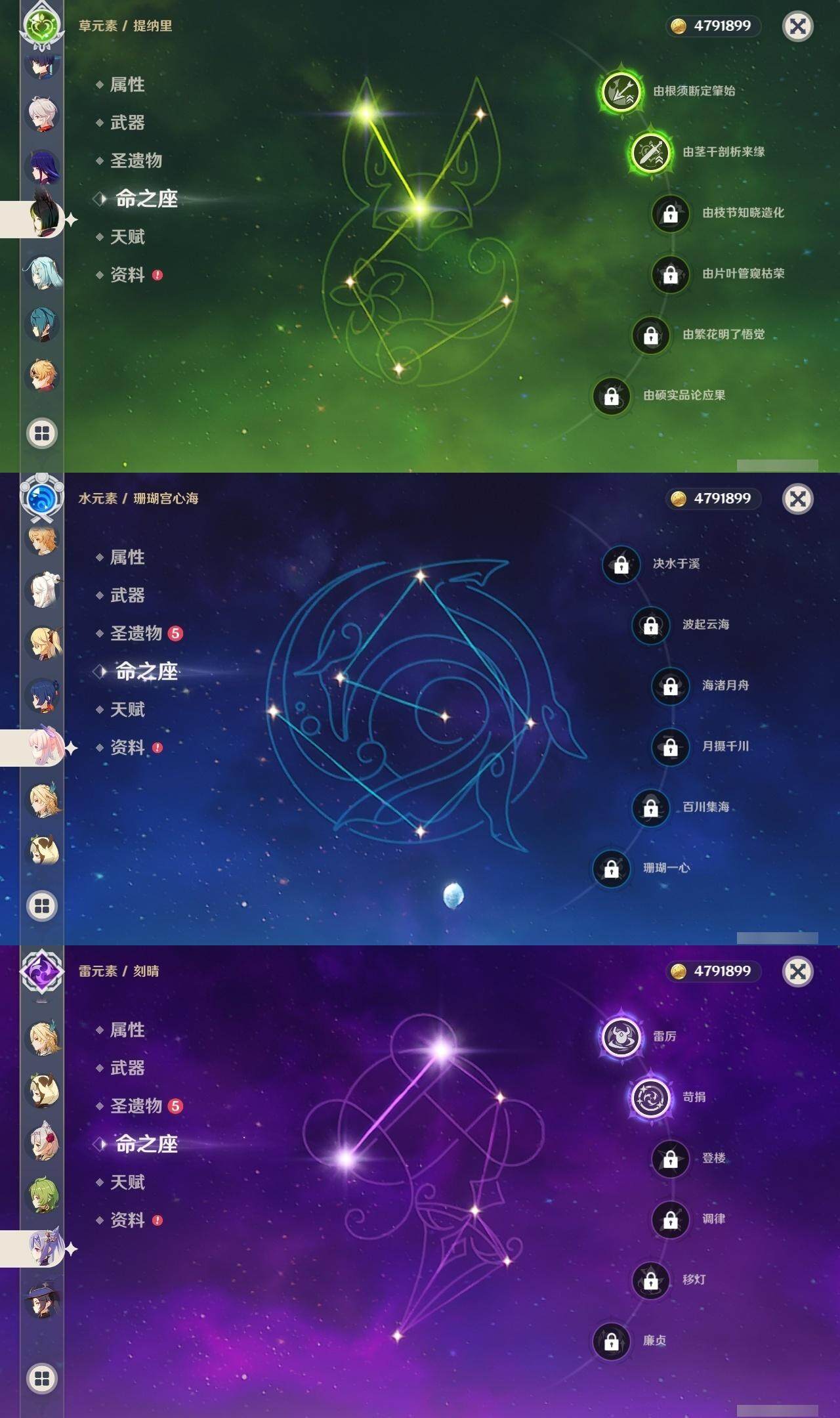 【二命角色】 2命纳西妲 2命雷电将军 2命提纳里 2命刻晴 2命迪卢克