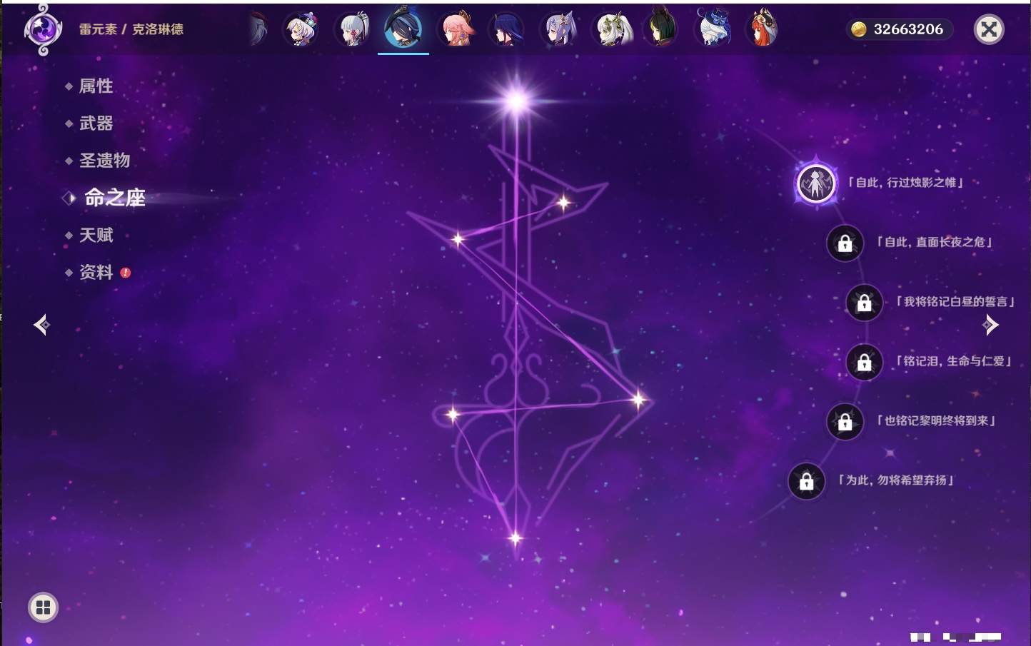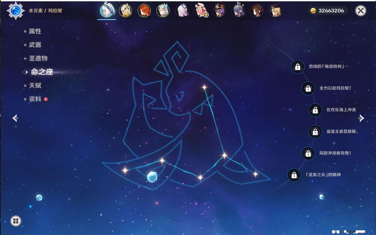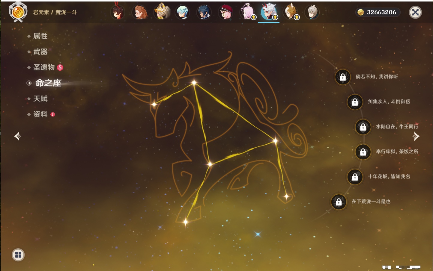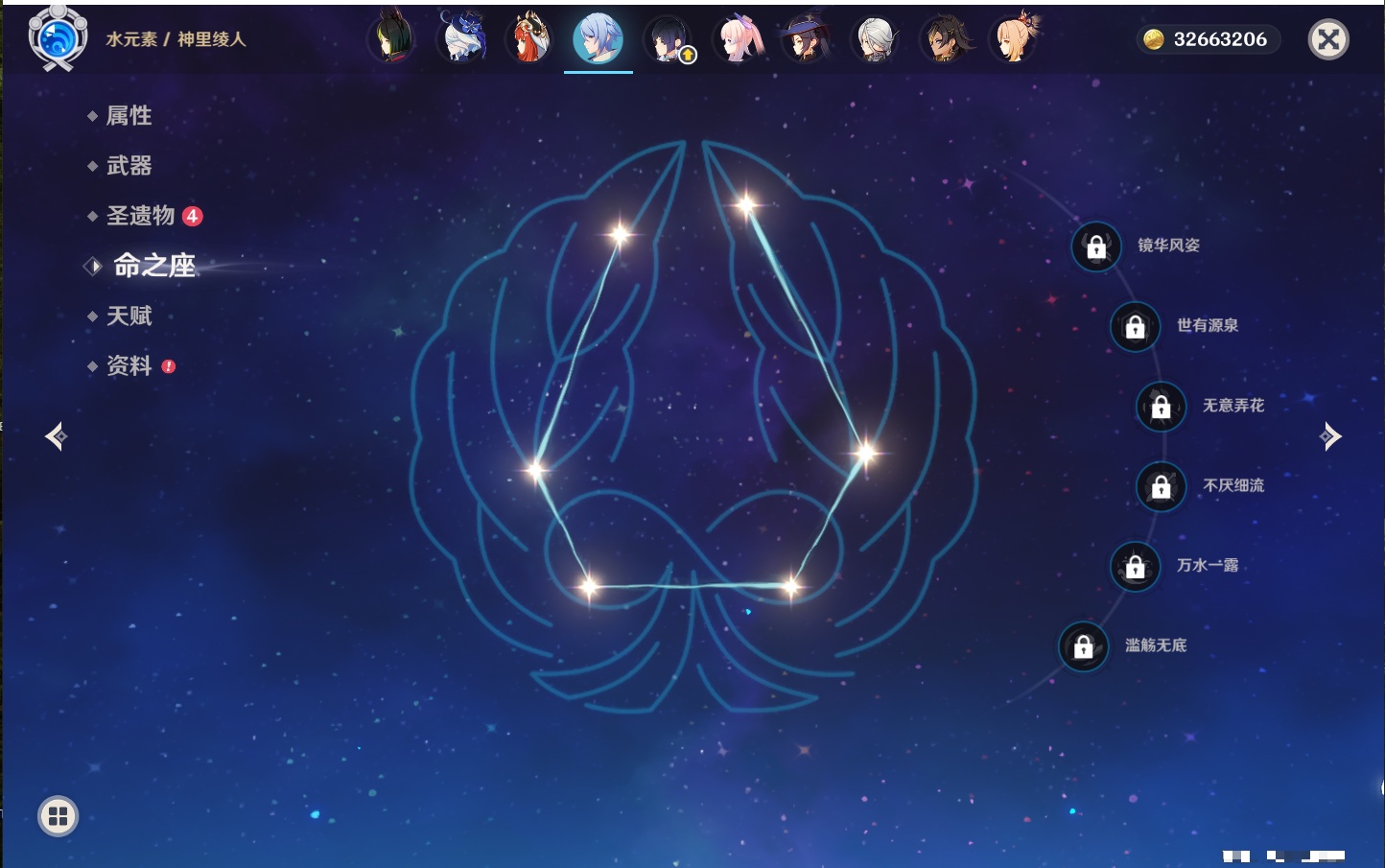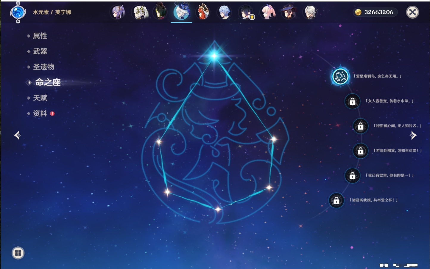 【38个五星角色】,满命莫娜,5命迪卢克,4命刻晴,4命七七,3命迪希雅,3命提纳里,2命雷电将军,2命胡桃,2命希诺宁,1命克洛琳德,1命阿蕾奇诺,1命芙宁娜,1命那维莱特,1命优菈,1命神里绫华,0命千织,0命闲云,0命纳西妲,0命妮露,0命夜兰,0命神里绫人,0命八重神子,0命申鹤,0命荒泷一斗,0命枫原万叶,0命钟离,0命甘雨,0命魈,0命宵宫,0命珊瑚宫心海,0命琴,0命玛拉妮,0命玛薇卡,0命茜特菈莉,0命瓦雷莎,0命菈乌玛,0命娜维娅,0命恰斯卡,