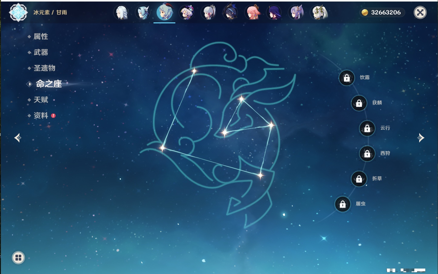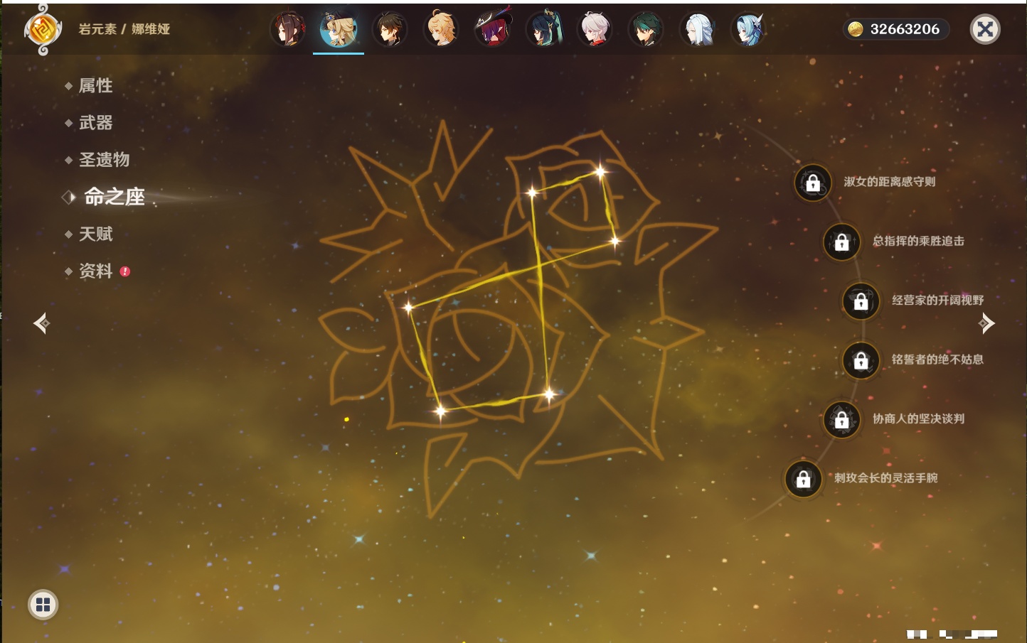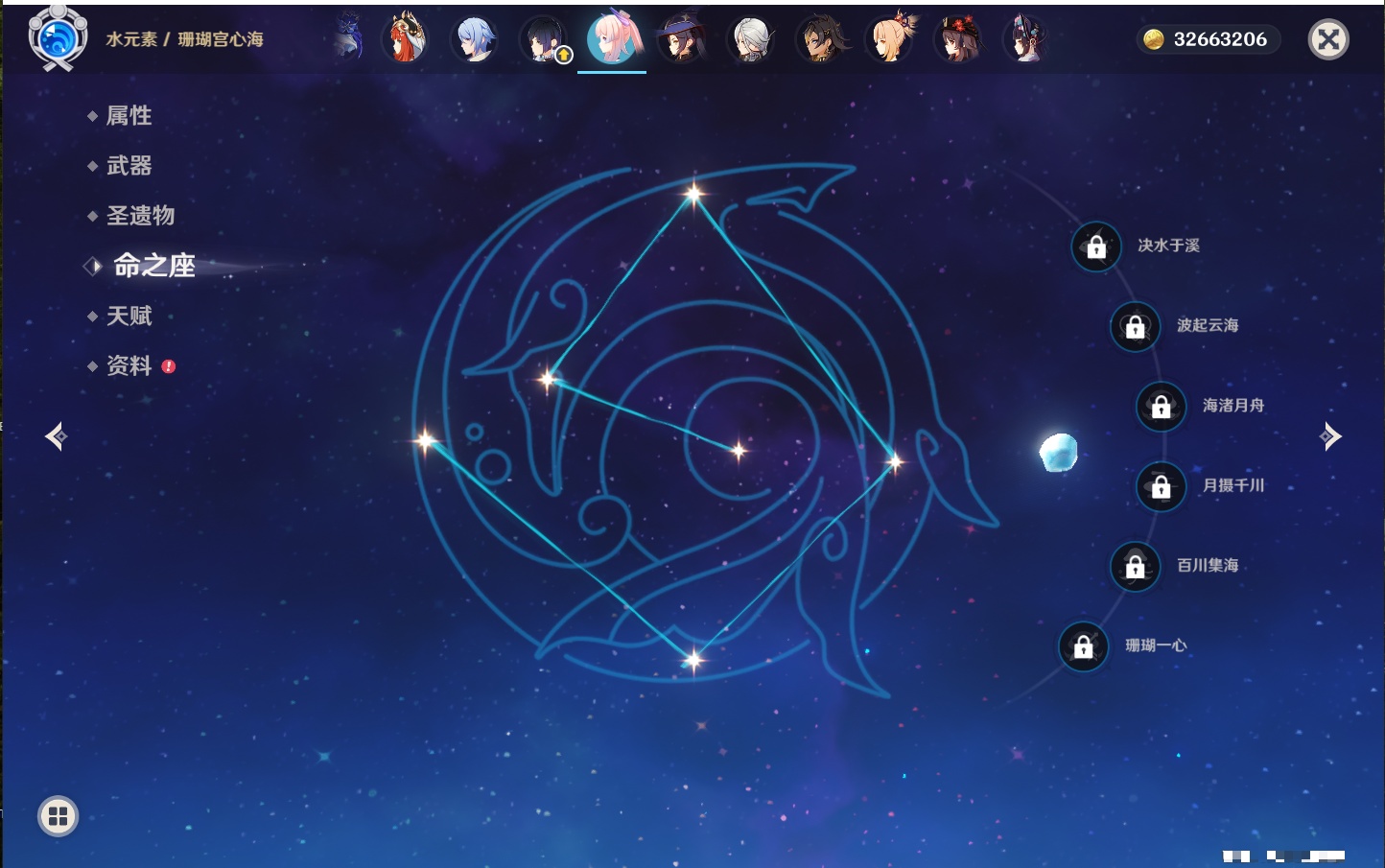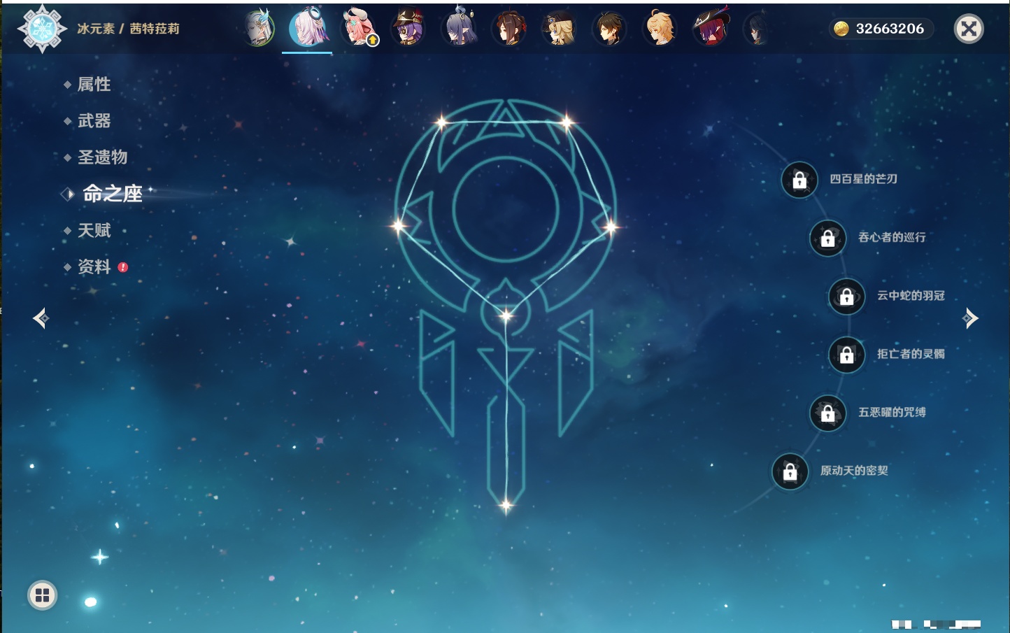 【38个五星角色】,满命莫娜,5命迪卢克,4命刻晴,4命七七,3命迪希雅,3命提纳里,2命雷电将军,2命胡桃,2命希诺宁,1命克洛琳德,1命阿蕾奇诺,1命芙宁娜,1命那维莱特,1命优菈,1命神里绫华,0命千织,0命闲云,0命纳西妲,0命妮露,0命夜兰,0命神里绫人,0命八重神子,0命申鹤,0命荒泷一斗,0命枫原万叶,0命钟离,0命甘雨,0命魈,0命宵宫,0命珊瑚宫心海,0命琴,0命玛拉妮,0命玛薇卡,0命茜特菈莉,0命瓦雷莎,0命菈乌玛,0命娜维娅,0命恰斯卡,