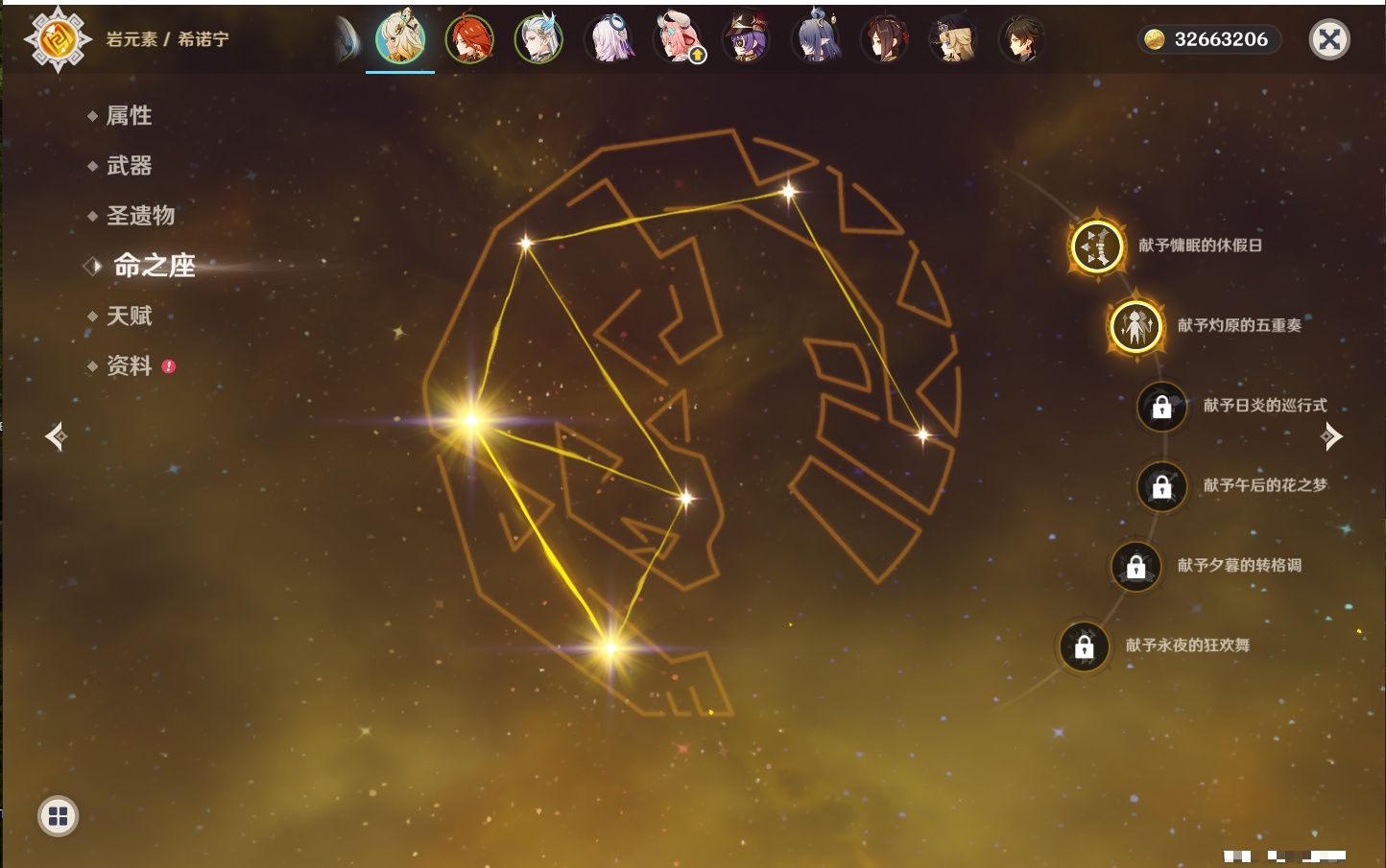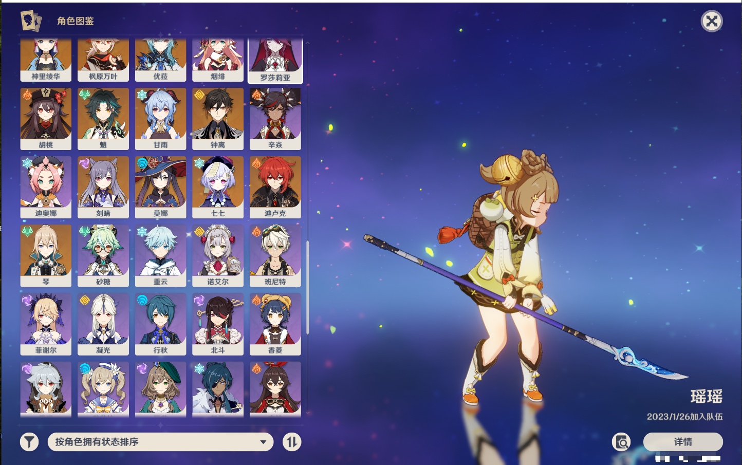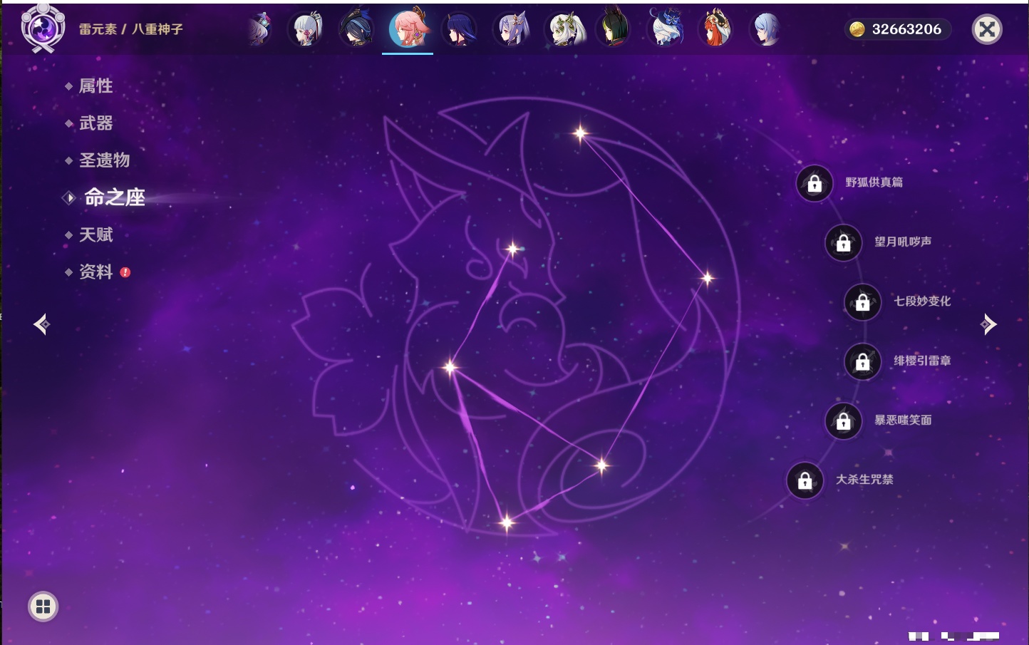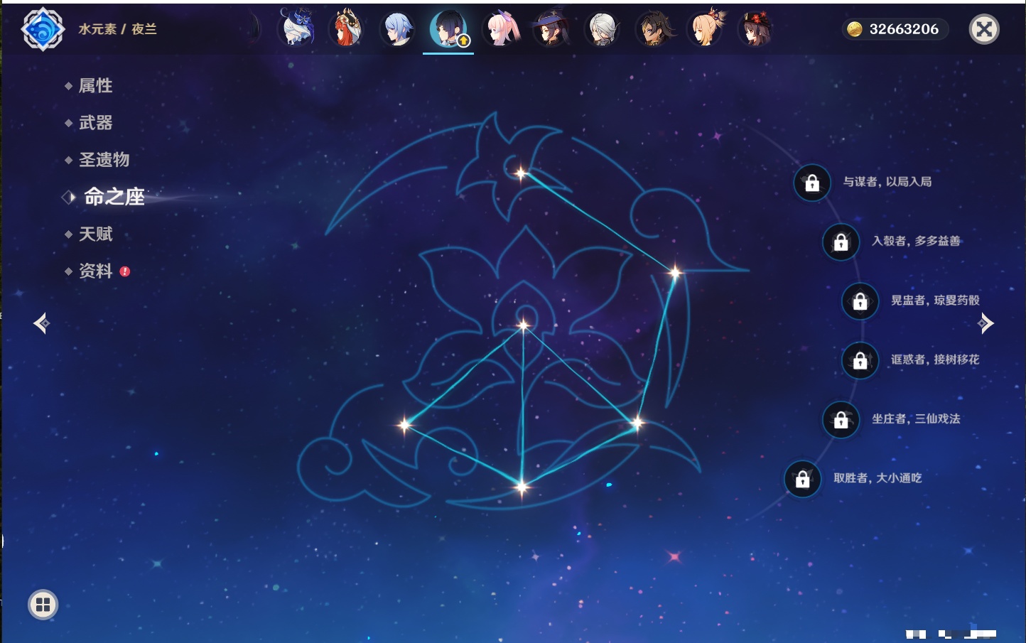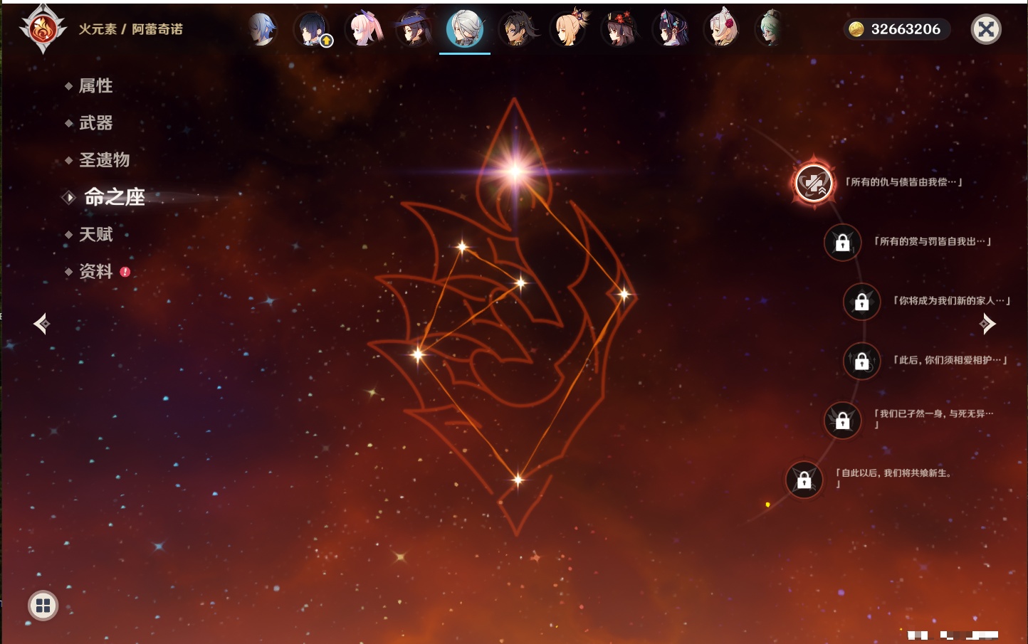 【38个五星角色】,满命莫娜,5命迪卢克,4命刻晴,4命七七,3命迪希雅,3命提纳里,2命雷电将军,2命胡桃,2命希诺宁,1命克洛琳德,1命阿蕾奇诺,1命芙宁娜,1命那维莱特,1命优菈,1命神里绫华,0命千织,0命闲云,0命纳西妲,0命妮露,0命夜兰,0命神里绫人,0命八重神子,0命申鹤,0命荒泷一斗,0命枫原万叶,0命钟离,0命甘雨,0命魈,0命宵宫,0命珊瑚宫心海,0命琴,0命玛拉妮,0命玛薇卡,0命茜特菈莉,0命瓦雷莎,0命菈乌玛,0命娜维娅,0命恰斯卡,