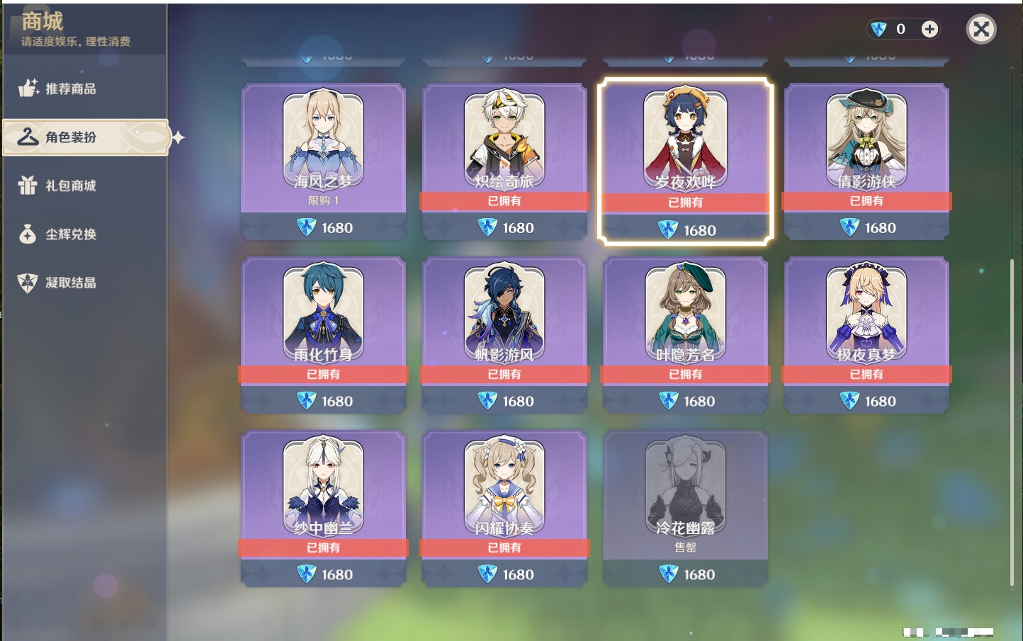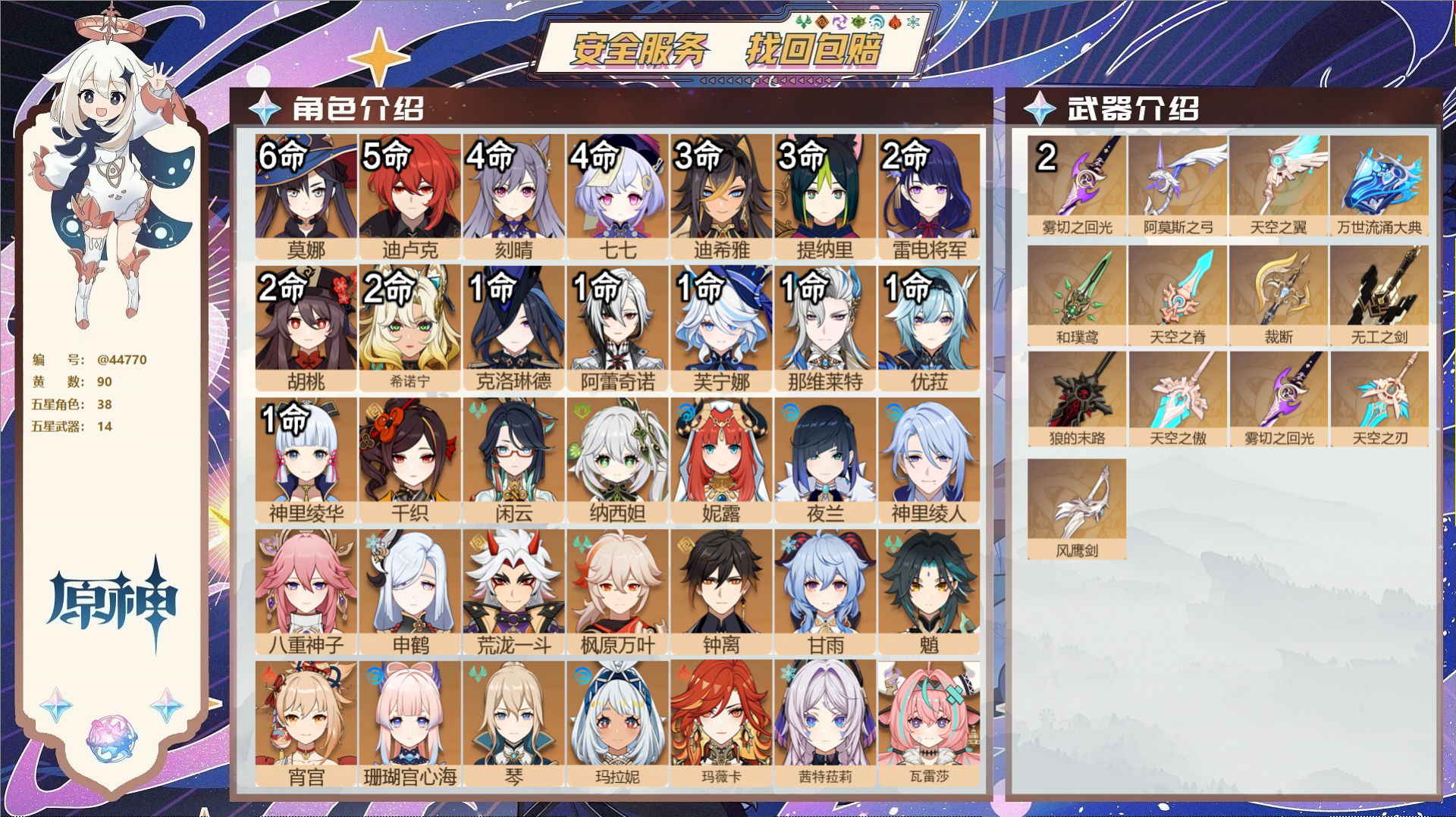PX_2208851- 送未实名邮箱  冒险等级60级 男主 90黄 38个五星角色 14个五星武器 纠缠之源0--原石12--圣遗物1454--【时装】,炽绘奇旅,岁夜欢哗,倩影游侠,帆影游风,叶隐芳名,雨化竹身,极夜真梦,纱中幽兰,闪耀协奏,