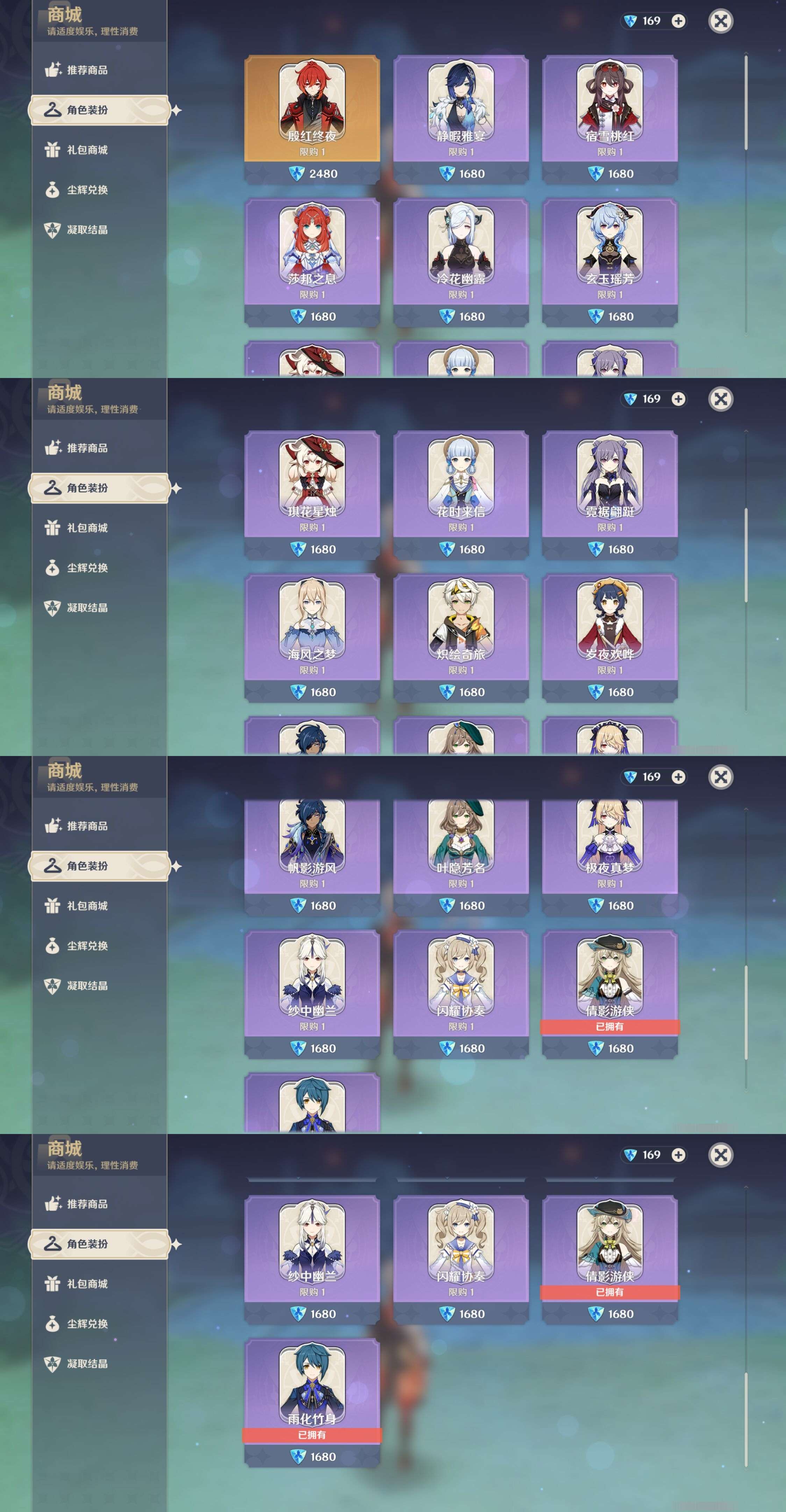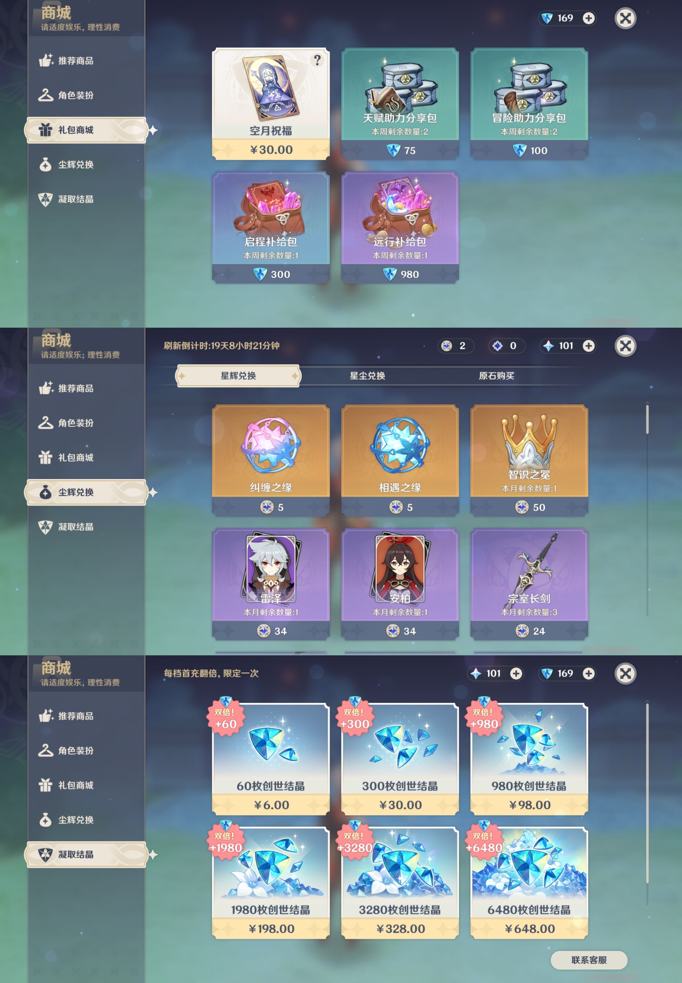PX_2208834- 未绑定邮箱 冒险等级58级 男主 34黄 21个五星角色 4个五星武器 纠缠之源0--原石101--圣遗物178--【时装】,倩影游侠,雨化竹身,