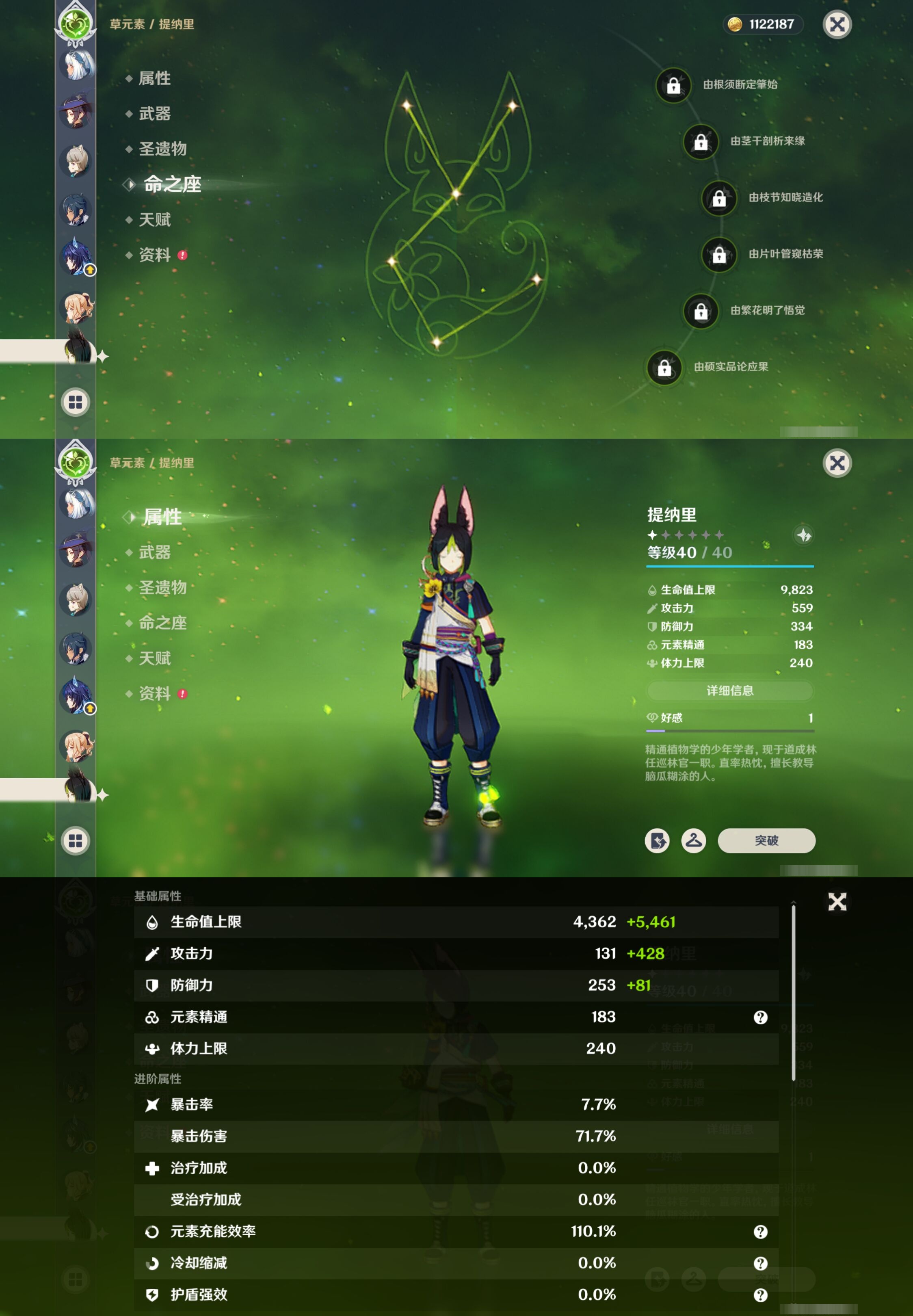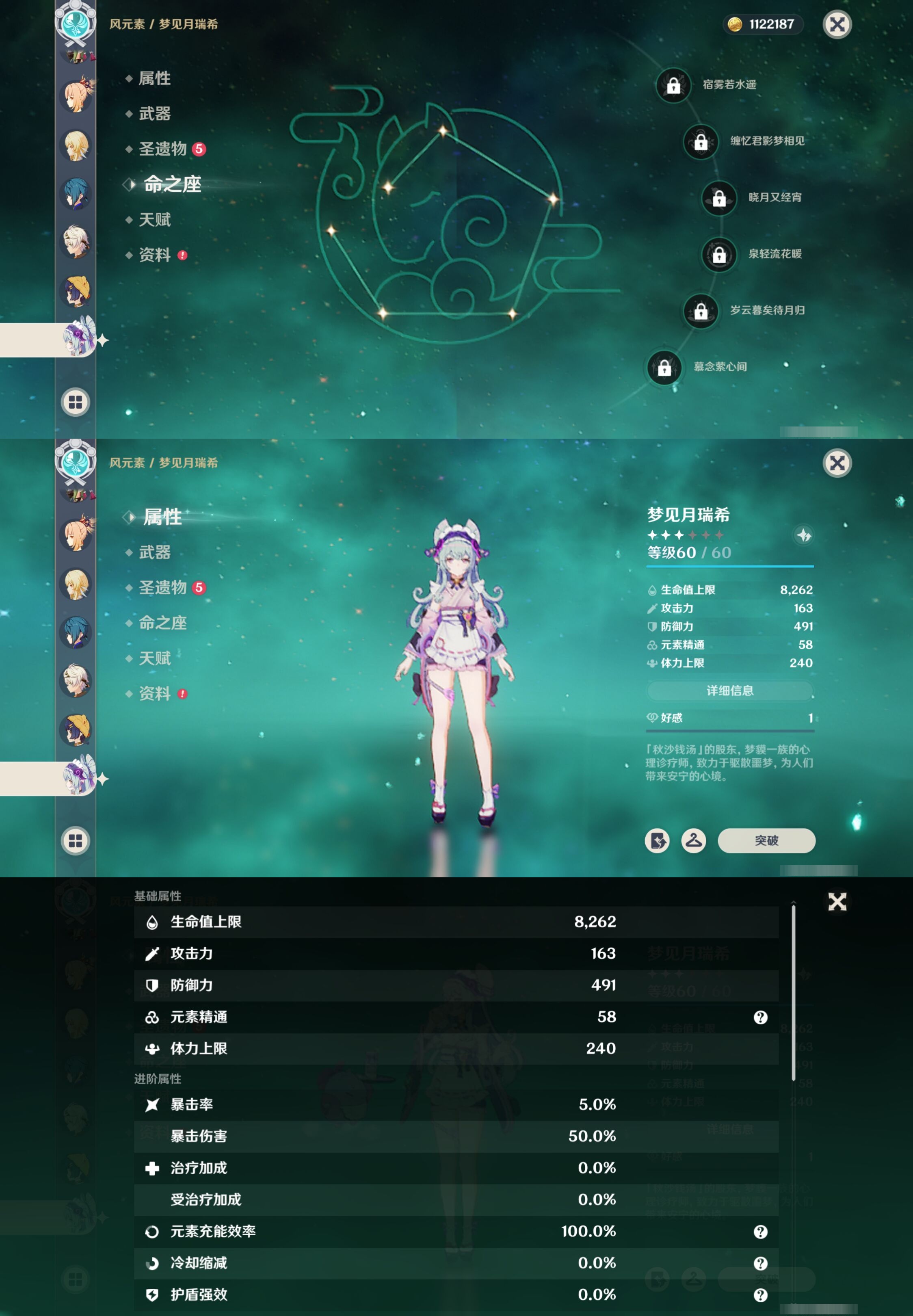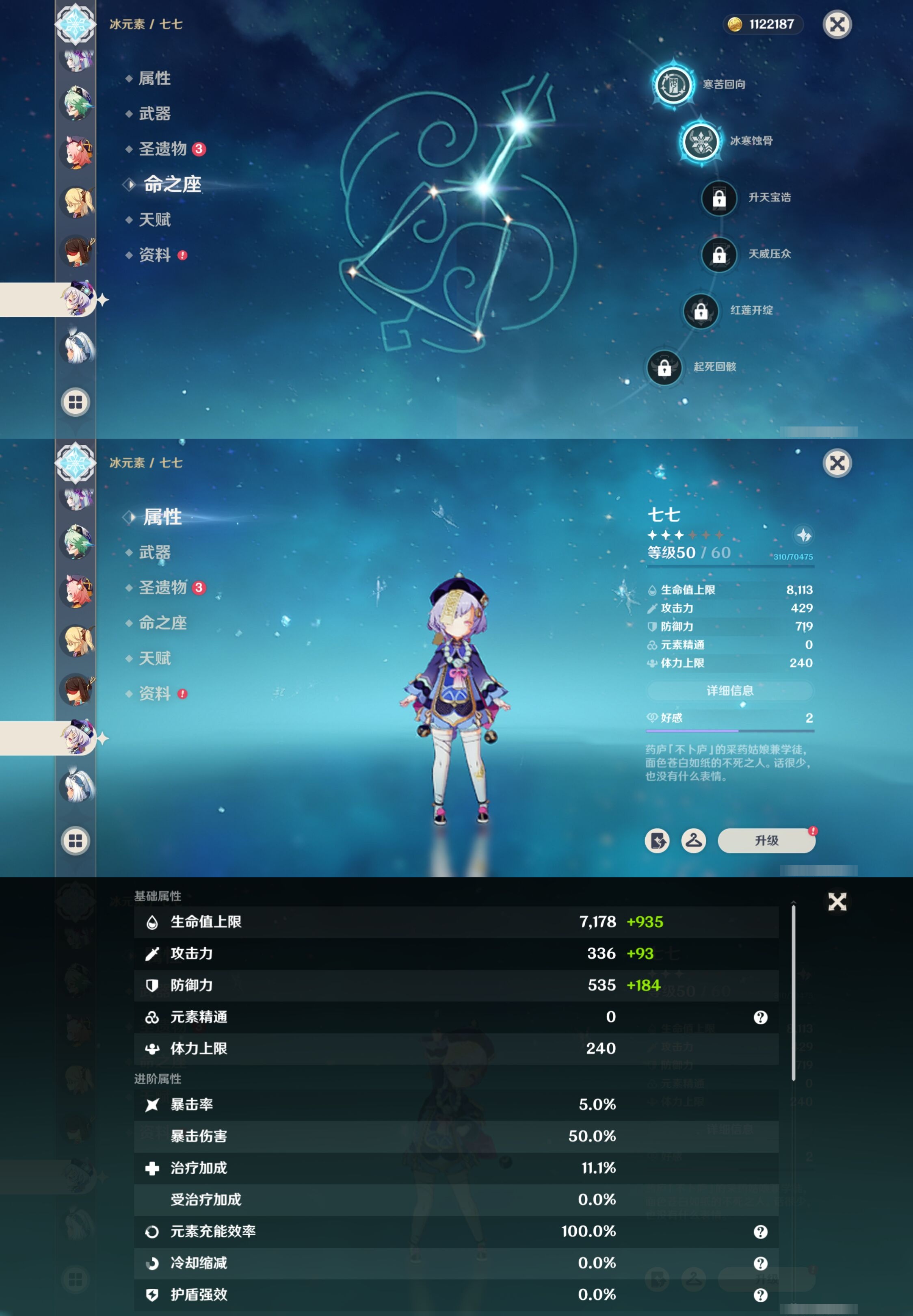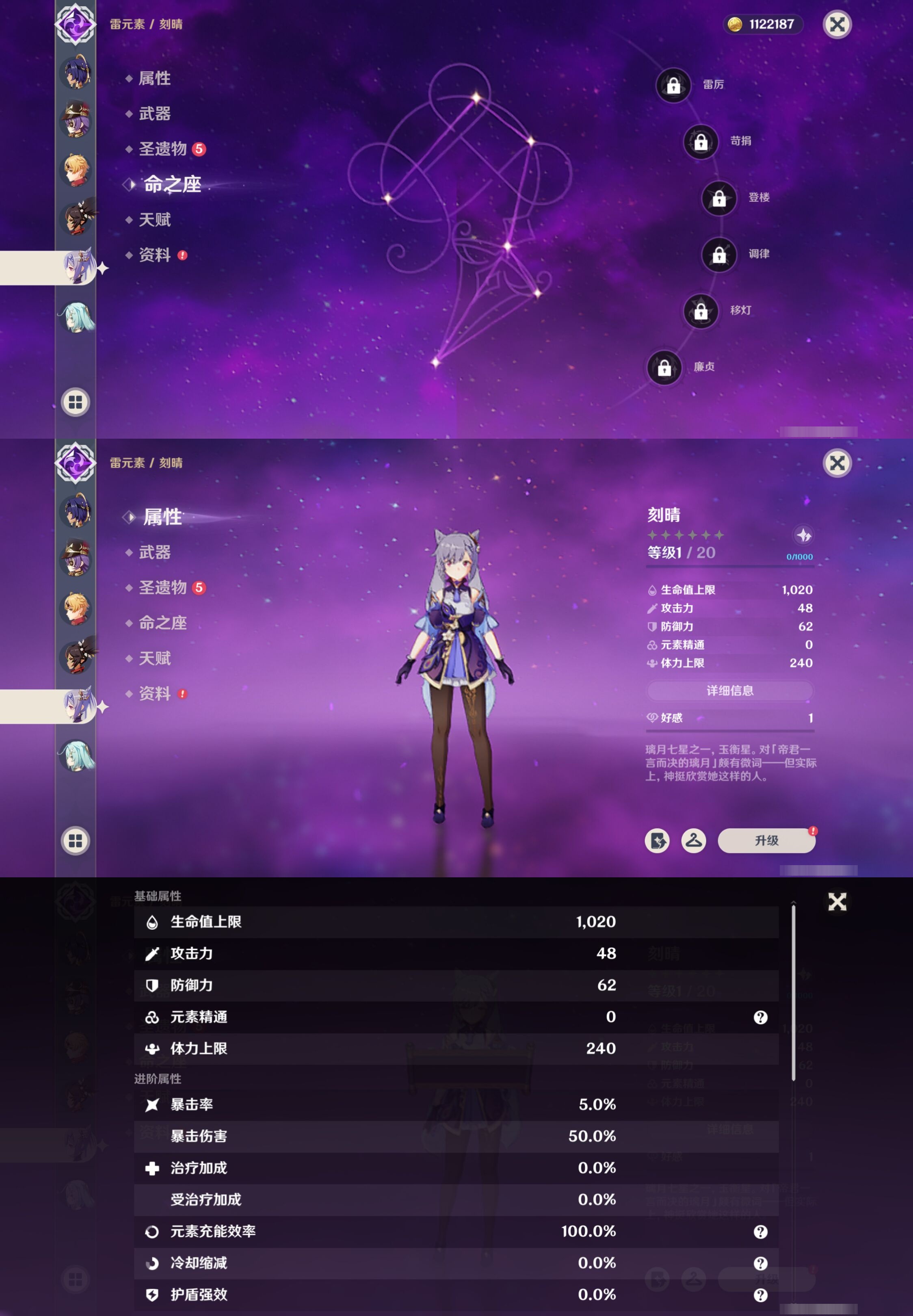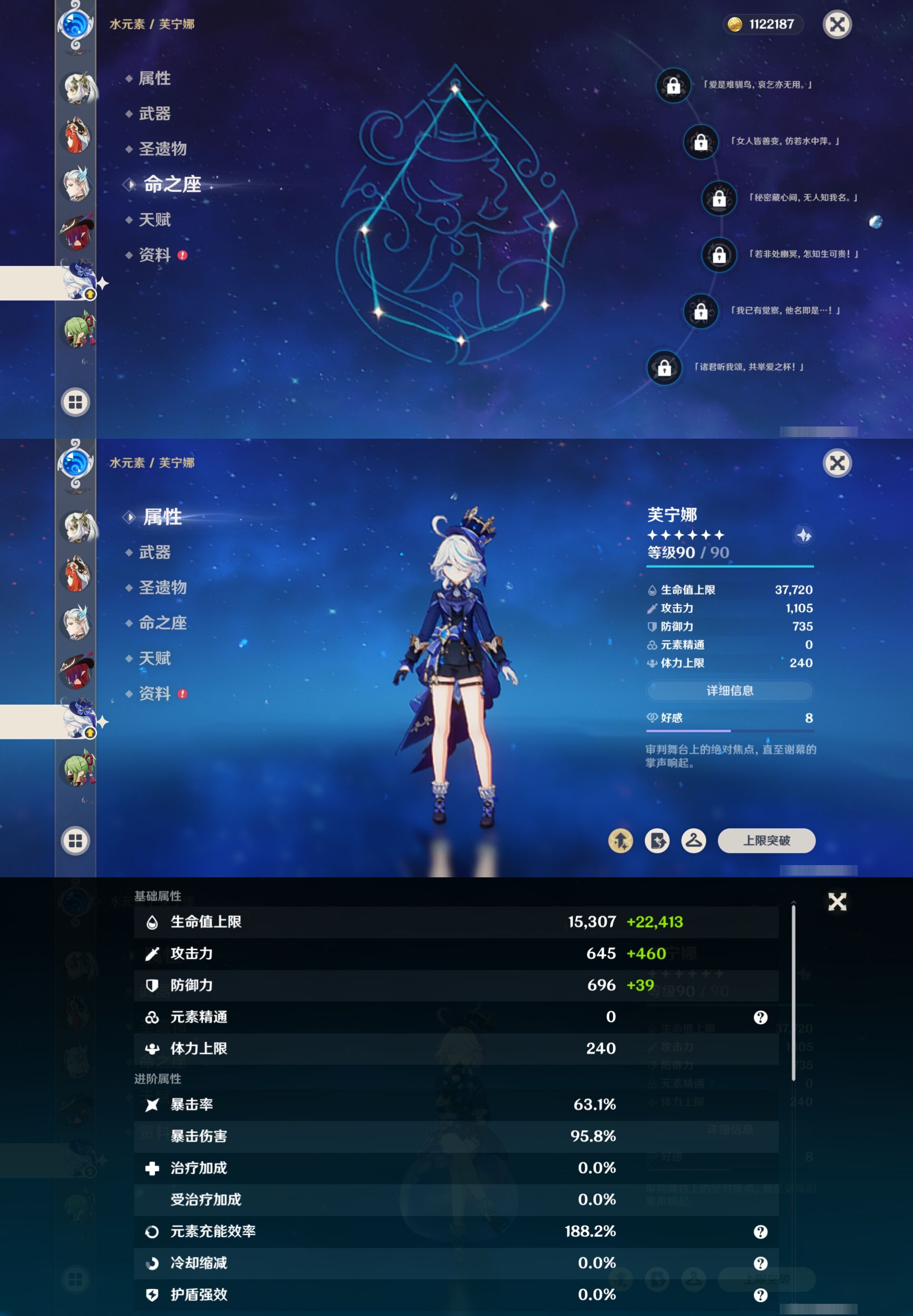 【18个五星角色】,2命七七,1命琴,0命夜兰,0命菲林斯,0命钟离,0命枫原万叶,0命克洛琳德,0命纳西妲,0命妮露,0命那维莱特,0命恰斯卡,0命芙宁娜,0命宵宫,0命梦见月瑞希,0命玛拉妮,0命莫娜,0命提纳里,0命刻晴,